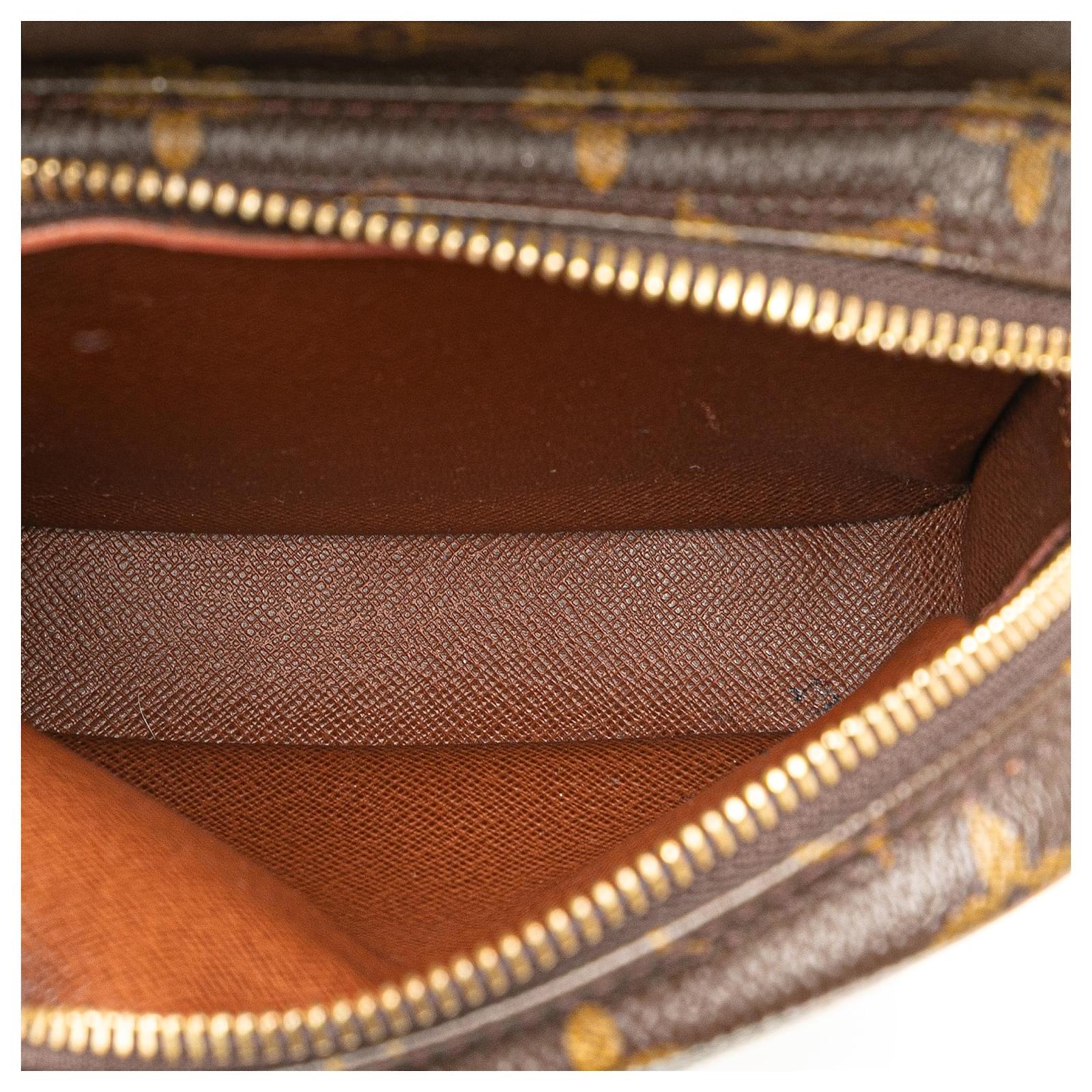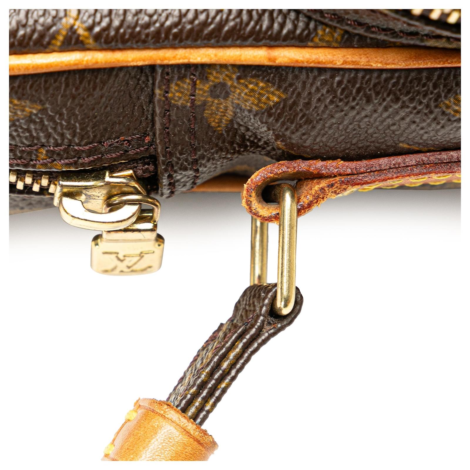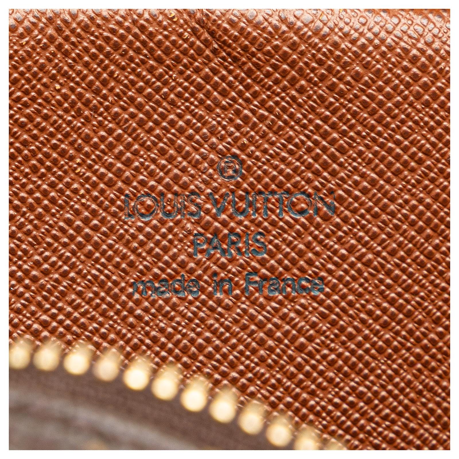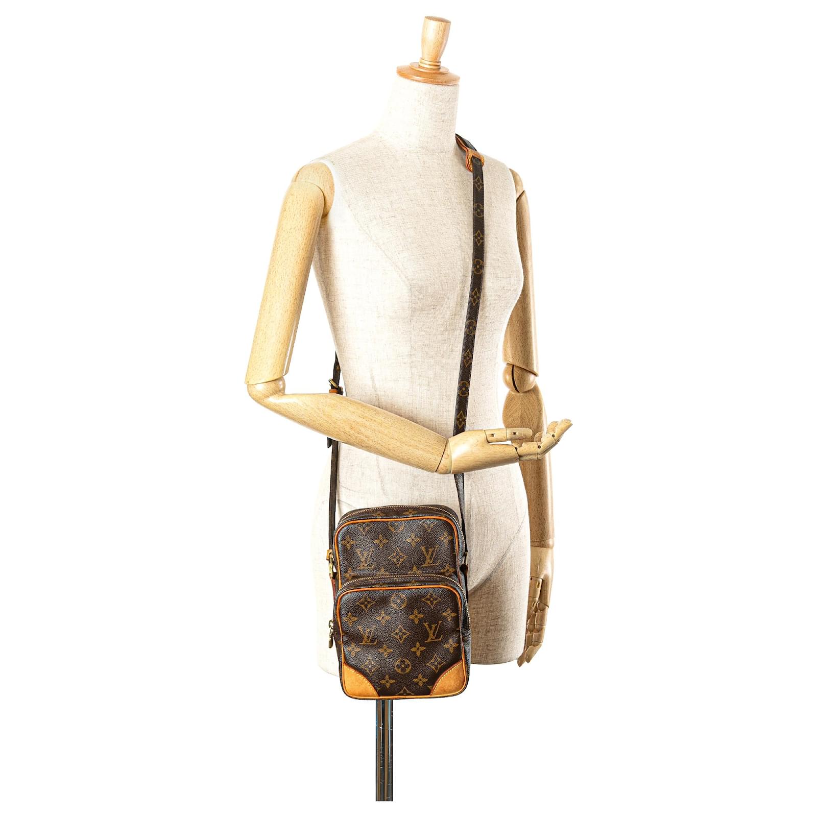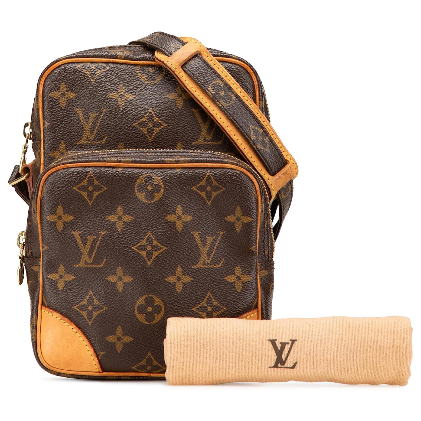 The Amazone features a monogram canvas body with vachetta leather trim, an adjustable shoulder strap, a top zip closure, an exterior front zip pocket, and an interior slip pocket. It carries a B+ condition rating.\r\n\r\nExterior Back stained with Other. Exterior Corners Worn. Exterior Front Discolored, Worn. Exterior Front stained with Water Mark. Exterior Handle Discolored, Worn. Interior Pocket Creased. Interior Pocket stained with Other. Interior Lining Scratched. Interior Lining stained with Other. Practical Attachment Rusty/Tarnished, Scratched. Exterior Side Discolored. Exterior Side stained with Water Mark. Exterior Top Discolored. Exterior Top stained with Water Mark. Zipper Rusty/Tarnished, Scratched. \r\n\r\nDimensions: \r\nLength: 21 cm\r\nWidth: 15 cm\r\nDepth: 5 cm\r\nShoulder Drop: 54\r\n\r\nInclusions: Dust Bag\r\n\r\nColor: Brown\r\n\r\nMaterial: Canvas x Monogram Canvas x Leather x Vachetta leather\r\n\r\nCountry of Origin: France\r\n\r\nSerial: AR0042\r\n\r\nBoutique Reference: PJC301079F956 \r\n