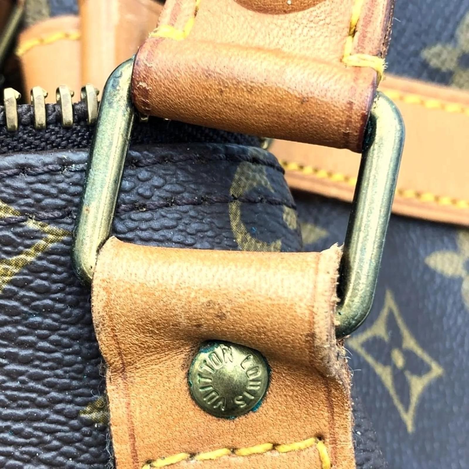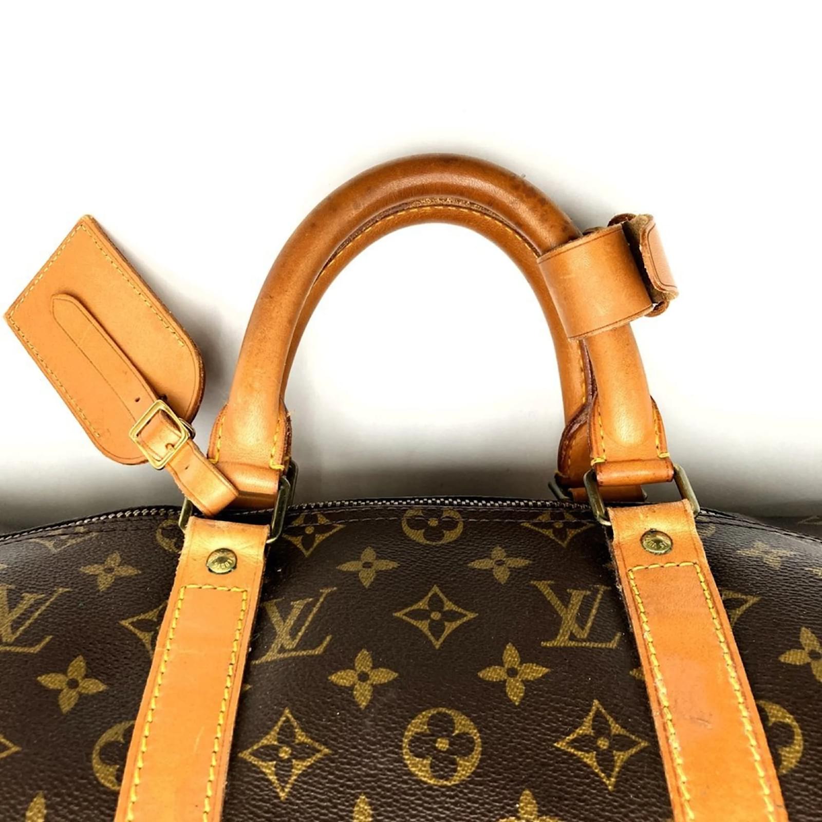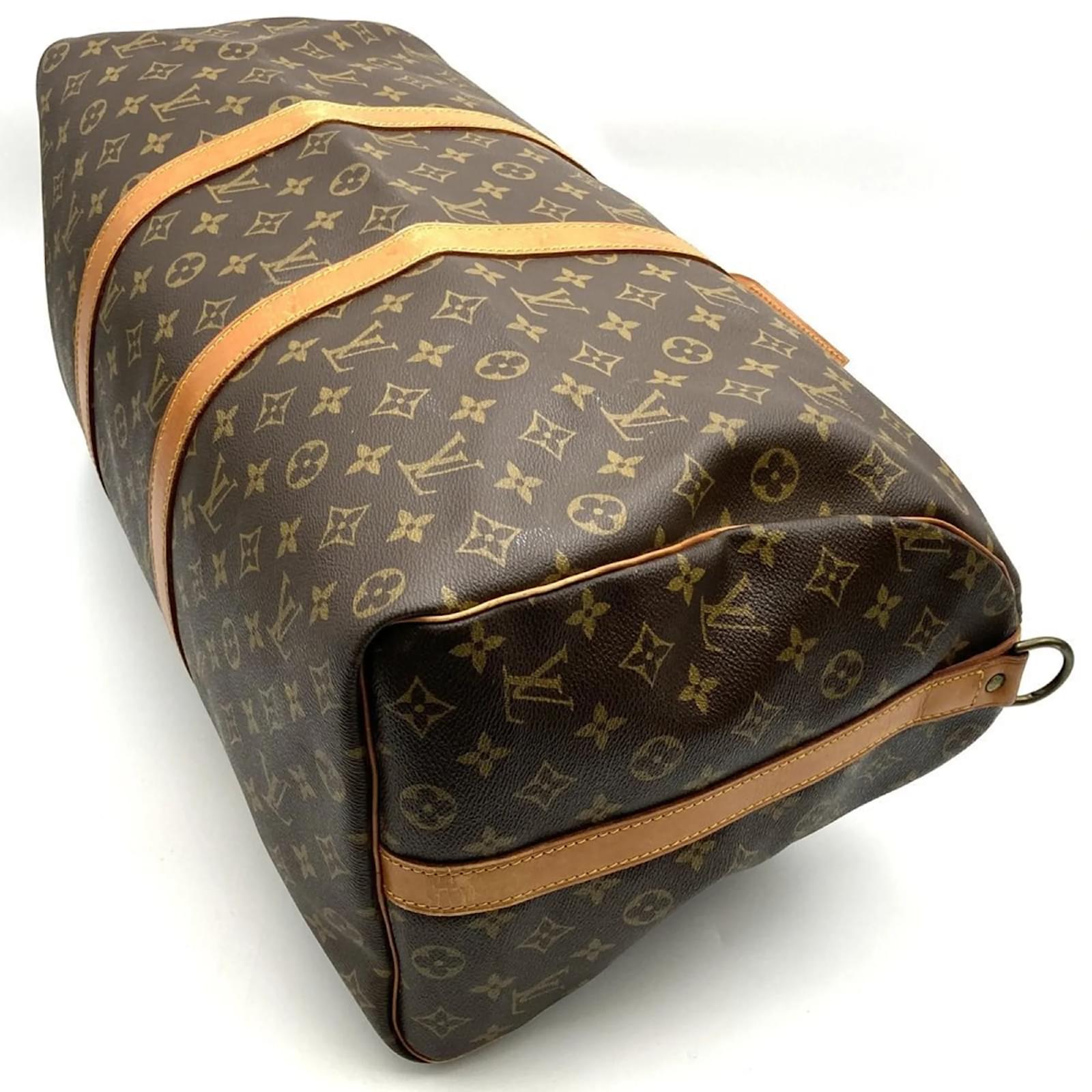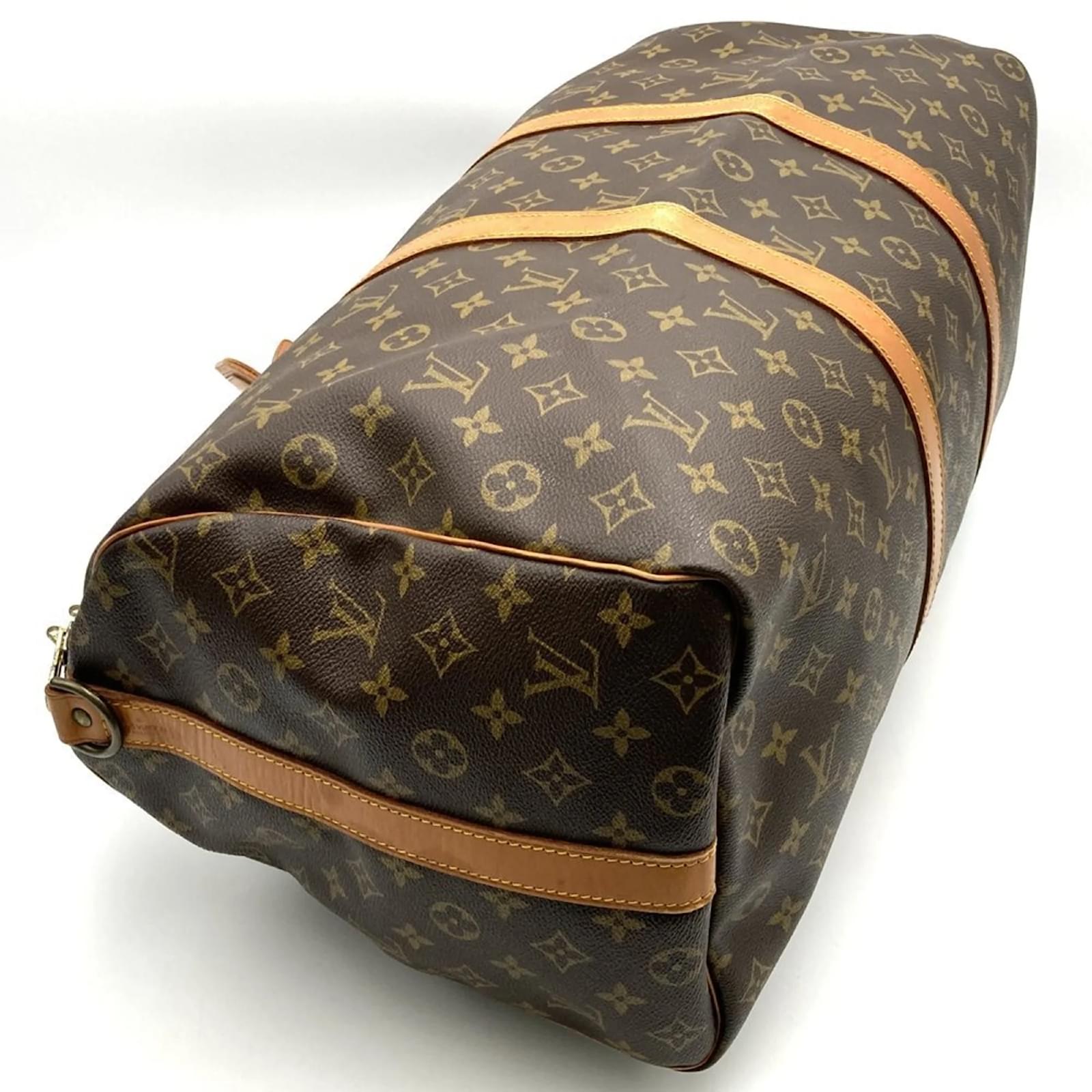 This Louis Vuitton Boston bag, model M41416, features a classic brown monogram canvas design. Measuring 26cm in height, 52cm in width, and 22cm in depth, it offers ample space for your essentials. The bag is categorized as used but remains in good condition, with some visible traces of usage, including slight scratches and dirt. There are minor imperfections such as a slight corner stain, slight rust on the hardware, and slight cracking on the vachetta leather. Potential buyers are encouraged to review the provided images for a detailed view of the bag’s condition and included accessories.