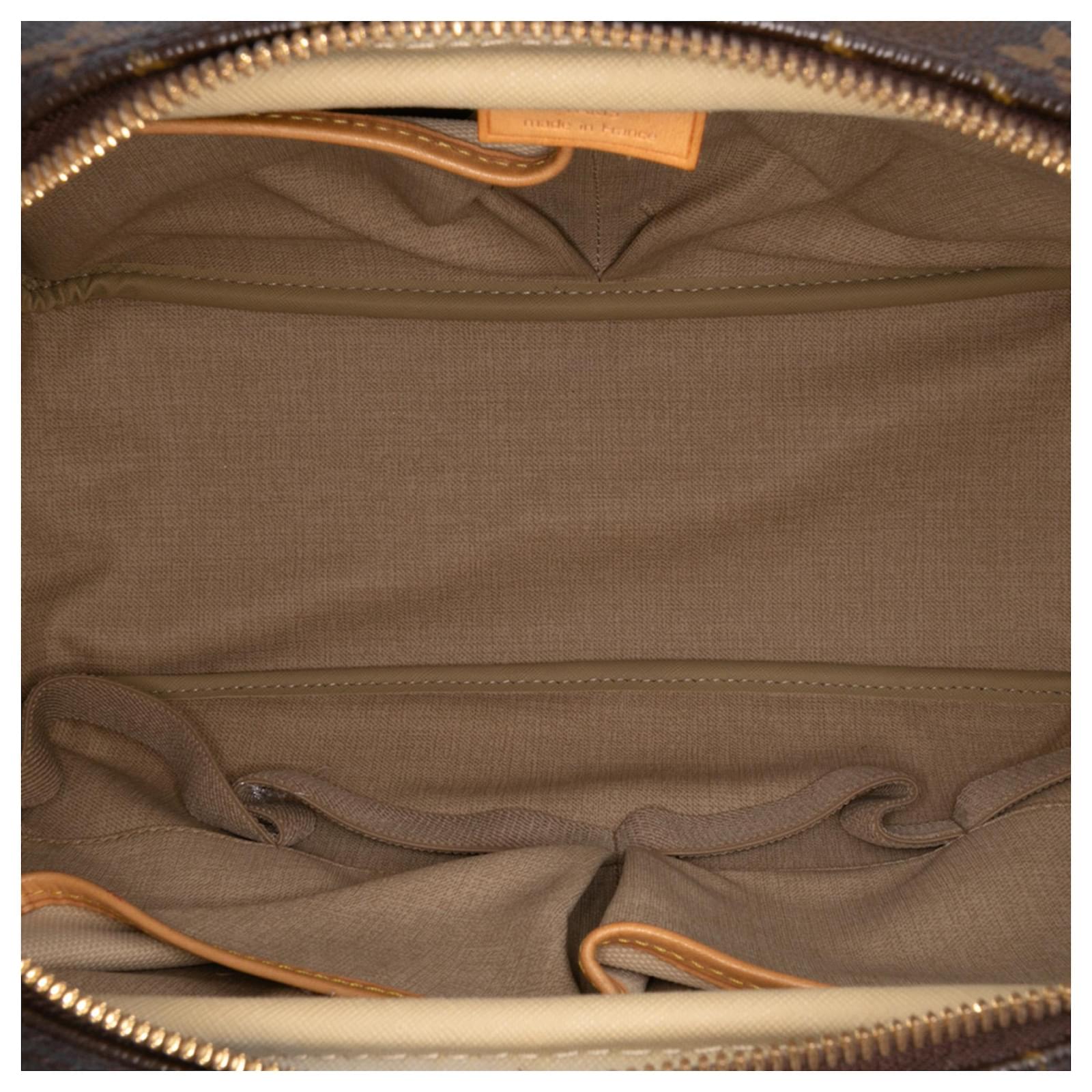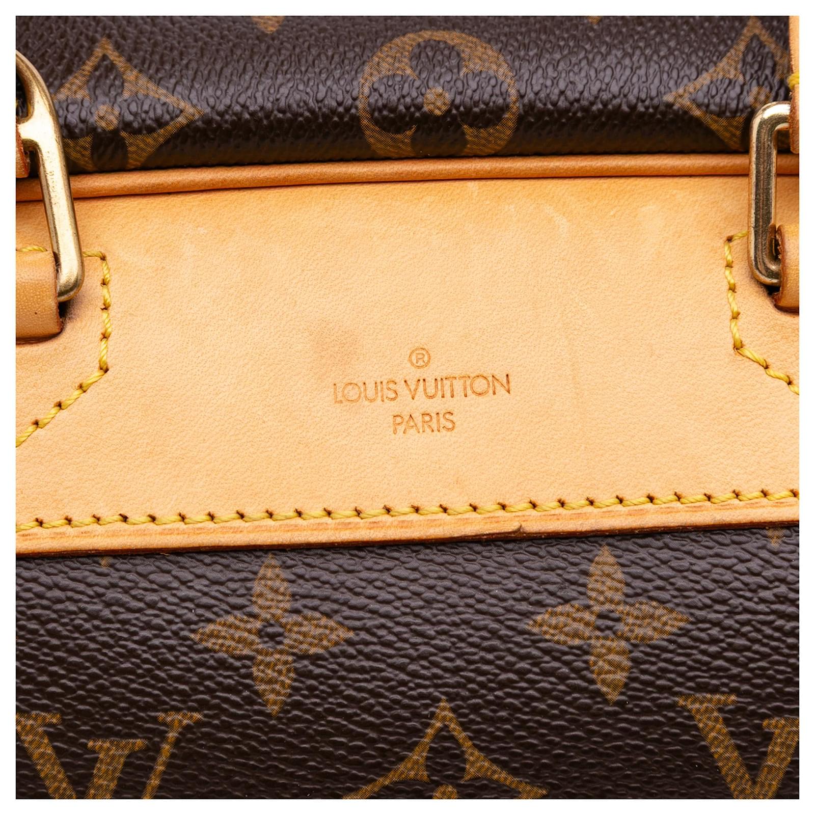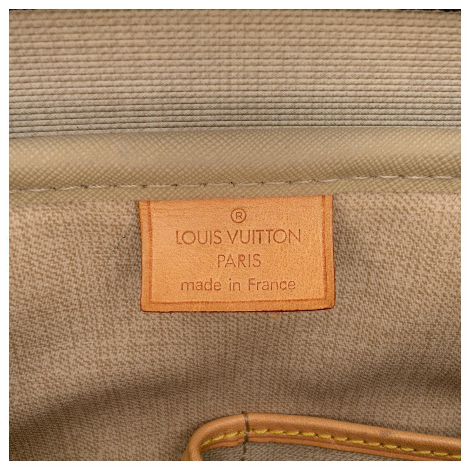 The Deauville features a monogram canvas body with vachetta leather trim, rolled vachetta leather handles, an exterior slip pocket, a top zip closure, and interior open pockets. It carries a B+ condition rating.\r\n\r\nExterior Back Scratched. Lock Rusty/Tarnished, Scratched. Exterior Corners Worn. Exterior Front Scratched, Worn. Exterior Front stained with Other. Exterior Handle Creased, Worn. Interior Lining stained with Other. Practical Attachment Scratched. Exterior Side stained with Other. Item has an odor of Other. Exterior Top Worn. Zipper Scratched. \r\n\r\nDimensions: \r\nLength: 27 cm\r\nWidth: 34 cm\r\nDepth: 13 cm\r\nHand Drop: 13\r\n\r\nInclusions: No longer comes with original accessories.\r\n\r\nColor: Brown\r\n\r\nMaterial: Canvas x Monogram Canvas x Leather x Vachetta leather\r\n\r\nCountry of Origin: France\r\n\r\nSerial: MB0056\r\n\r\nBoutique Reference: PJC320348F956 \r\n