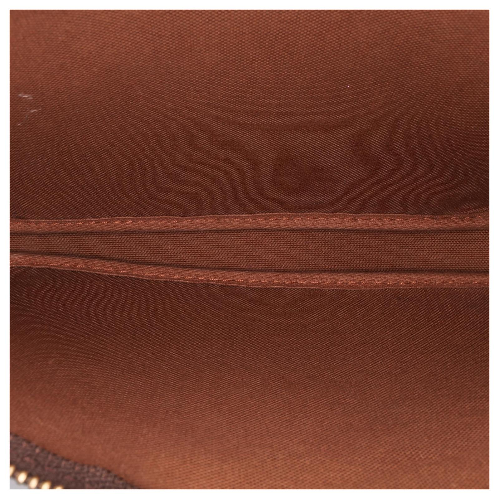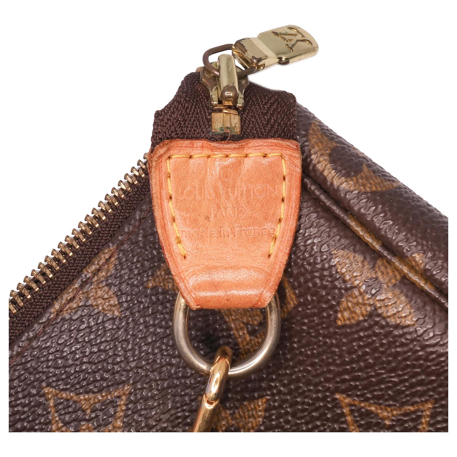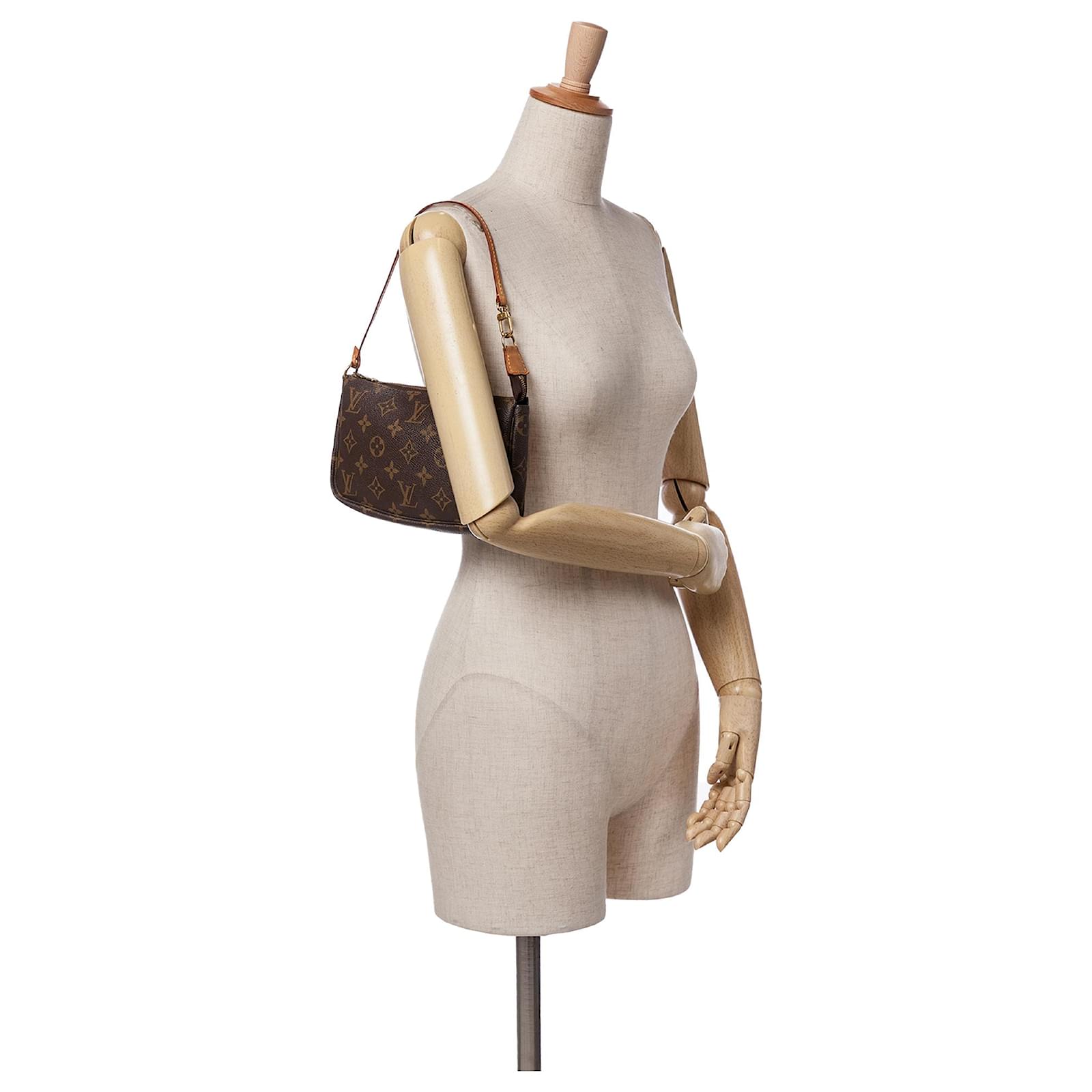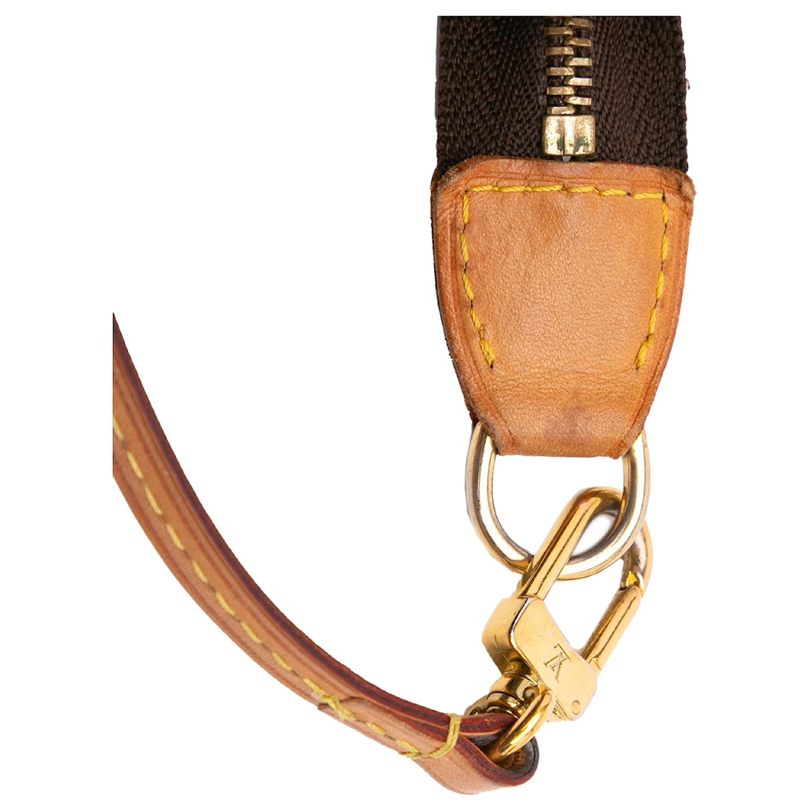 The Pochette Accessoires features a monogram canvas body, a flat vachetta leather handle, and a top zip closure. It carries a B+ condition rating.\r\n\r\nExterior Bottom Out Of Shape. Exterior Corners Worn. Exterior Handle Discolored, Worn. Practical Attachment Scratched. Zipper Scratched. \r\n\r\nDimensions: \r\nLength: 13 cm\r\nWidth: 20 cm\r\nDepth: 4 cm\r\nDrop: 18\r\n\r\nInclusions: No longer comes with original accessories.\r\n\r\nColor: Brown\r\n\r\nMaterial: Canvas x Monogram Canvas\r\n\r\nCountry of Origin: France\r\n\r\nSerial: VI0052\r\n\r\nBoutique Reference: PJC306509F956 \r\n