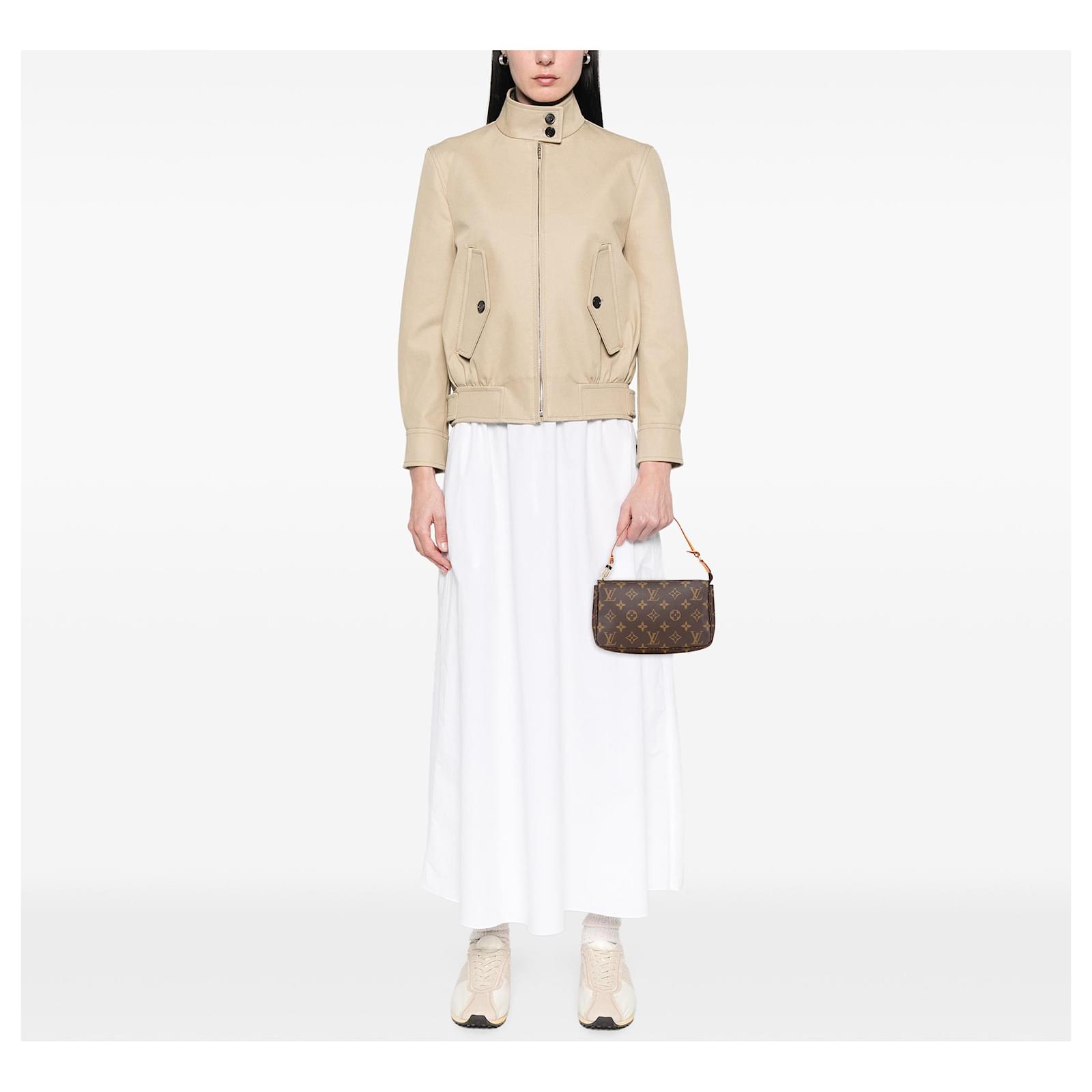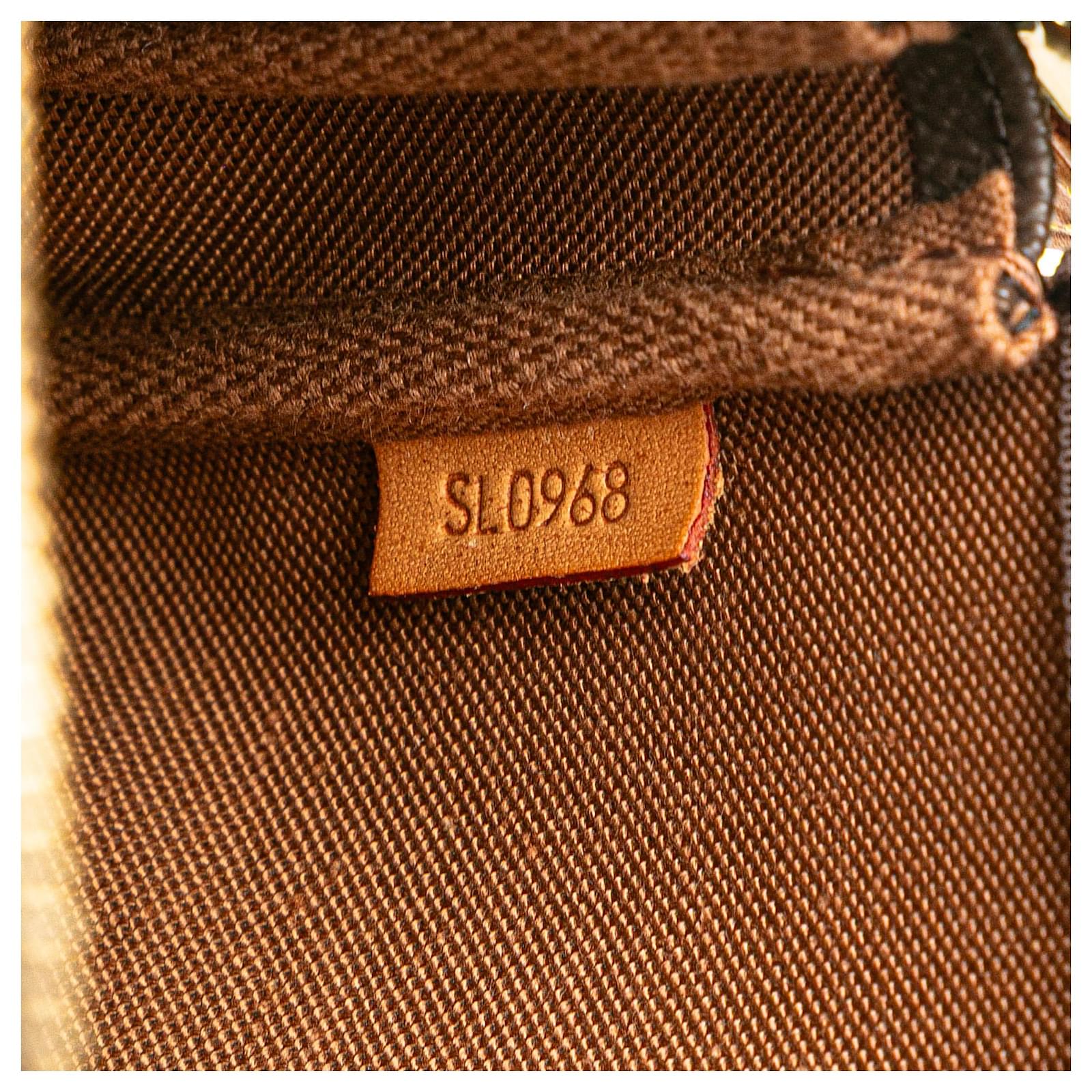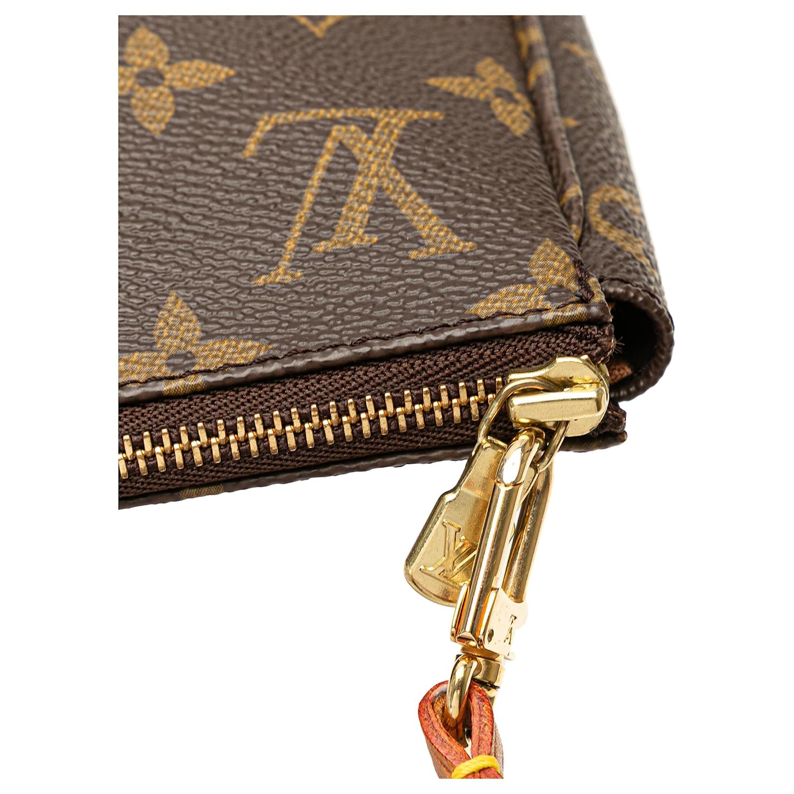 The Pochette Accessoires features a monogram canvas body, a flat vachetta leather strap, and a top zip closure. It carries an AB condition rating.\r\n\r\nExterior Handle Discolored, Worn. Exterior Handle stained with Water Mark. Exterior Top Discolored, Worn. Zipper Rusty/Tarnished, Scratched. \r\n\r\nDimensions: \r\nLength: 13 cm\r\nWidth: 21 cm\r\nDepth: 4 cm\r\nShoulder Drop: 15\r\n\r\nInclusions: No longer comes with original accessories.\r\n\r\nColor: Brown\r\n\r\nMaterial: Canvas x Monogram CanvasLeather x Vachetta leatherLeather x Vachetta leather\r\n\r\nCountry of Origin: France\r\n\r\nSerial: SL0968\r\n\r\nBoutique Reference: PJC323097F956 \r\n