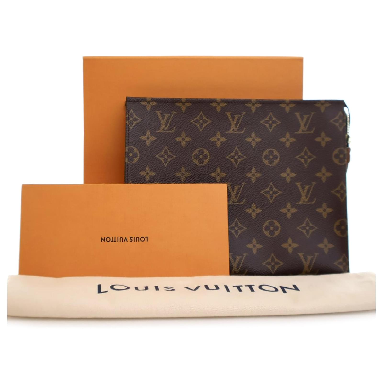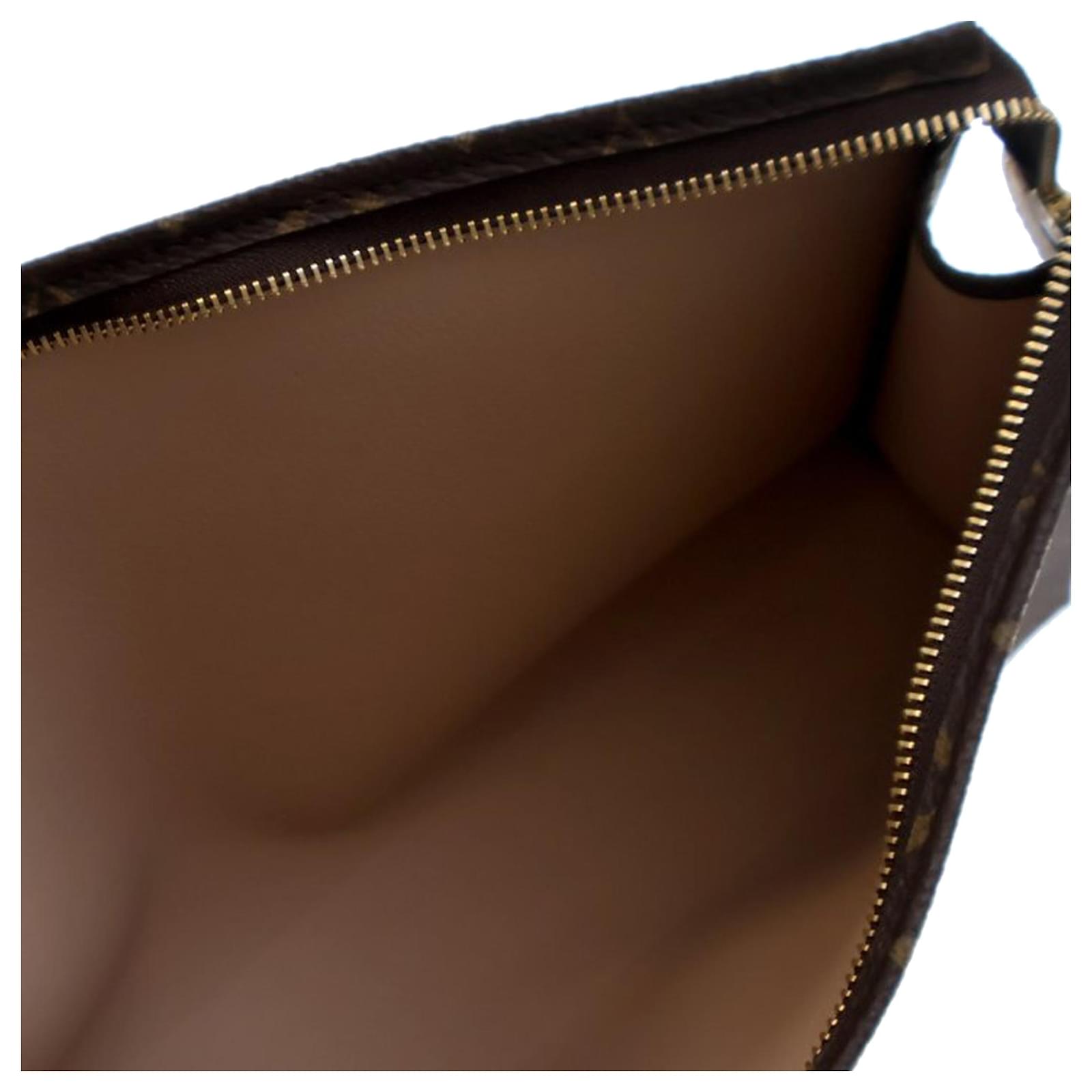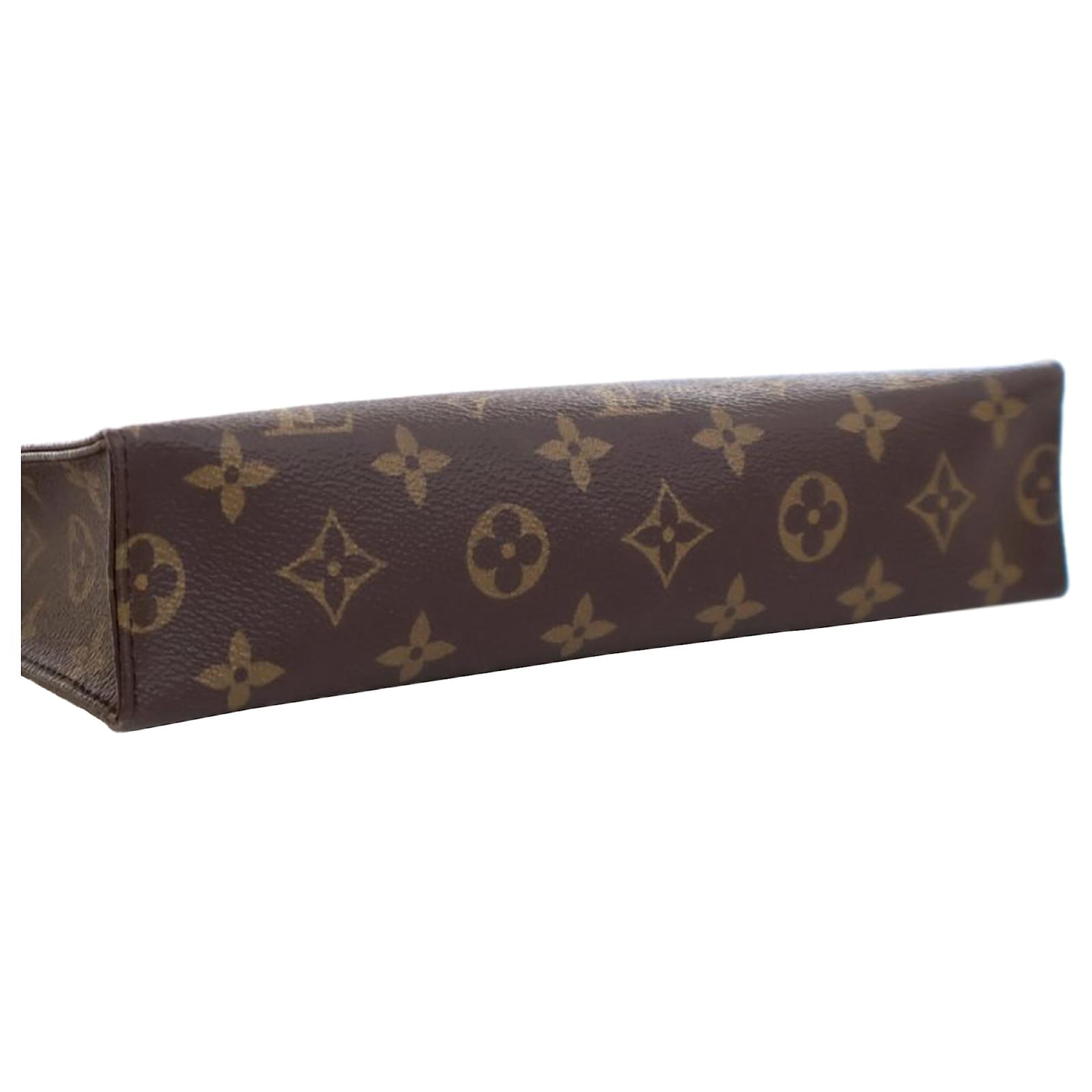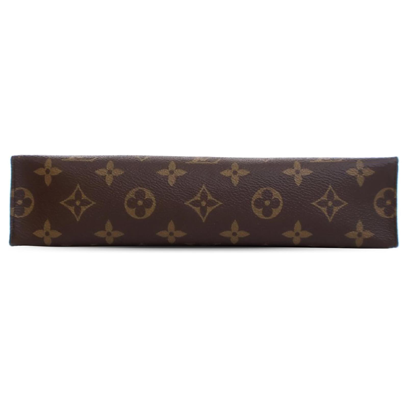 The Toiletry Pouch 26 features a monogram canvas body, and a top zip closure. It carries an AB condition rating.\r\n\r\nExterior Bottom stained with Other. Exterior Corners Worn. Exterior Front stained with Other. Item has an odor of Other. \r\n\r\nDimensions: \r\nLength: 20 cm\r\nWidth: 25 cm\r\nDepth: 4 cm\r\n\r\nInclusions: Dust Bag, Box\r\n\r\nColor: Brown\r\n\r\nMaterial: Canvas x Monogram Canvas\r\n\r\nCountry of Origin: France\r\n\r\nBoutique Reference: PJC325185F956 \r\n