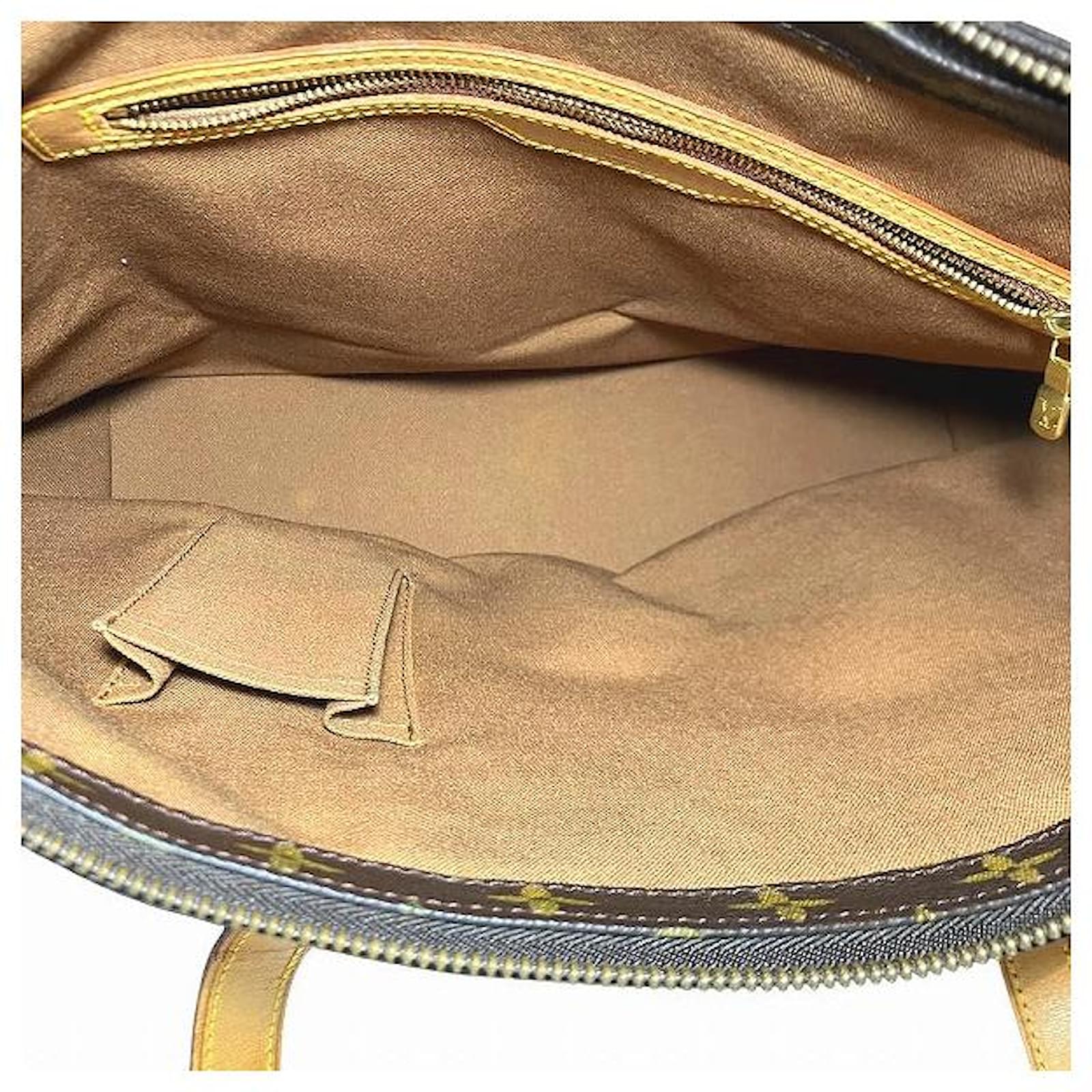 – General information -\nBrand : Louis VuittonItem name : Louis Vuitton Cabas Mezzo Monogram Tote BagModel number : M51151 – Design -Type : Tote BagMaterial : CanvasColor : BrownGender : Female- Size -Size : Length : 38Depth : 32Height : 14Handle Drop : 25Item Material : Monogram CanvasItem Series : MonogramItem Color : BrownClosure Type : OpenInterior : Main compartment x 1, Inner zip pocket x 1, Inner slip pocket x 1- Inventory -Serial Number : SKU : 120210013446000A0025848952- Included Items -Accessories : null*Before purchasing, please refer to the images of the accessories included with the item.- Condition -Condition : Good ConditionRank : Used A Used condition with obviously scratches and stains.Condition Notice : Before purchasing, please refer to the images for the exact condition of the item. Measurments: width: 140 mm length: 380 mm height: 320 mm handle drop: 250 mm \n Product Id: 525973 \n