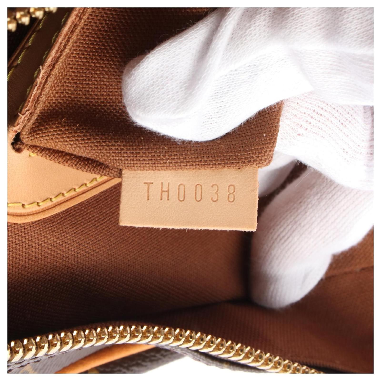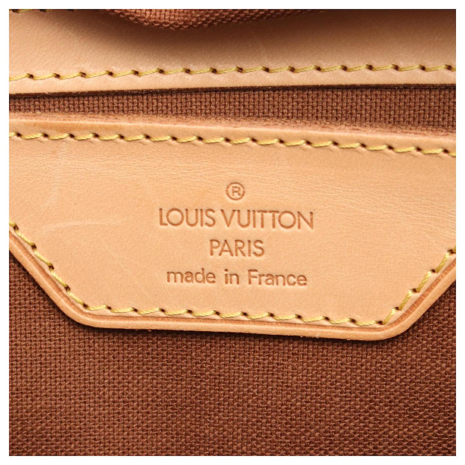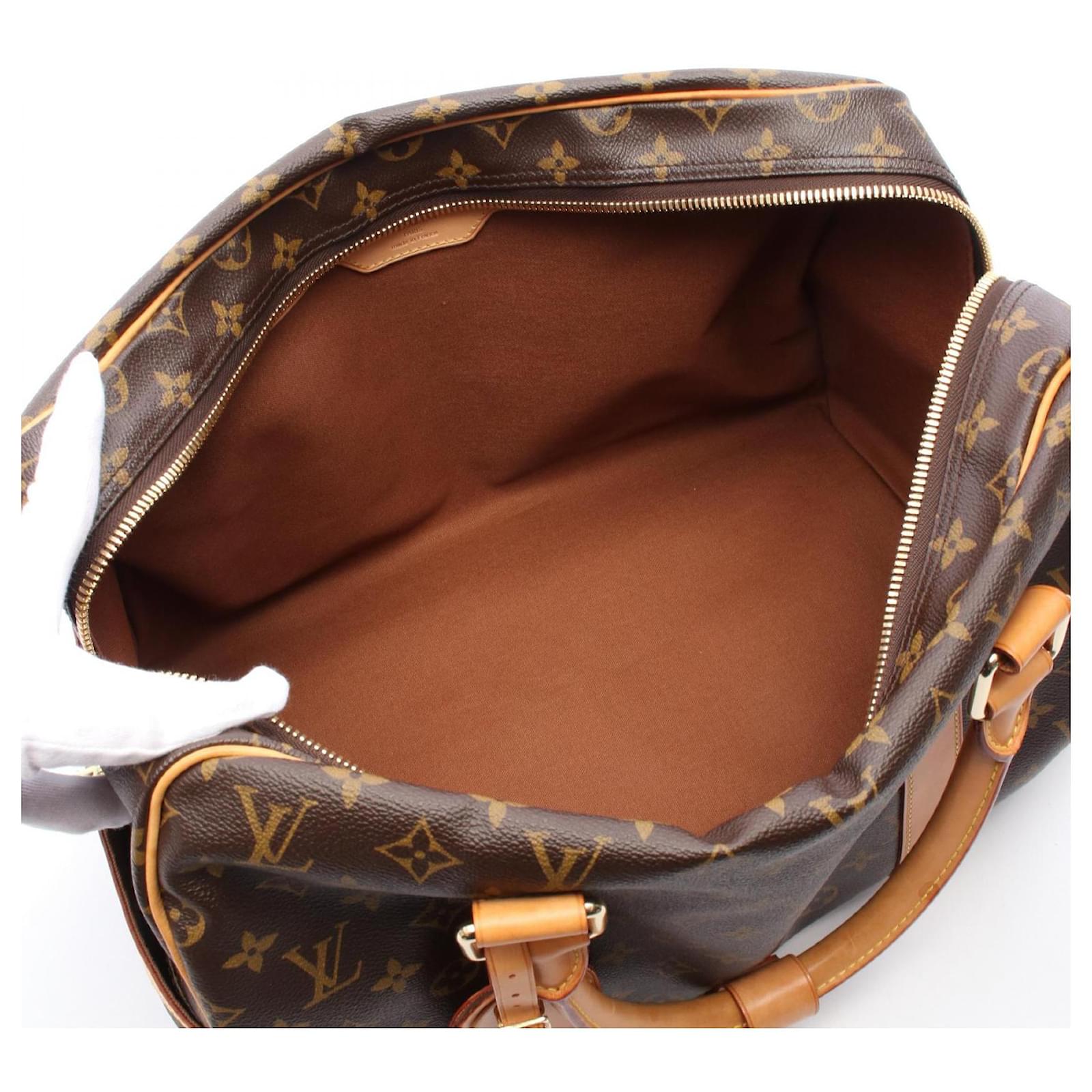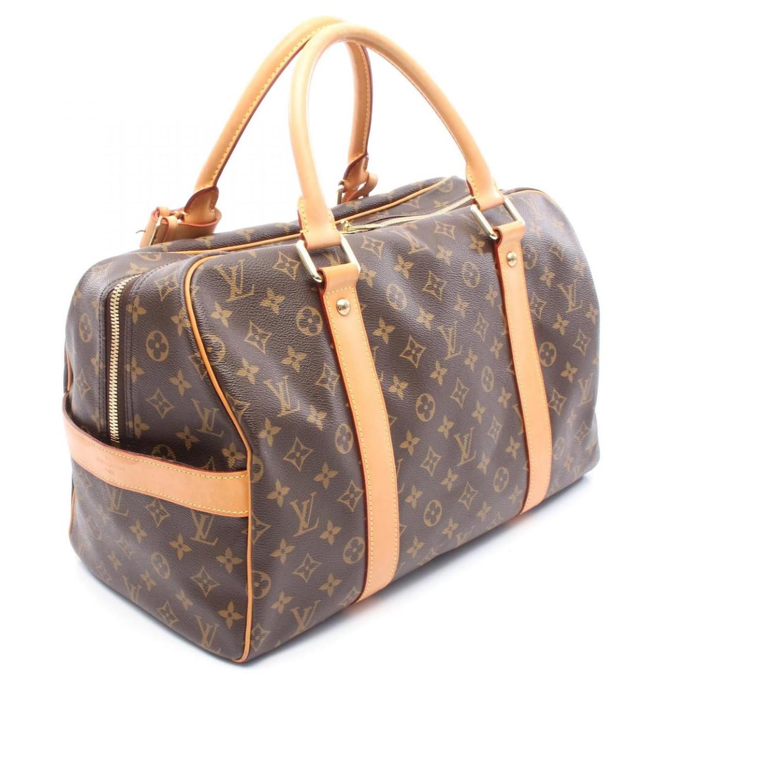– General information -\nBrand : Louis VuittonItem name : Louis Vuitton Carryall Monogram Boston BagModel number : M40074 – Design -Type : Travel BagMaterial : CanvasColor : BrownGender : Male- Size -Size : Length : 40Depth : 22Height : 26Handle Drop : 45Item Material : PVC coated canvas, leatherItem Series : MonogramItem Color : BrownClosure Type : ZipperInterior : Main compartment x 1- Inventory -Serial Number : TH0038SKU : 120210045645000A0025755019- Included Items -Accessories : Name Tag*Before purchasing, please refer to the images of the accessories included with the item.- Condition -Condition : Very Good ConditionRank : Used A Used condition with some scratches and stains.Condition Notice : Before purchasing, please refer to the images for the exact condition of the item. Measurments: width: 220 mm length: 400 mm height: 260 mm handle drop: 450 mm \n Product Id: 502079 \n