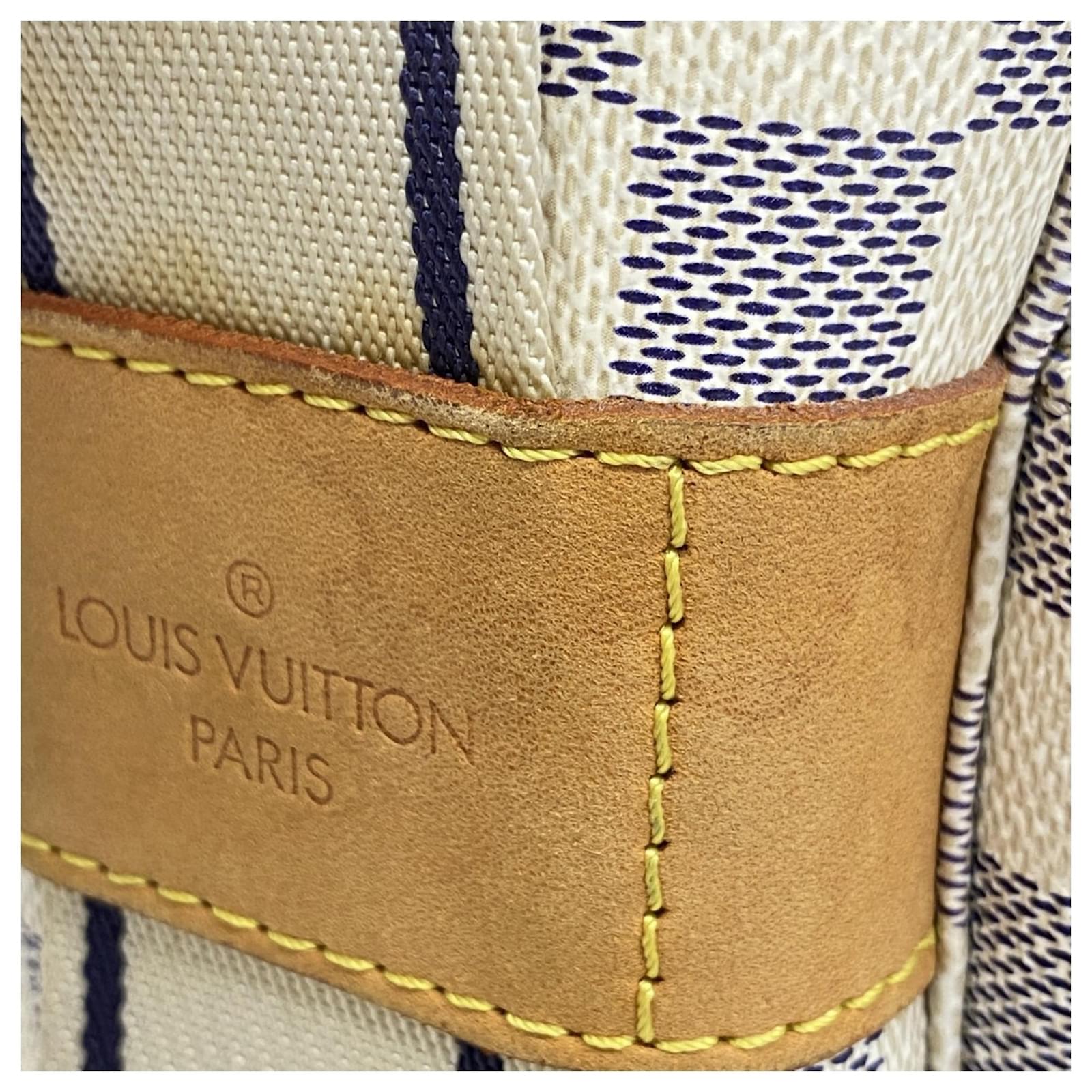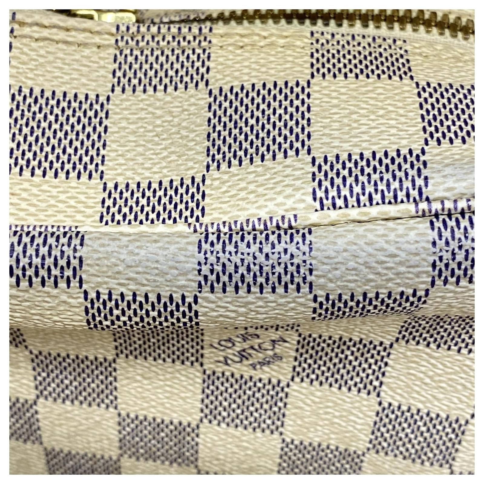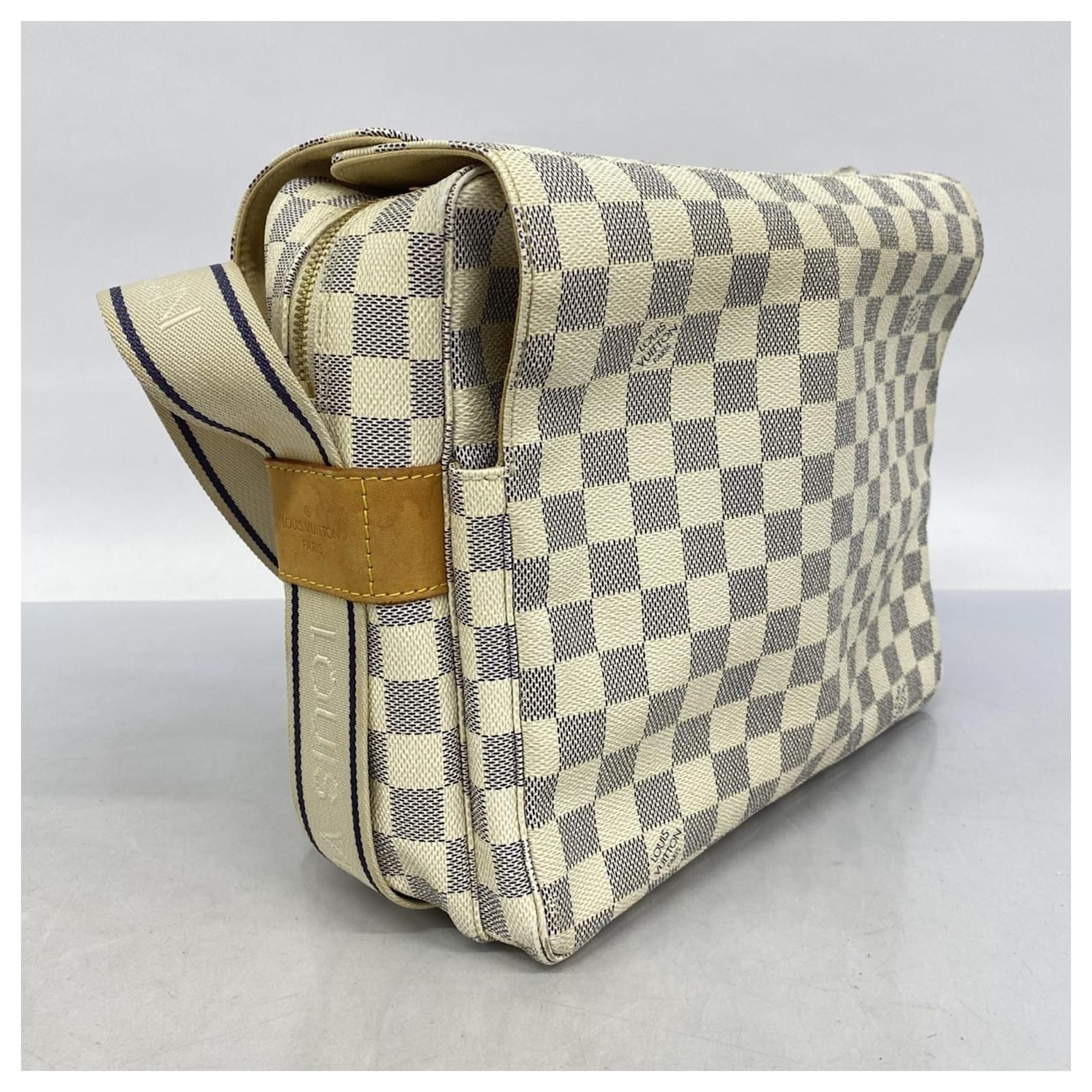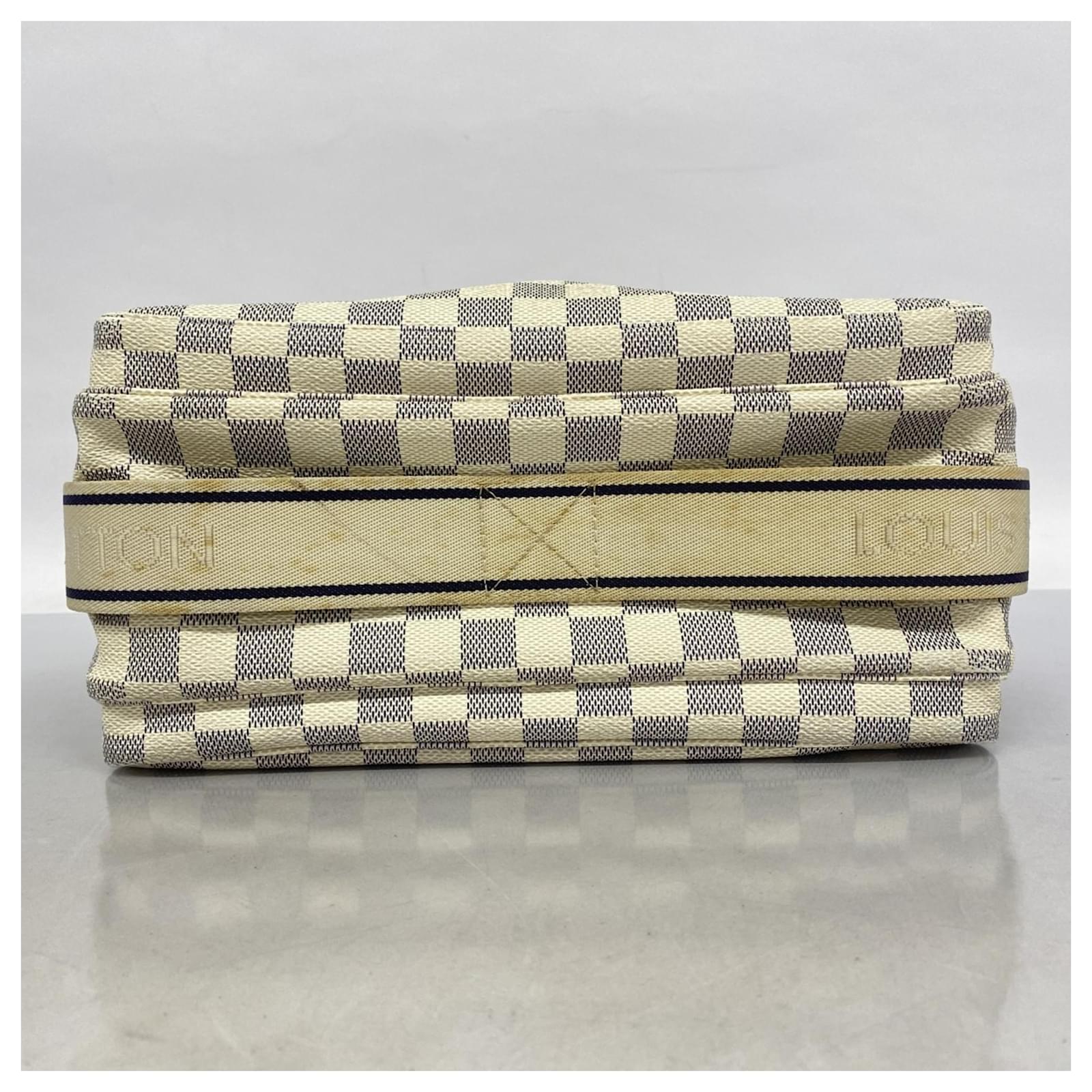 This Louis Vuitton shoulder bag features the Damier Azur pattern in a classic white color, designed for men. The model number is N51189. It is categorized as used but remains in good condition, showing slight traces of use, including minor scratches and dirt. The seller ranks it as Rank AB, indicating it has visible signs of wear but is generally well-maintained. Potential buyers are encouraged to review the provided images for a detailed view of the bag’s condition and any included accessories.