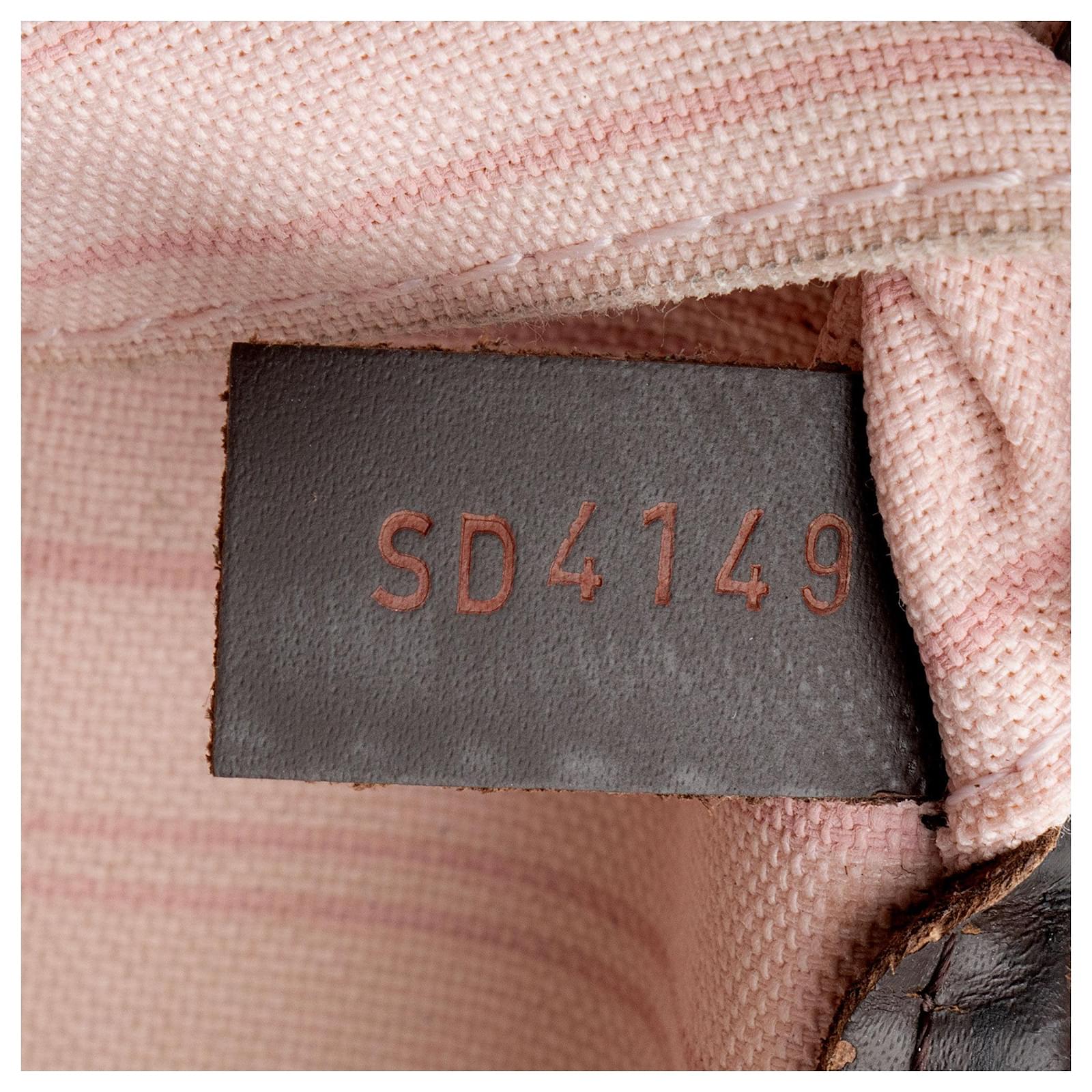 Fresh and artistic, Louis Vuitton remains one of the world’s most coveted symbols of status and sophistication. The Damier pattern was designed in 1888 and the Monogram, in 1896. Over a hundred years later, these remain two of the most recognizable prints in the world. Nicolas Ghesquière, previously of Balenciaga, is the artistic director of women’s collections (2013). Virgil Abloh was the artistic director of the men’s line starting in March 2018 until his untimely passing in 2021.Condition Notes: Visible scuffs to exterior bottom corners. Creasing and light scuffs throughout exterior leather trim and handles. Wear throughout handle casing. Light scuffs and wear throughout exterior coated canvas. Surface scratches to hardware. Marks and light darkening throughout interior. Heavy ink marks to interior. Missing pochette.Width (at base): 12.75\”Height: 11.5\”Depth: 6.75\”Handle Drop: 8\”Circa: 2019Type of Material: Coated Canvas, LeatherColor: BrownLining: Pink Striped Textile CanvasPockets: One InteriorHardware: Gold ToneClosure: Snap HookOrigin: U.S.A. Measurments: width: 323 mm height: 292 mm handle drop: 203.2 mm \n Product Id: 510783 \n