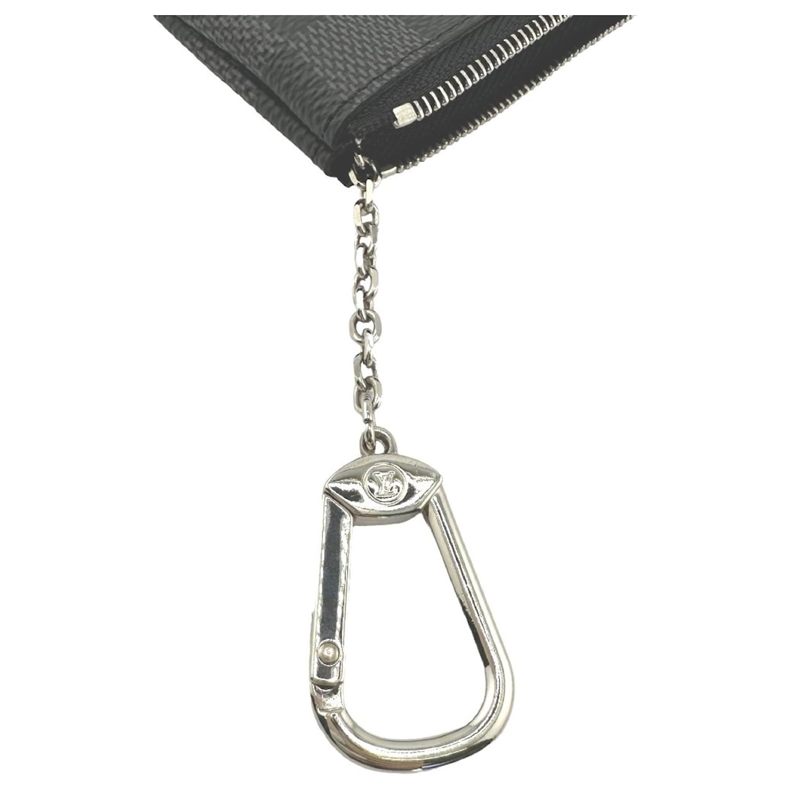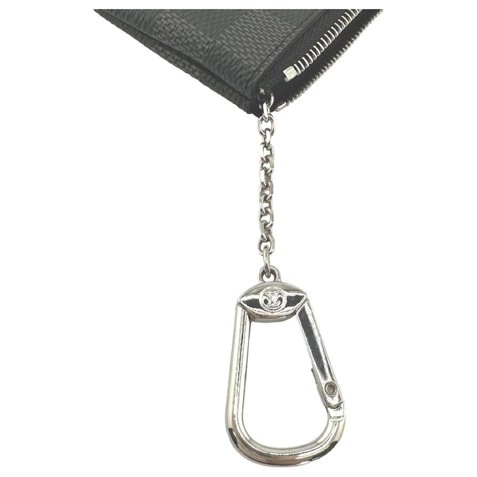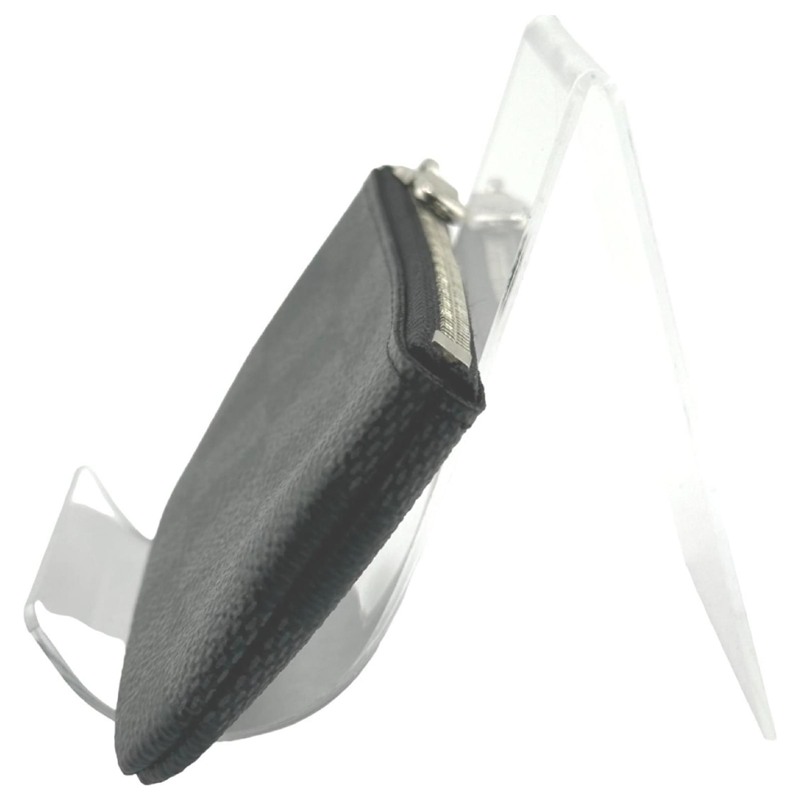 This Louis Vuitton coin purse, part of the Damier Graphite line, features a sleek gray design crafted from Damier Graphite canvas. It measures 6.5cm in height, 12cm in width, and 1cm in depth, making it a compact accessory for everyday use. The purse is secured with a zipper closure, ensuring that your coins and small items are kept safe. \n\nThe item is in opened but never used condition, classified as Rank N, and is accompanied by its original box and dust bag. It is important to review the provided images for a clear understanding of the item’s condition and included accessories. Made in France, this coin purse exemplifies the quality and craftsmanship associated with the Louis Vuitton brand.