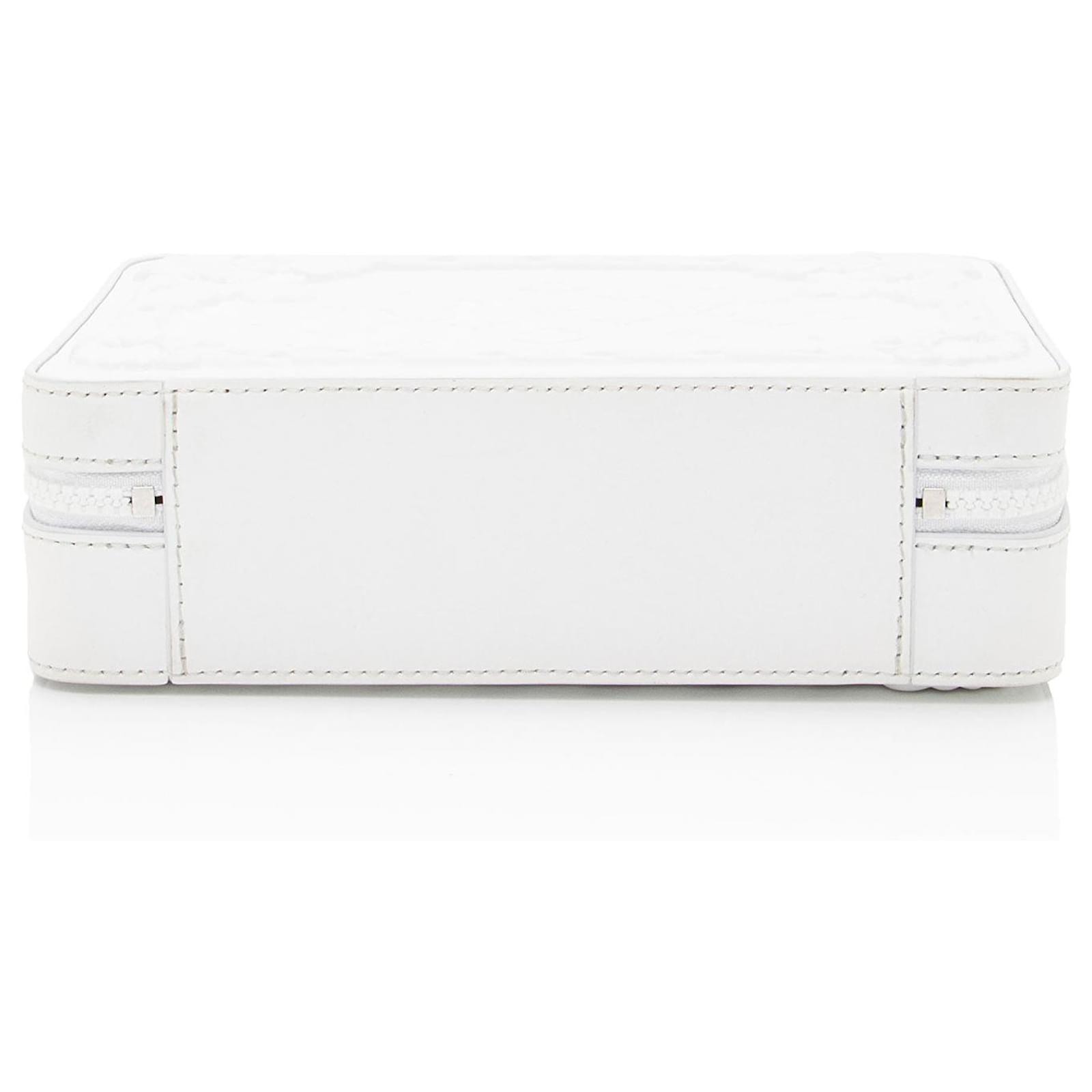 Fresh and artistic, Louis Vuitton remains one of the world’s most coveted symbols of status and sophistication. The Damier pattern was designed in 1888 and the Monogram, in 1896. Over a hundred years later, these remain two of the most recognizable prints in the world. Nicolas Ghesquière, previously of Balenciaga, is the artistic director of women’s collections (2013). Virgil Abloh was the artistic director of the men’s line starting in March 2018 until his untimely passing in 2021.Condition Notes: Minor marks throughout exterior and shoulder strap. Light marks and darkening throughout exterior casing. Light marks throughout interior.Width (at base): 8.25\”Height: 6\”Depth: 2.5\”Handle Drop: 1.25\”Shoulder Strap Drop: 22\”, AdjustableType of Material: Embossed CalfskinColor: WhiteLining: White Fine TextilePockets: One InteriorHardware: WhiteClosure: Double ZipOrigin: ItalyIncludes: Detachable Shoulder Strap, Dust Bag Measurments: width: 209 mm height: 152 mm strap length: 558.8 mm handle drop: 31.75 mm \n Product Id: 510988 \n