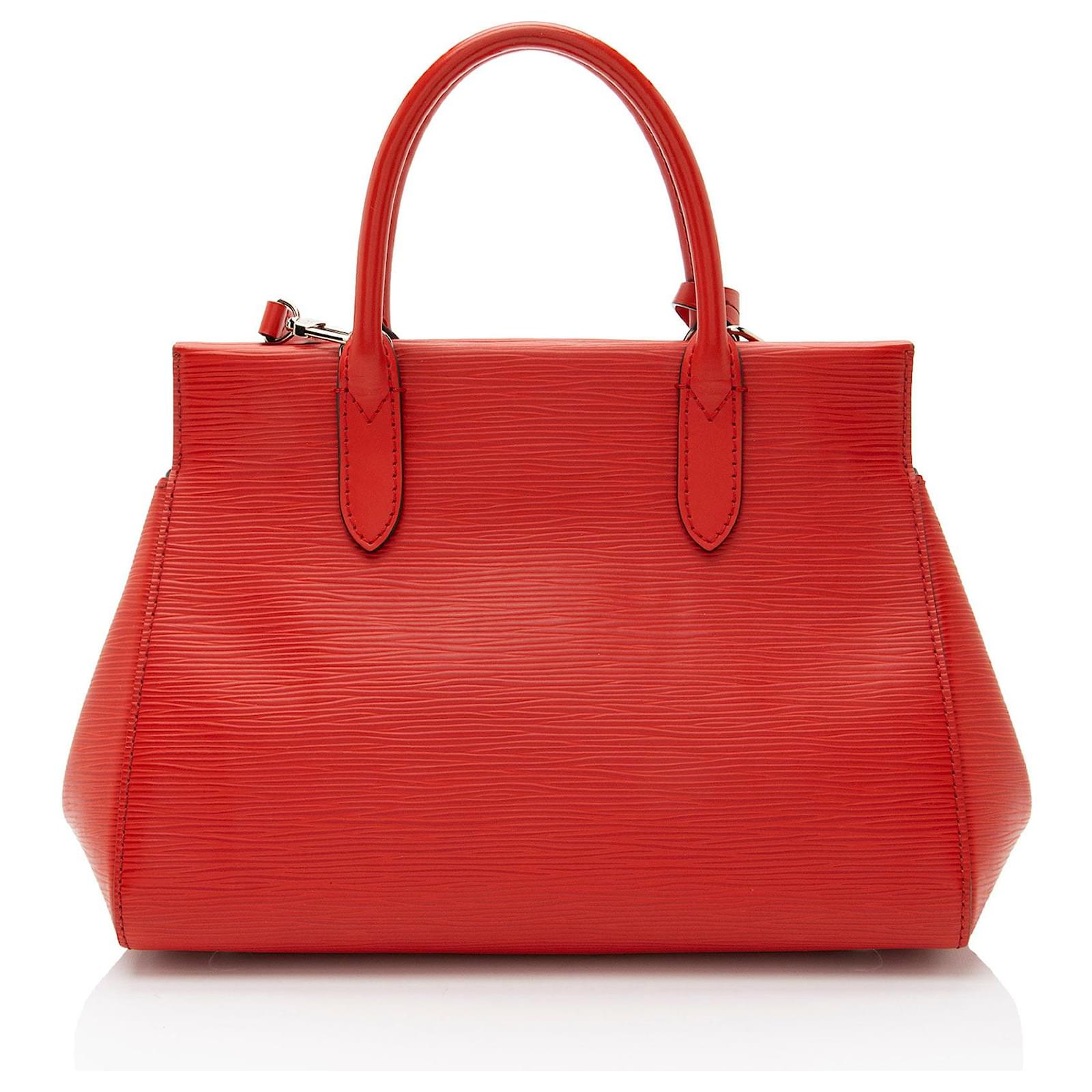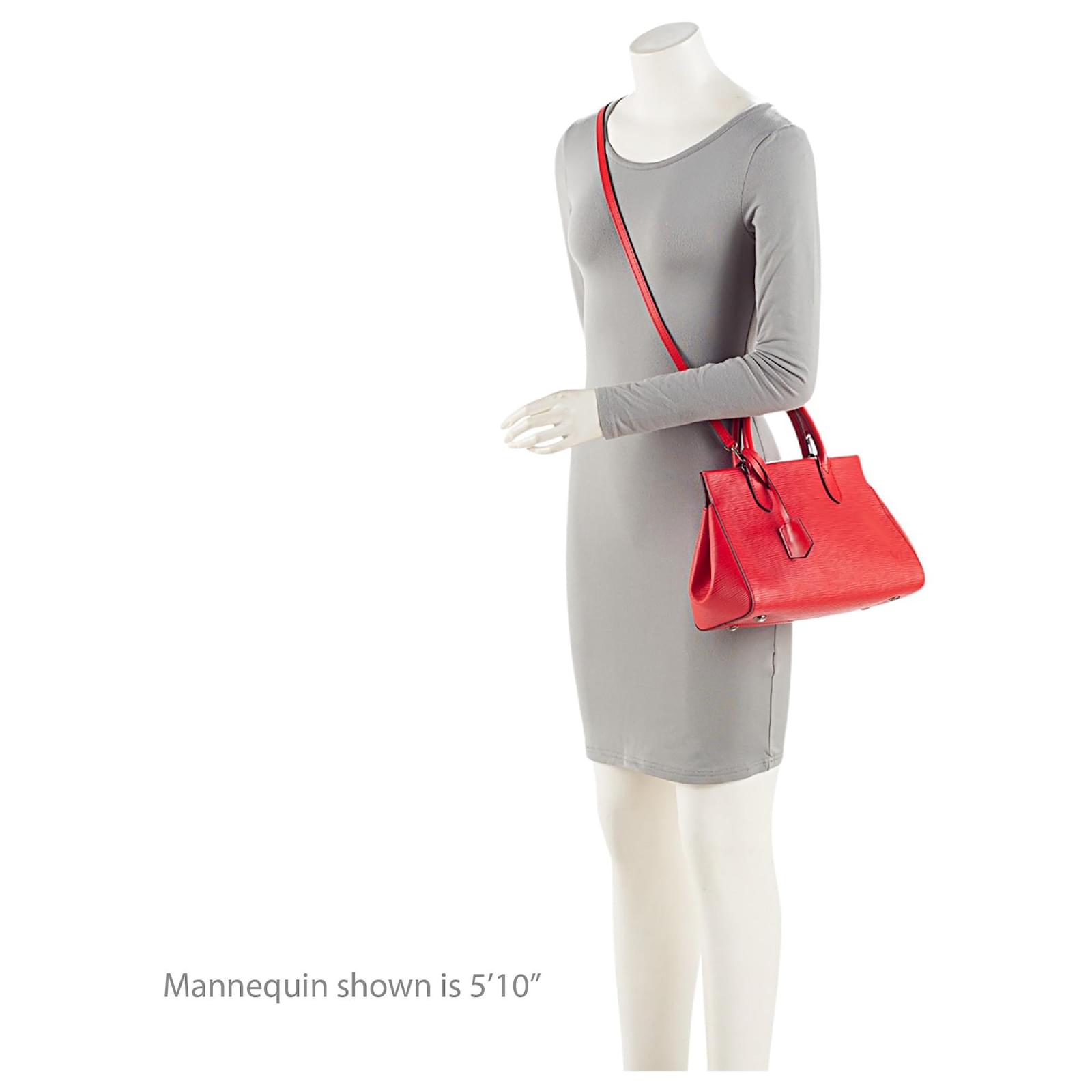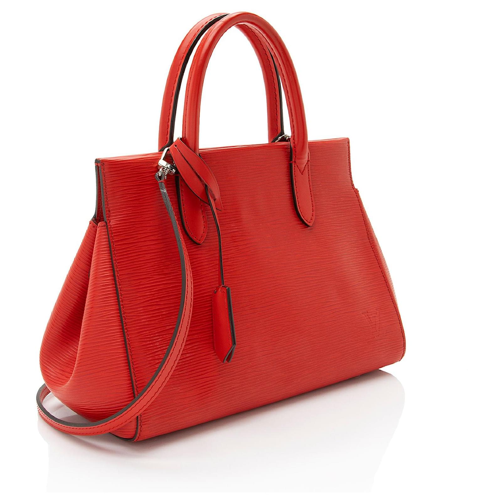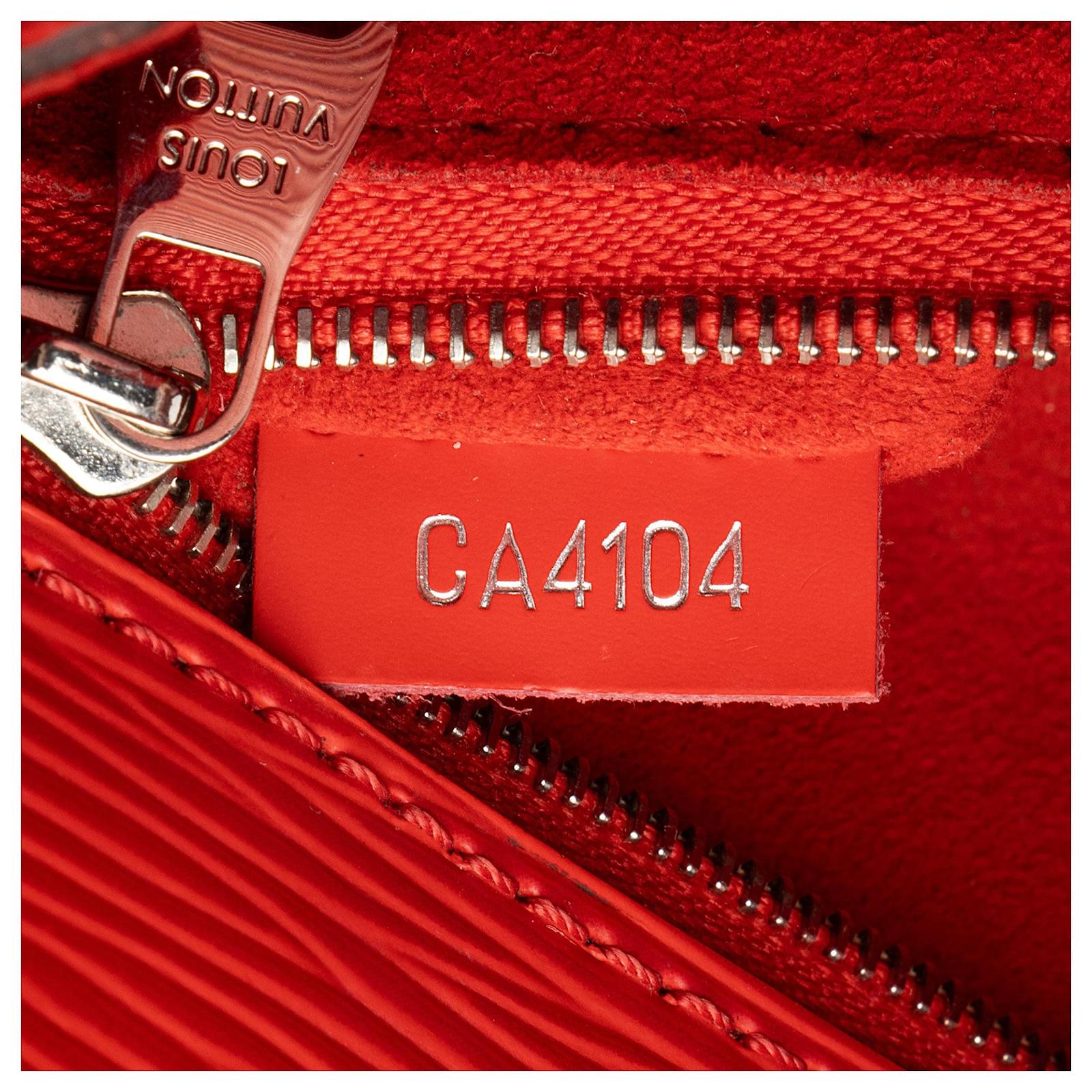 Fresh and artistic, Louis Vuitton remains one of the world’s most coveted symbols of status and sophistication. The Damier pattern was designed in 1888 and the Monogram, in 1896. Over a hundred years later, these remain two of the most recognizable prints in the world. Nicolas Ghesquière, previously of Balenciaga, is the artistic director of women’s collections (2013). Virgil Abloh was the artistic director of the men’s line starting in March 2018 until his untimely passing in 2021.Condition Notes: Light scuffs throughout exterior and handles. Scuffs and wear to exterior corners. Surface scratches and light tarnishing to hardware. Minor wear to interior.Width (at base): 10.5\”Height: 7.5\”Depth: 4.5\”Handle Drop: 3.5\”Shoulder Strap Drop: 20\”Circa: 2014Type of Material: Leather, Epi LeatherColor: RedLining: Red AlcantaraPockets: Three InteriorHardware: Silver ToneClosure: Double MagneticOrigin: SpainIncludes: Detachable Shoulder Strap, Clochette Measurments: width: 266 mm height: 190 mm strap length: 508 mm handle drop: 88.9 mm \n Product Id: 511005 \n