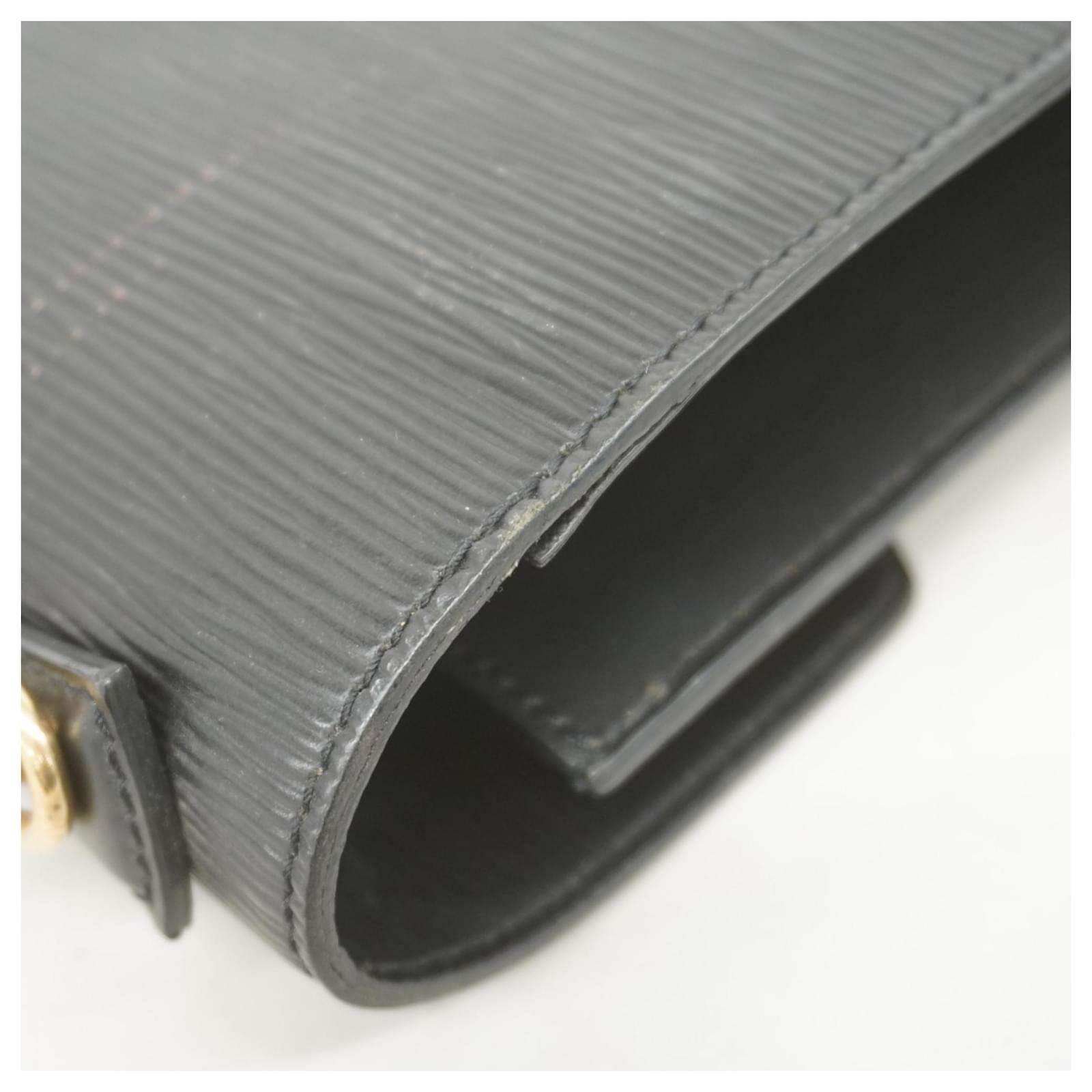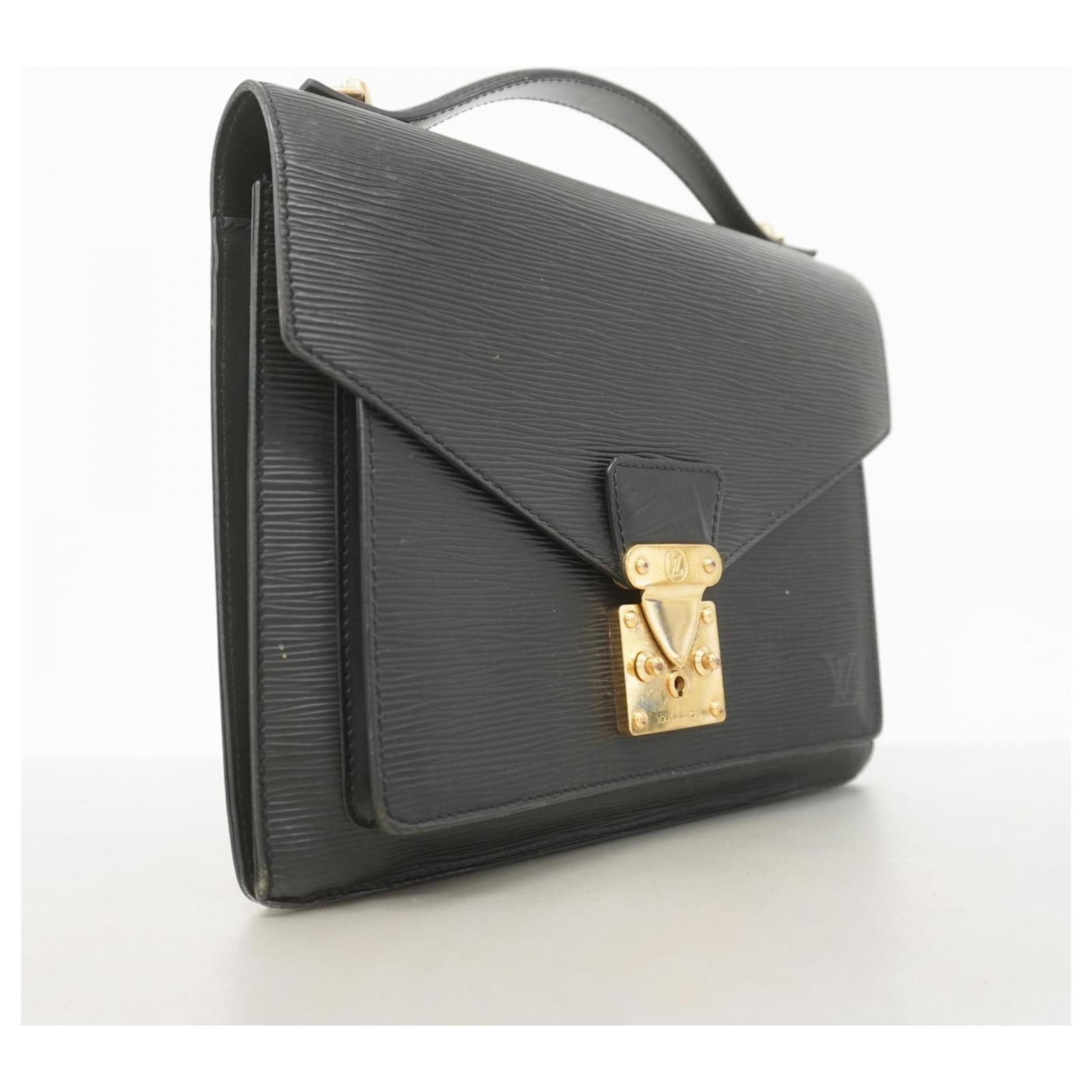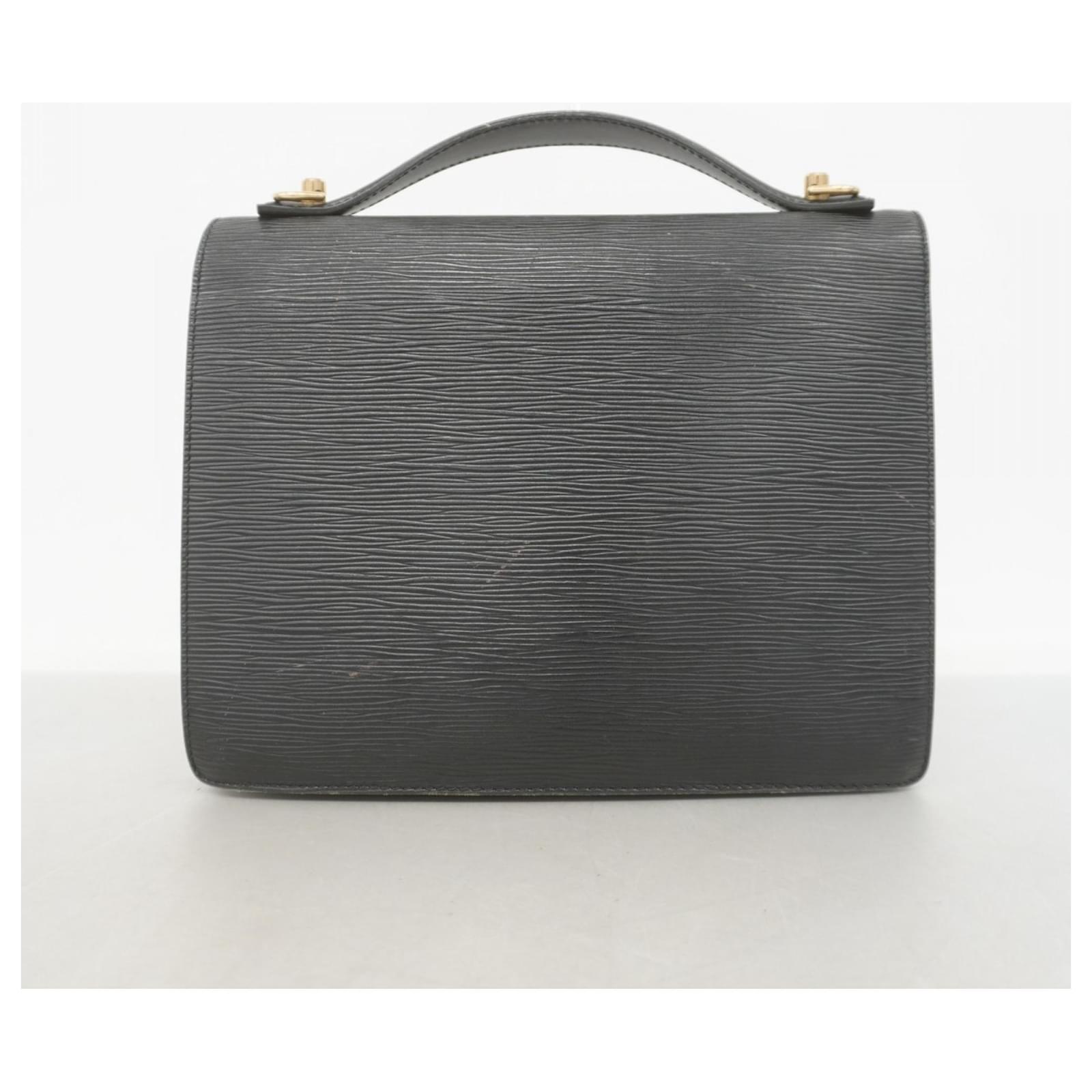 This Louis Vuitton Handbag, model Epi Monceau 28 (M52122), is presented in a classic Noir color. It is categorized as used and falls under Rank B, indicating that while it shows traces of usage, including moderate cracks on the edges and sides, as well as some deterioration in the inner pocket, it remains in acceptable condition for continued use. Potential buyers are encouraged to review the provided images to assess the exact condition of the item. Please note that no additional accessories are included with this handbag.