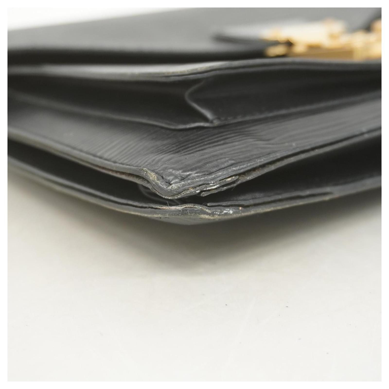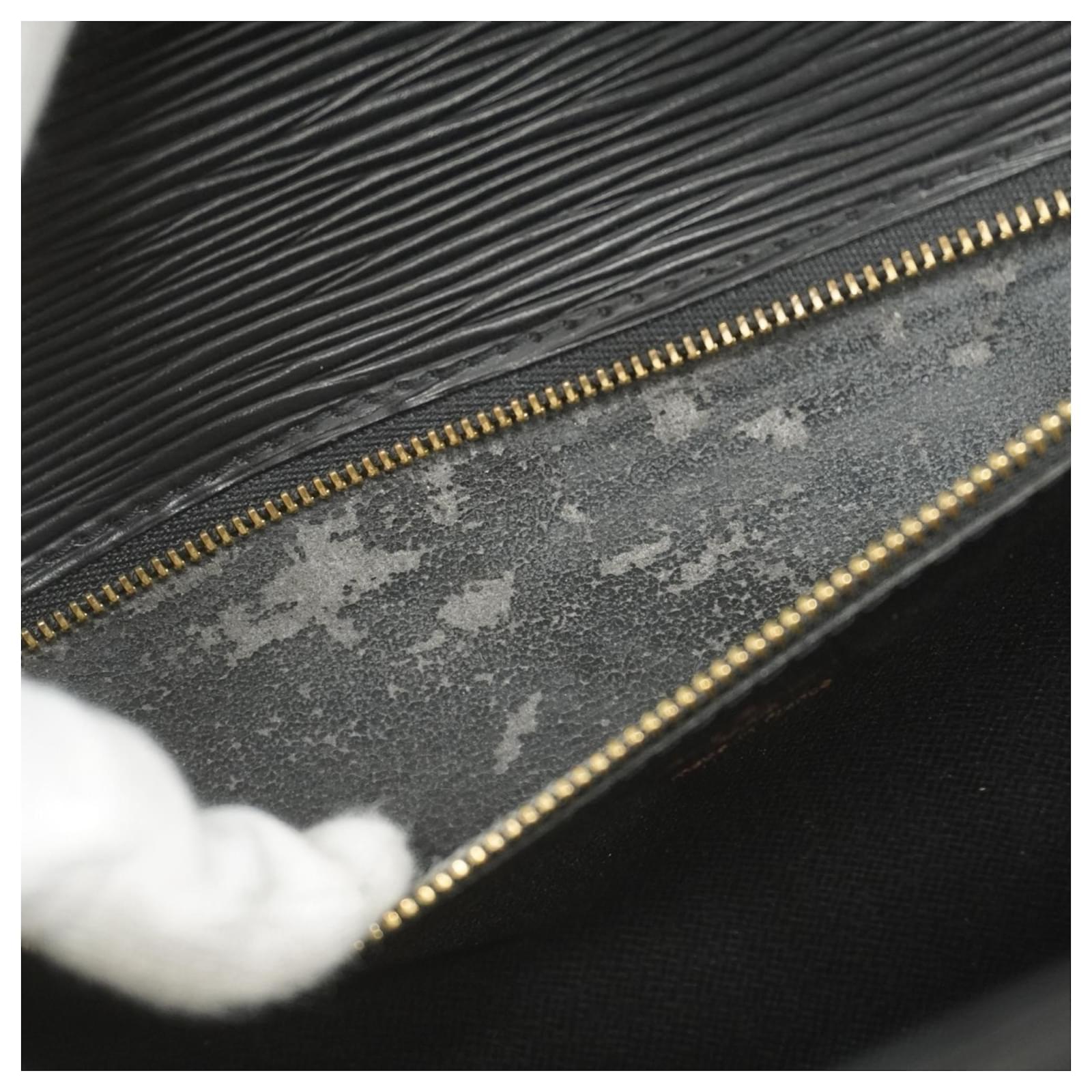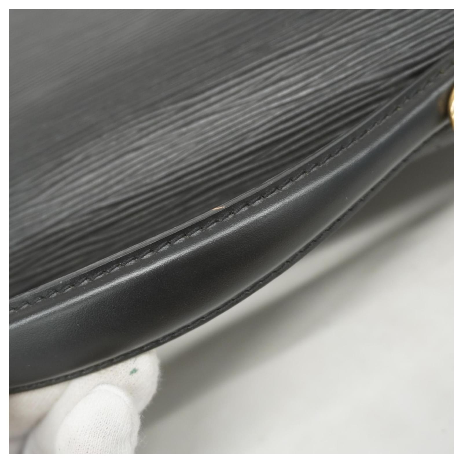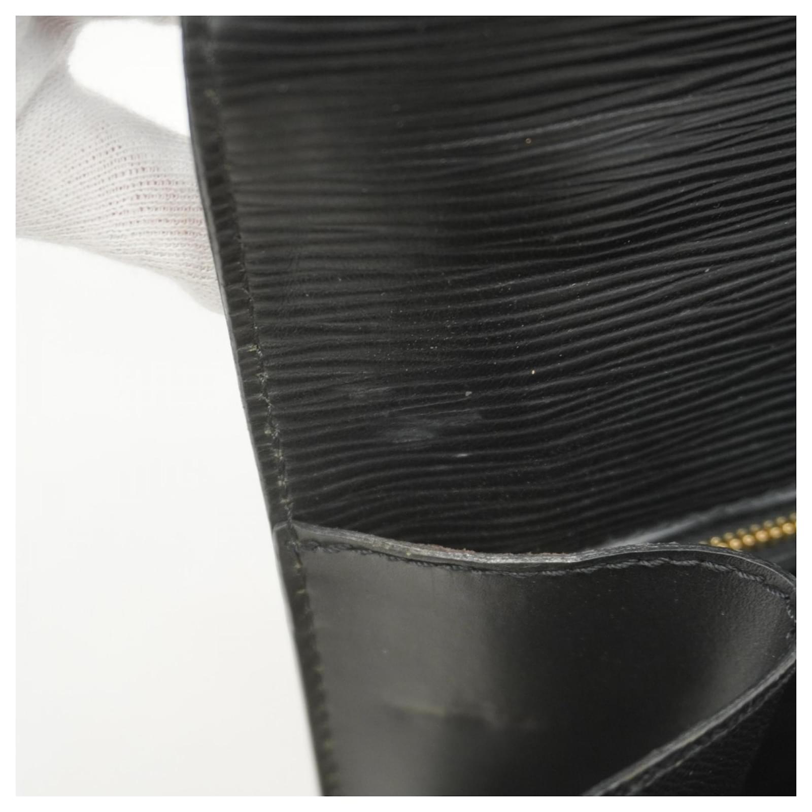 This Louis Vuitton Handbag, model Epi Monceau 28 (M52122), is presented in a classic Noir color. It is categorized as used and falls under Rank B, indicating that while it shows traces of usage, including moderate cracks on the edges and sides, as well as some deterioration in the inner pocket, it remains in acceptable condition for continued use. Potential buyers are encouraged to review the provided images to assess the exact condition of the item. Please note that no additional accessories are included with this handbag.