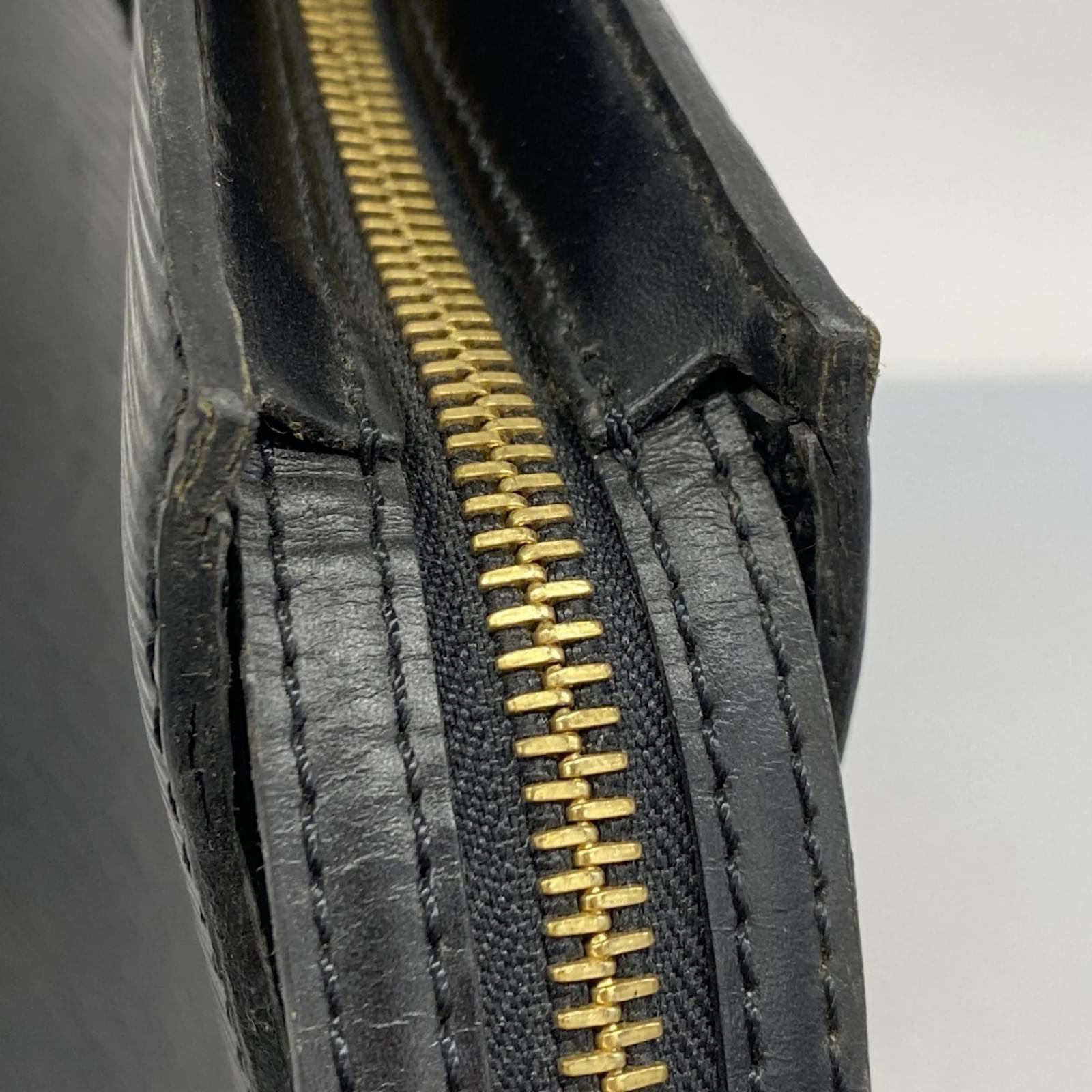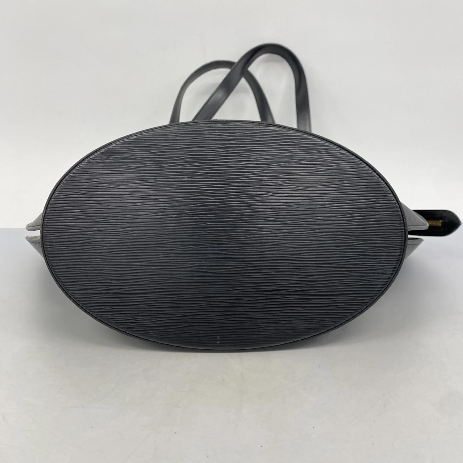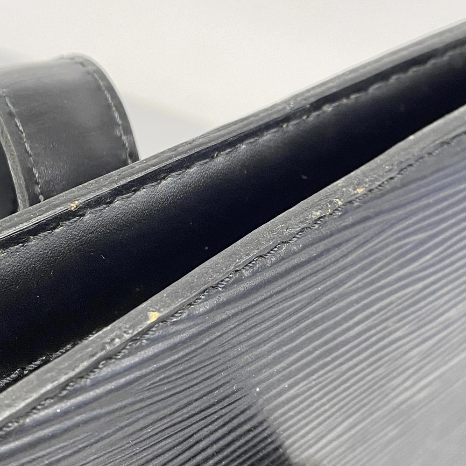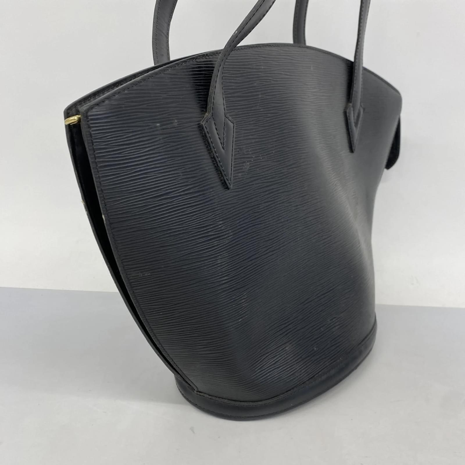 This Louis Vuitton shoulder bag, model Epi Saint Jacques M52262, is presented in a classic Noir color. Designed for ladies, it features a stylish and functional design suitable for various occasions. \n\nThe bag is in used condition, classified as Rank AB, indicating it shows slight traces of usage, including minor scratches and dirt, but remains generally in good condition. Potential buyers are encouraged to review the provided images for a clear understanding of the item’s exact condition. \n\nPlease note that no additional accessories are included with this bag.