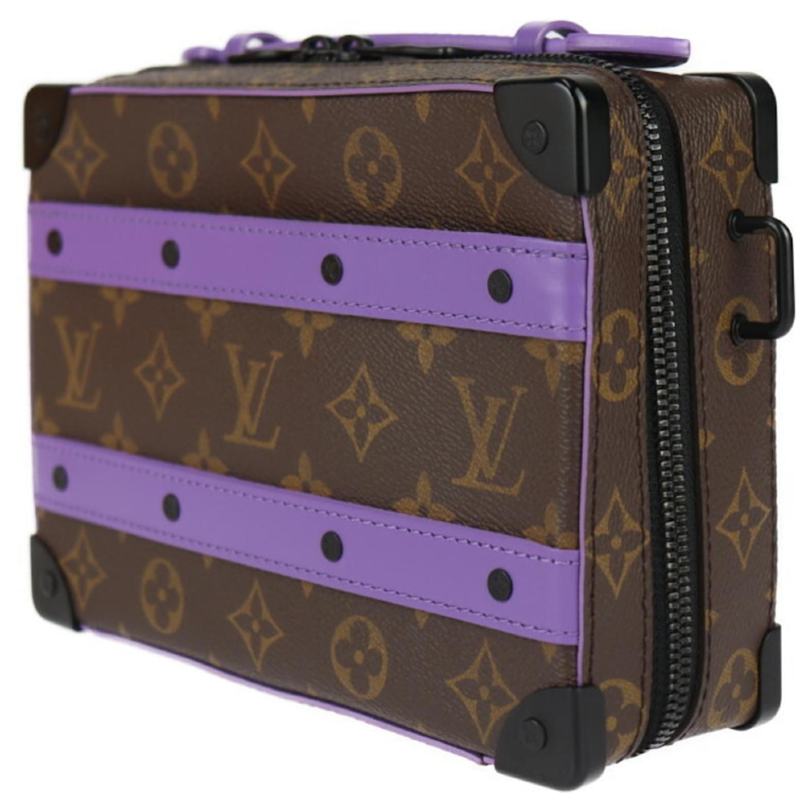 The Louis Vuitton Handle Soft Trunk Monogram Macassar Handbag is a versatile accessory that can be used as a clutch, handbag, pochette, or shoulder bag. It features a combination of brown and purple colors, crafted from PVC and leather materials. The dimensions of the bag are 15cm in height, 21.5cm in width, and 6.5cm in depth. \n\nThis item is classified as used but is in like-new condition, with minimal traces of usage. It has been rated as Rank SA, indicating it is a nice item or possibly refurbished. The hardware shows insignificant haze and peeling, and overall traces of use, scratches, and dirt are also minimal. Potential buyers are encouraged to review the images for a detailed view of the item’s condition and included accessories.