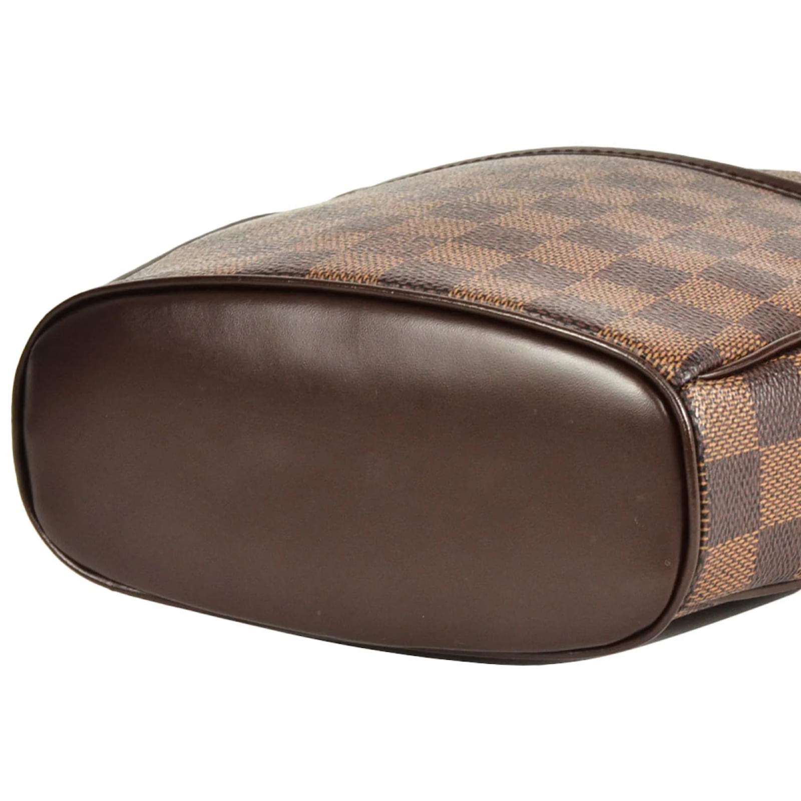 The Louis Vuitton Ipanema PM Shoulder Bag is crafted from Damier Canvas in a rich brown color, featuring a zipper closure and an open outer pocket for easy access. This unisex bag measures 22cm in height, 21cm in width, and 7.5cm in depth, with a strap length of 117cm for comfortable wear. \n\nThis pre-owned item is in good condition, classified as Rank AB, showing moderate traces of use, including slight scratches and some overall scuffing. It is important to review the provided images for a detailed view of the bag’s condition before purchasing. The bag does not come with any additional accessories. \n\nThe model code for this item is N51294, and it is a stylish choice for those looking for a practical yet fashionable shoulder bag.