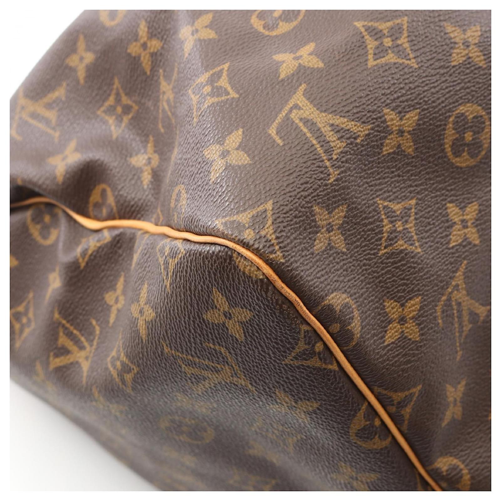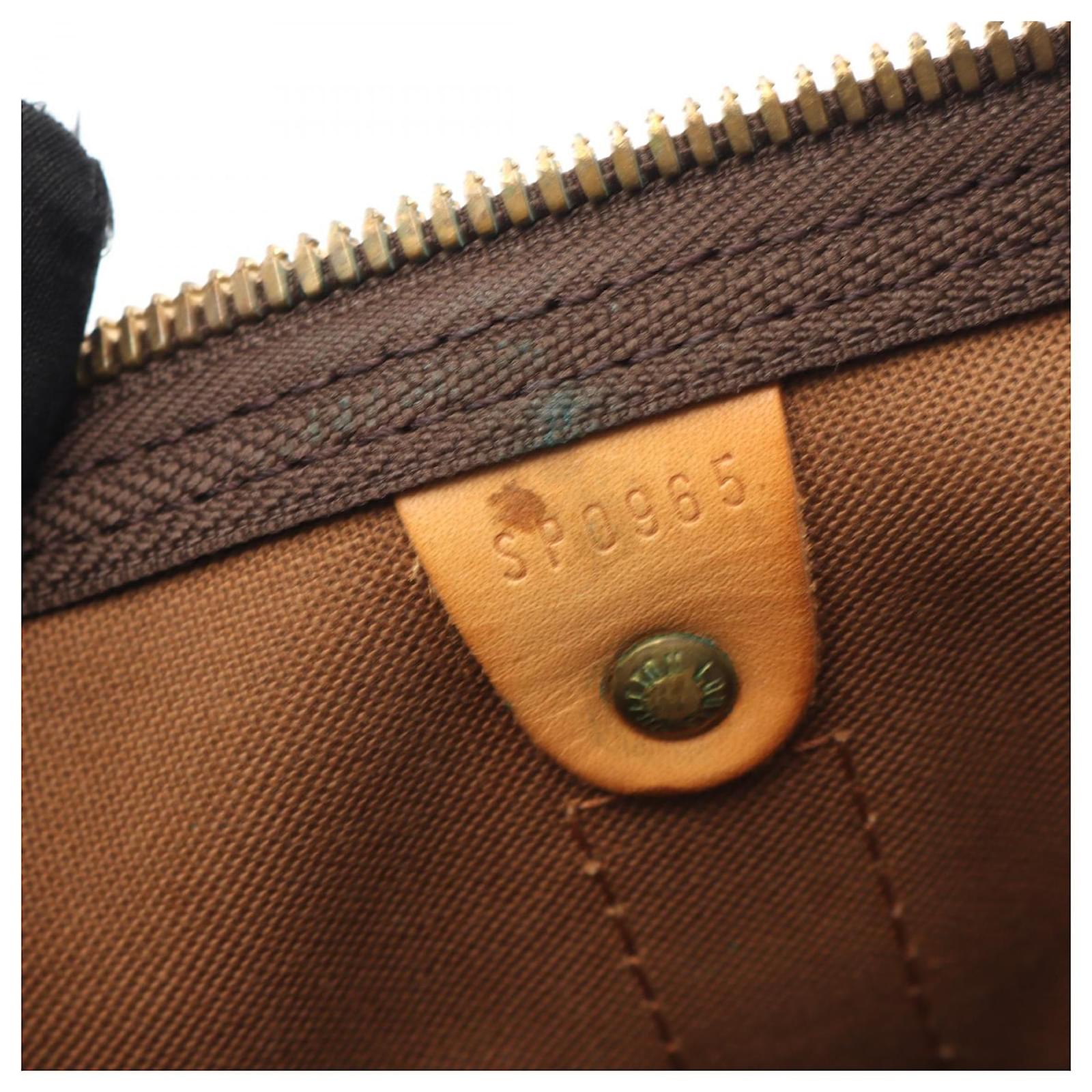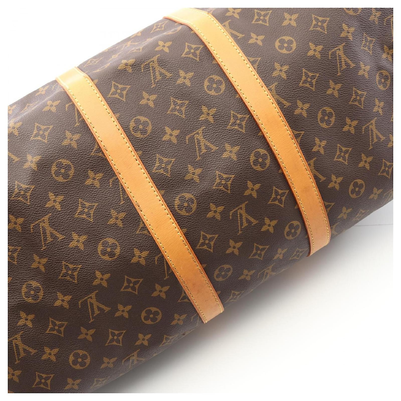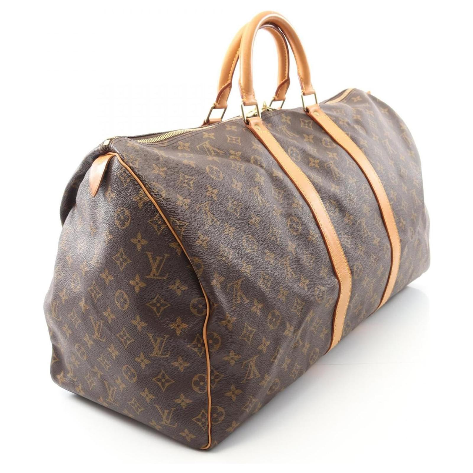 – General information -\nBrand : Louis VuittonItem name : Louis Vuitton Keepall 55 Monogram Boston BagModel number : M41424 – Design -Type : Travel BagMaterial : CanvasColor : BrownGender : Male- Size -Size : Length : 56Depth : 25Height : 30Handle Drop : 34Item Material : PVC coated canvas leatherItem Series : MonogramItem Color : BrownClosure Type : ZipperInterior : Main compartment x 1- Inventory -Serial Number : SP0965SKU : 120210026775000A0025839308- Included Items -Accessories : null*Before purchasing, please refer to the images of the accessories included with the item.- Condition -Condition : Very Good ConditionRank : Used A Used condition with some scratches and stains.Condition Notice : Before purchasing, please refer to the images for the exact condition of the item. Measurments: width: 250 mm length: 560 mm height: 300 mm handle drop: 340 mm \n Product Id: 526004 \n