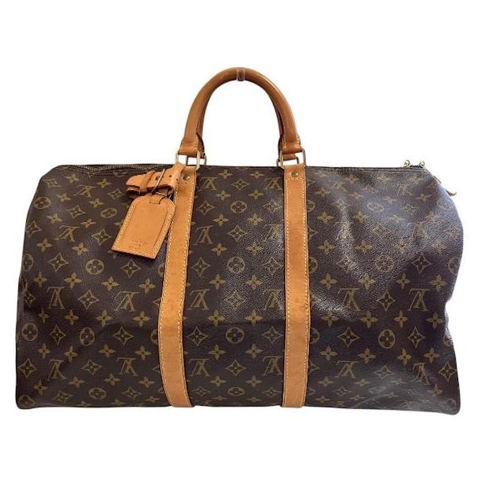 – General information -\nBrand : Louis VuittonItem name : Louis Vuitton Keepall Monogram Boston BagModel number : M41426 – Design -Type : Travel BagMaterial : CanvasColor : BrownGender : Male- Size -Size : Length : 50Depth : 29Height : 23Handle Drop : 15Item Material : Monogram CanvasItem Series : MonogramItem Color : BrownClosure Type : ZipperInterior : Main compartment x 1- Inventory -Serial Number : SKU : 120210018846000A0025760711- Included Items -Accessories : null*Before purchasing, please refer to the images of the accessories included with the item.- Condition -Condition : Good ConditionRank : Used A Used condition with obviously scratches and stains.Condition Notice : Before purchasing, please refer to the images for the exact condition of the item. Measurments: width: 290 mm length: 500 mm height: 230 mm handle drop: 150 mm \n Product Id: 503344 \n