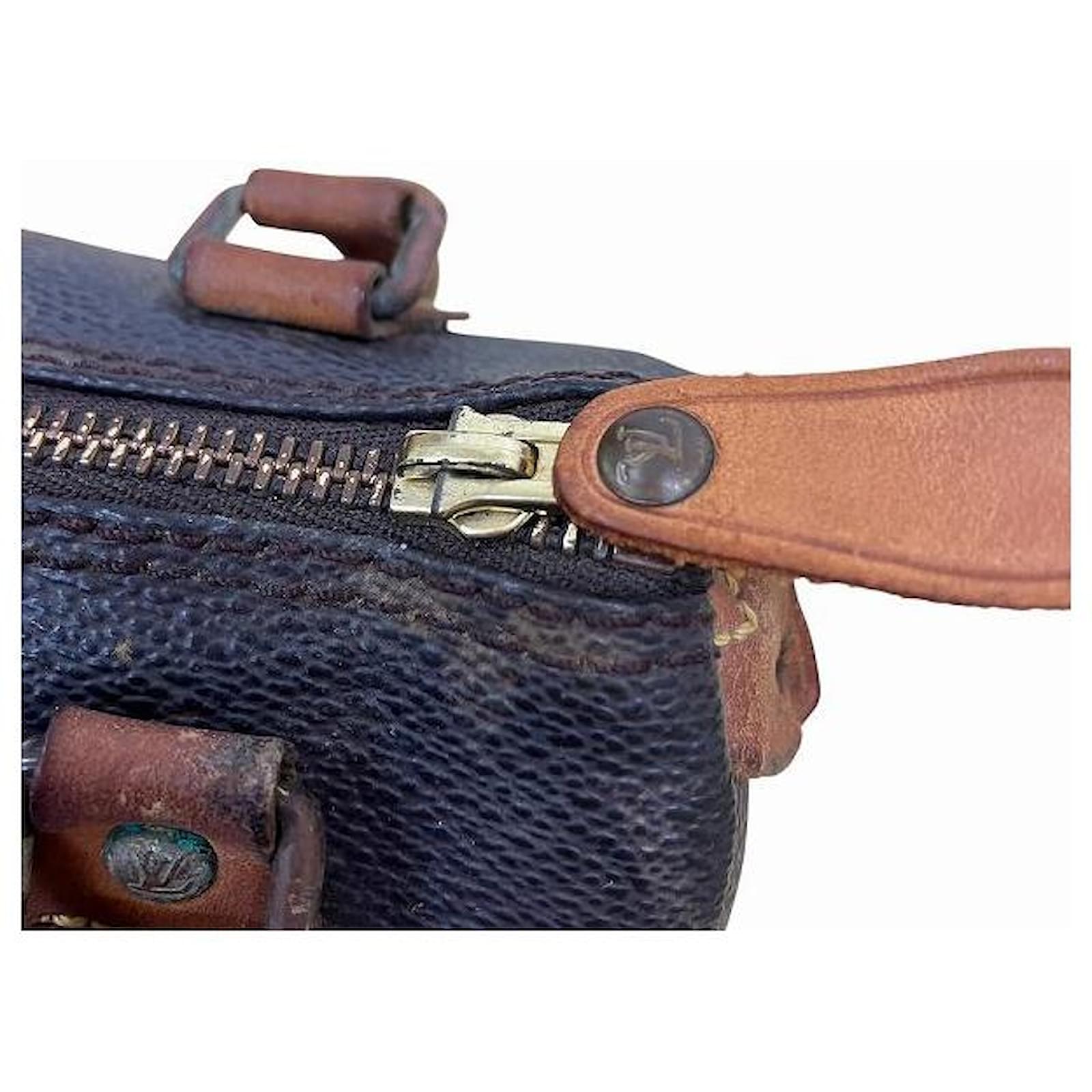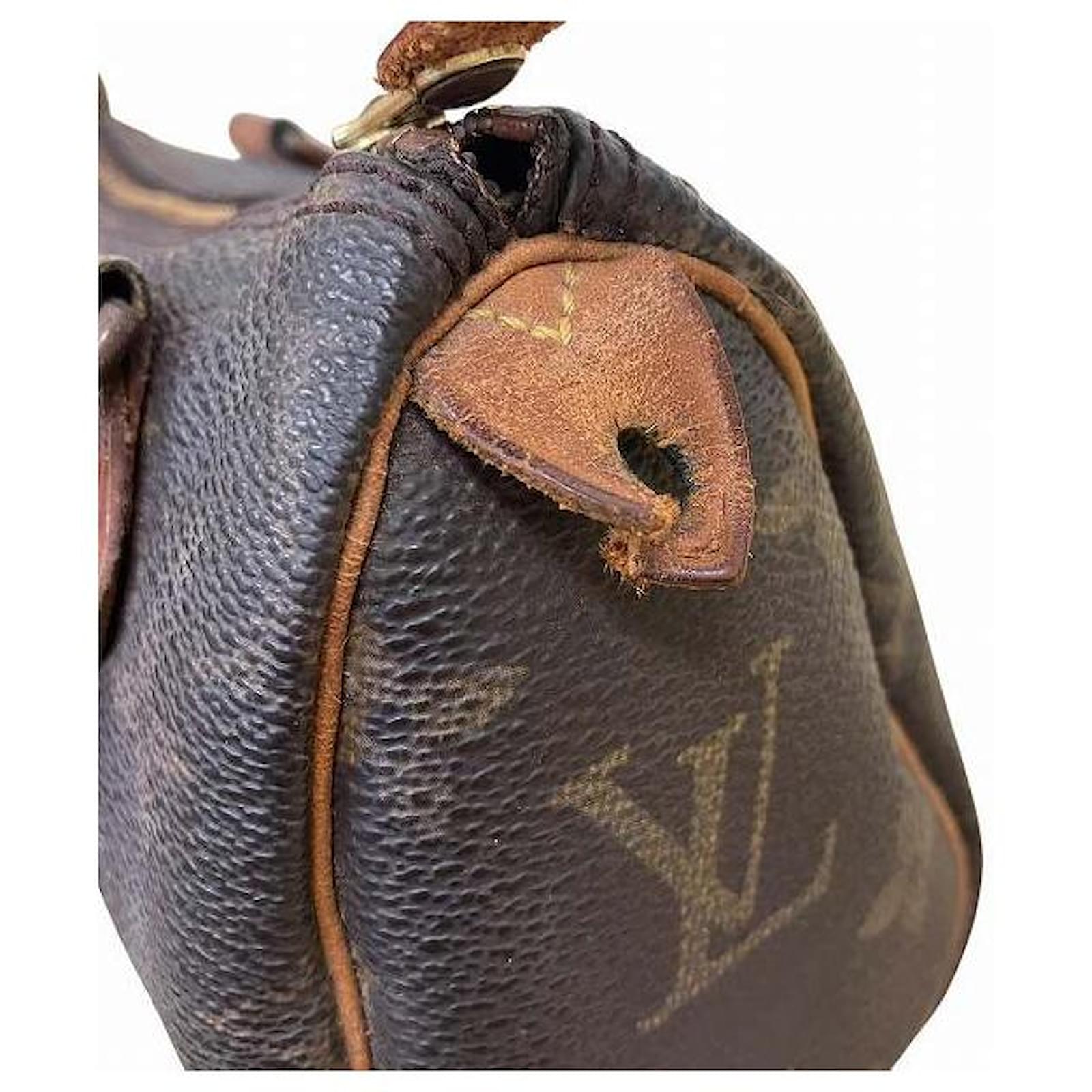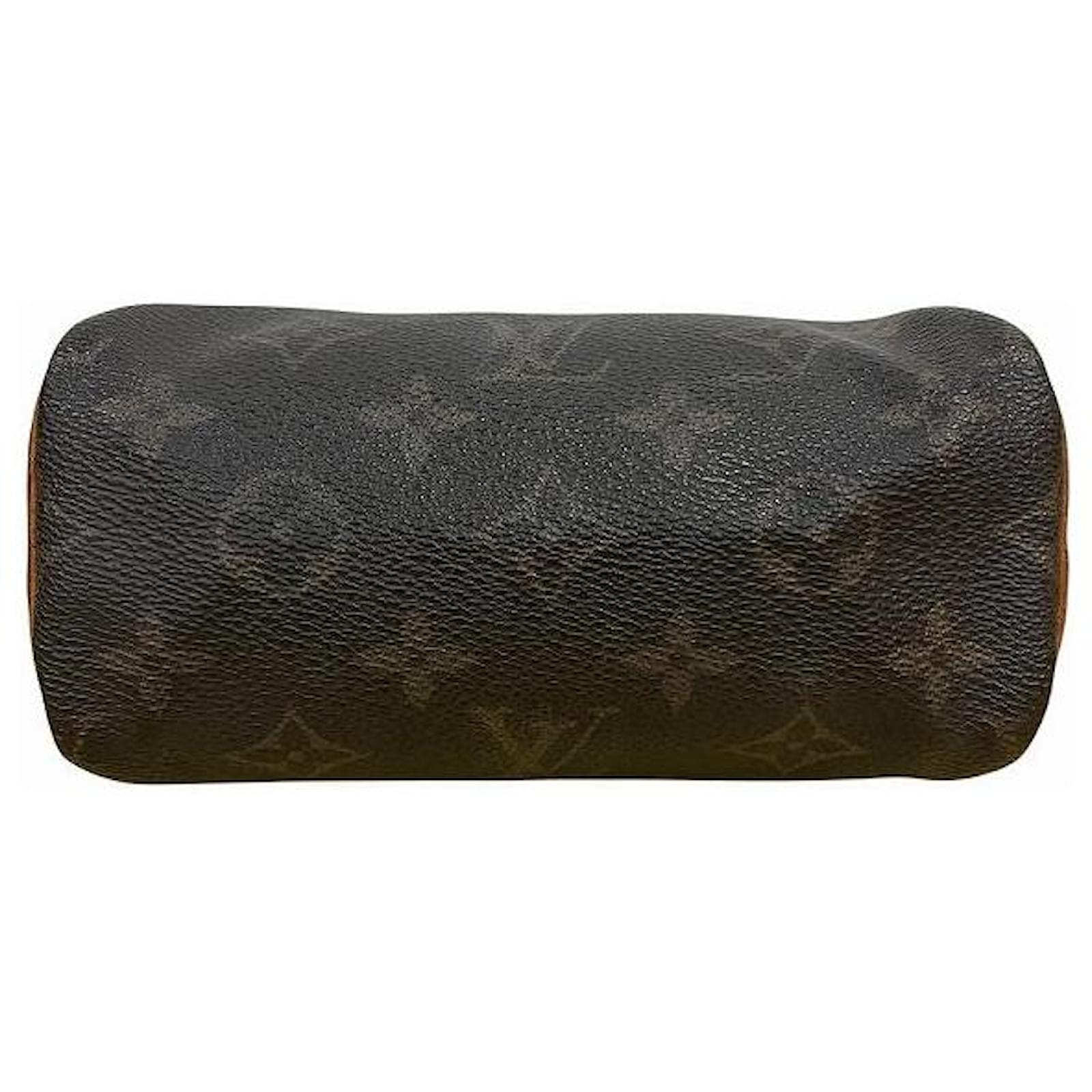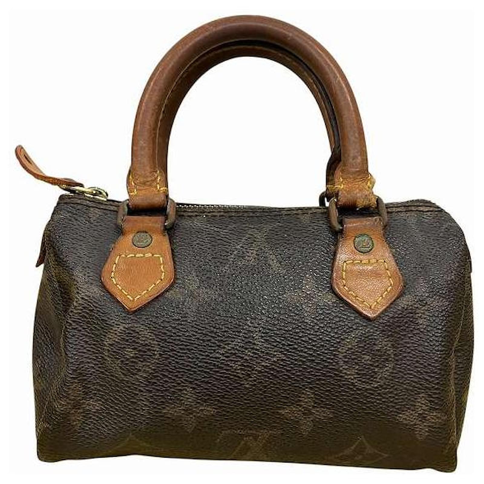 – General information -\nBrand : Louis VuittonItem name : Louis Vuitton Mini Speedy Monogram 2way bagModel number : M41534 – Design -Type : Shoulder BagMaterial : CanvasColor : BrownGender : Female- Size -Size : Length : 16.5Depth : 9.5Height : 7.5Handle Drop : 8Shoulder strap : 110Item Material : Monogram CanvasItem Series : MonogramItem Color : BrownClosure Type : ZipperInterior : Main compartment x 1- Inventory -Serial Number : SKU : 120210012773700A0025840590- Included Items -Accessories : null*Before purchasing, please refer to the images of the accessories included with the item.- Condition -Condition : Very Good ConditionRank : Used A Used condition with some scratches and stains.Condition Notice : Before purchasing, please refer to the images for the exact condition of the item. Measurments: width: 95 mm length: 165 mm height: 75 mm strap length: 1100 mm handle drop: 80 mm \n Product Id: 525701 \n