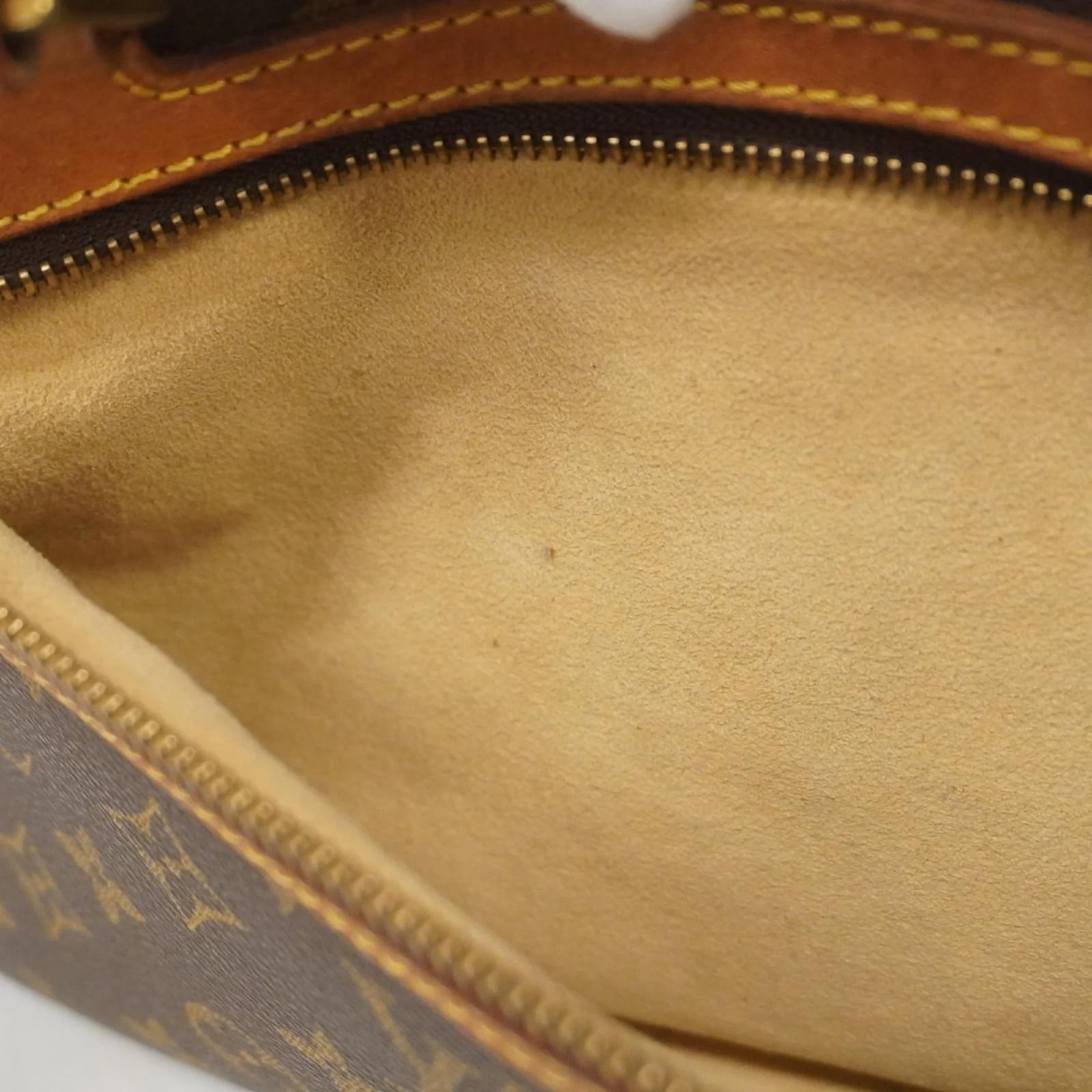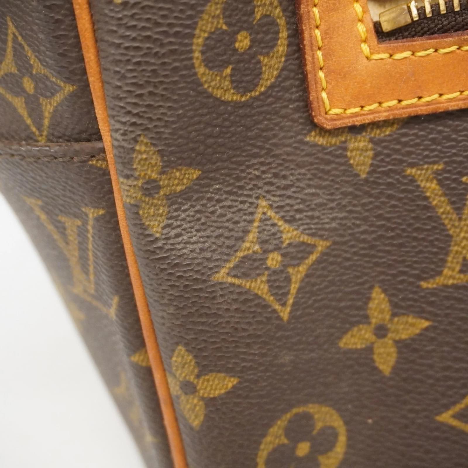 This Louis Vuitton shoulder bag, model Monogram Cite GM M51181, is designed in a classic brown color. It is categorized as a ladies’ bag and is in used condition, rated as Rank AB. The bag shows slight traces of usage, including minor scratches and dirt, but remains generally in good condition. Potential buyers are encouraged to review the provided images for a clear understanding of the item’s condition. No additional accessories are included with the purchase. The bag carries a subtle old smell, typical of pre-owned items.