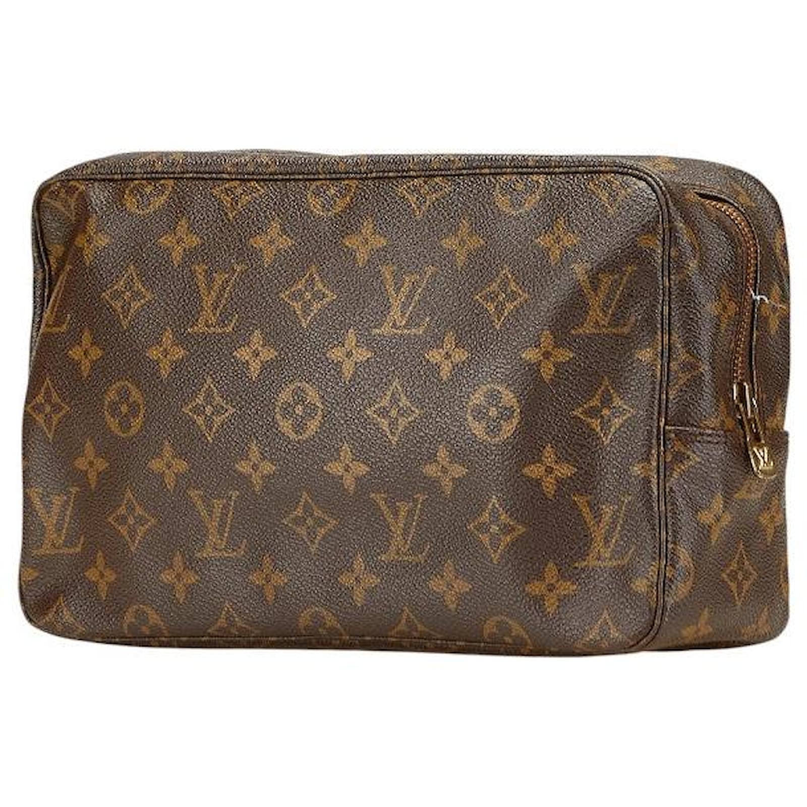 – General information -\nBrand : Louis VuittonItem name : Louis Vuitton Monogram Clutch BagModel number : M47522 – Design -Type : Clutch BagMaterial : CanvasColor : BrownGender : Female- Size -Size : Length : 27.5Depth : 7.5Height : 16.5Item Material : PVC LeatherItem Series : Toiletry 28Item Color : BrownClosure Type : ZipperInterior : Main compartment x 1, Open pocket x 1- Inventory -Serial Number : 871THSKU : 120210008856000A0025849340- Included Items -Accessories : null*Before purchasing, please refer to the images of the accessories included with the item.- Condition -Condition : Very Good ConditionRank : Used A Used condition with some scratches and stains.Condition Notice : Before purchasing, please refer to the images for the exact condition of the item. Measurments: width: 75 mm length: 275 mm height: 165 mm \n Product Id: 526155 \n