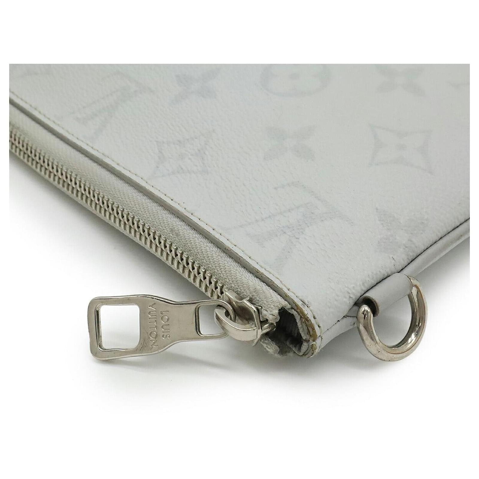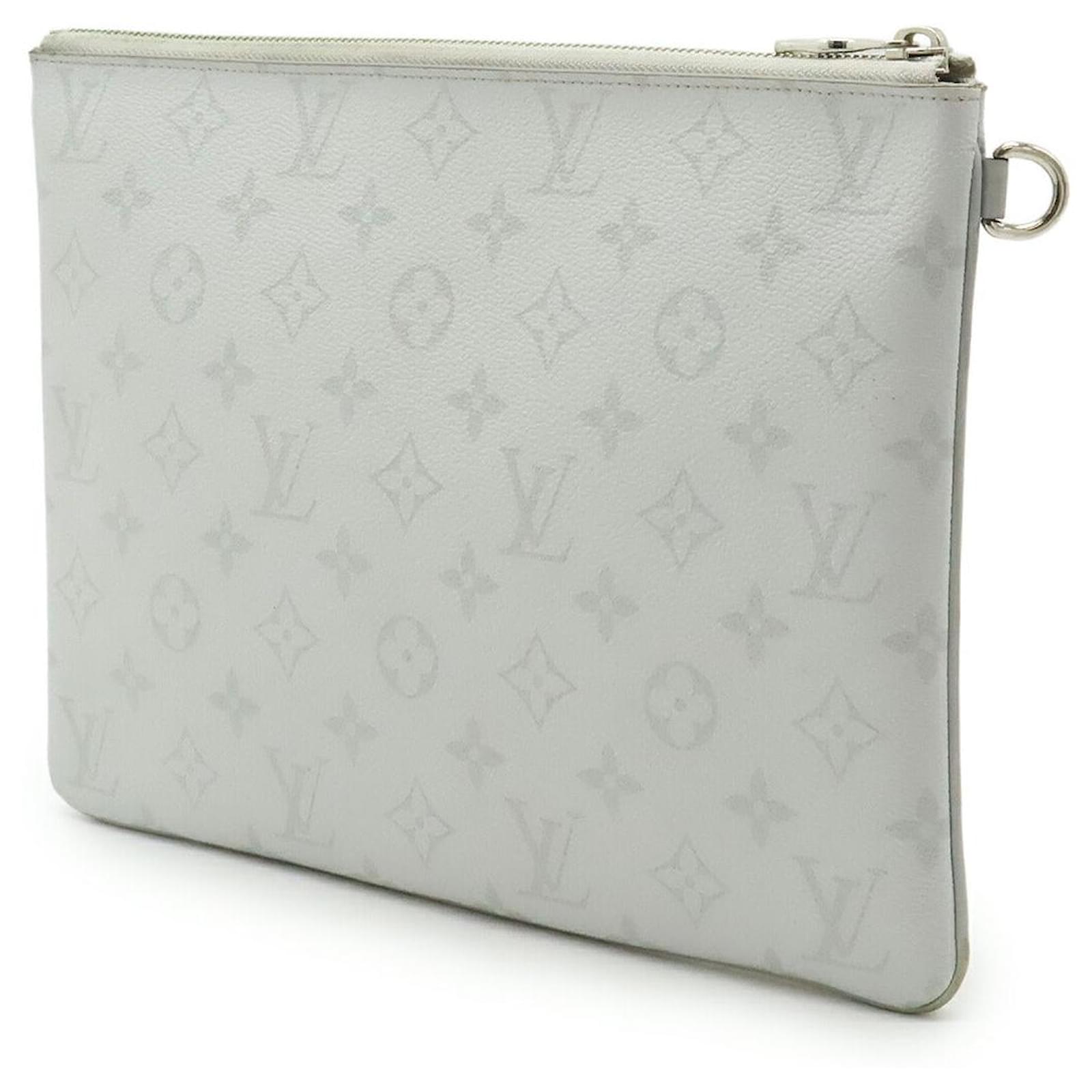 – General information -\nBrand : Louis VuittonItem name : Louis Vuitton Monogram Clutch BagModel number : M68310 – Design -Type : Clutch BagMaterial : CanvasColor : GreyGender : Male- Size -Size : Length : 28Height : 19.5Item Material : PVCItem Series : MonogramItem Color : Light GreyClosure Type : ZipperInterior : Card pocket x 6- Inventory -Serial Number : RA2109SKU : 120210013176000A0025847190- Included Items -Accessories : null*Before purchasing, please refer to the images of the accessories included with the item.- Condition -Condition : Good ConditionRank : Used A Used condition with obviously scratches and stains.Condition Notice : Before purchasing, please refer to the images for the exact condition of the item. Measurments: length: 280 mm height: 195 mm \n Product Id: 525421 \n