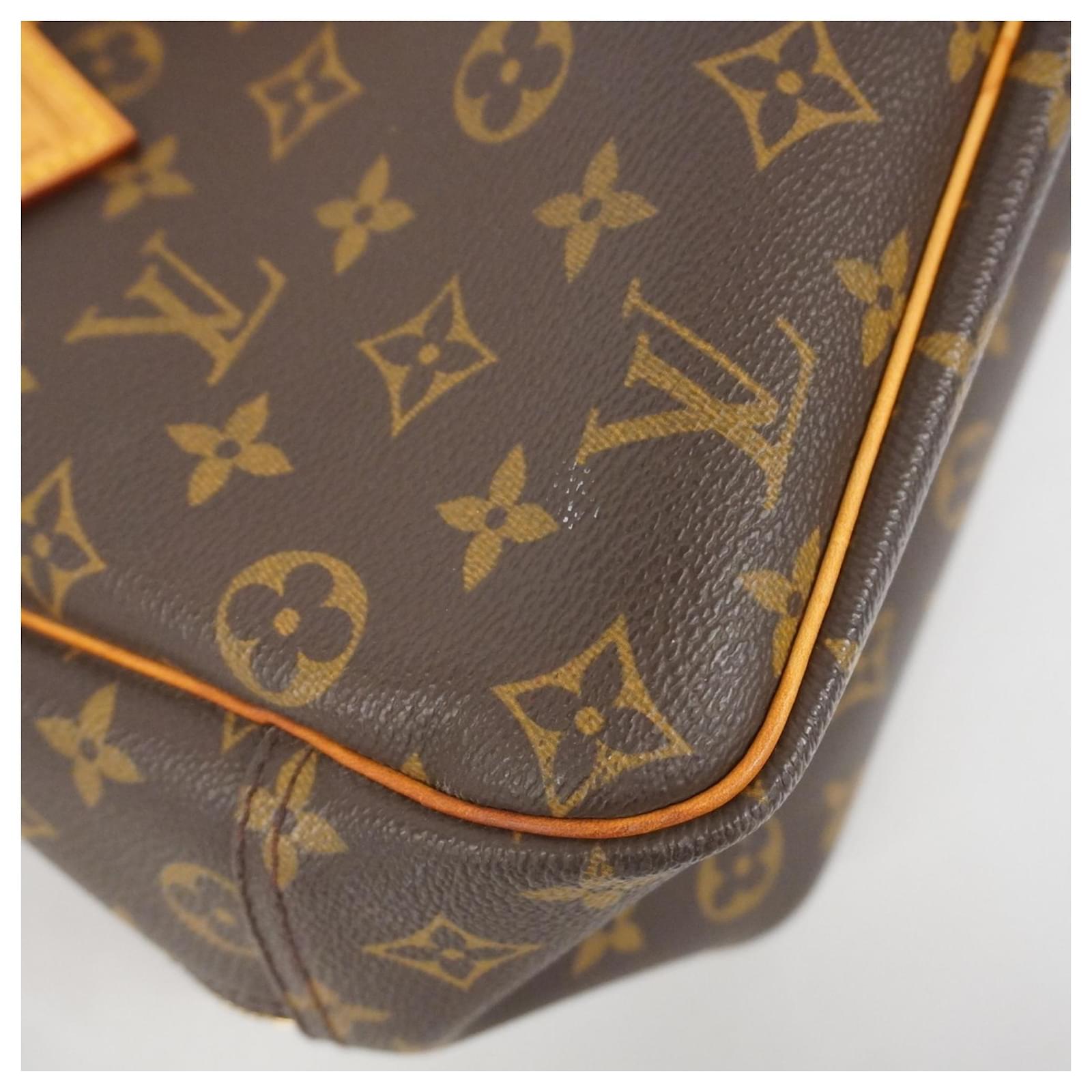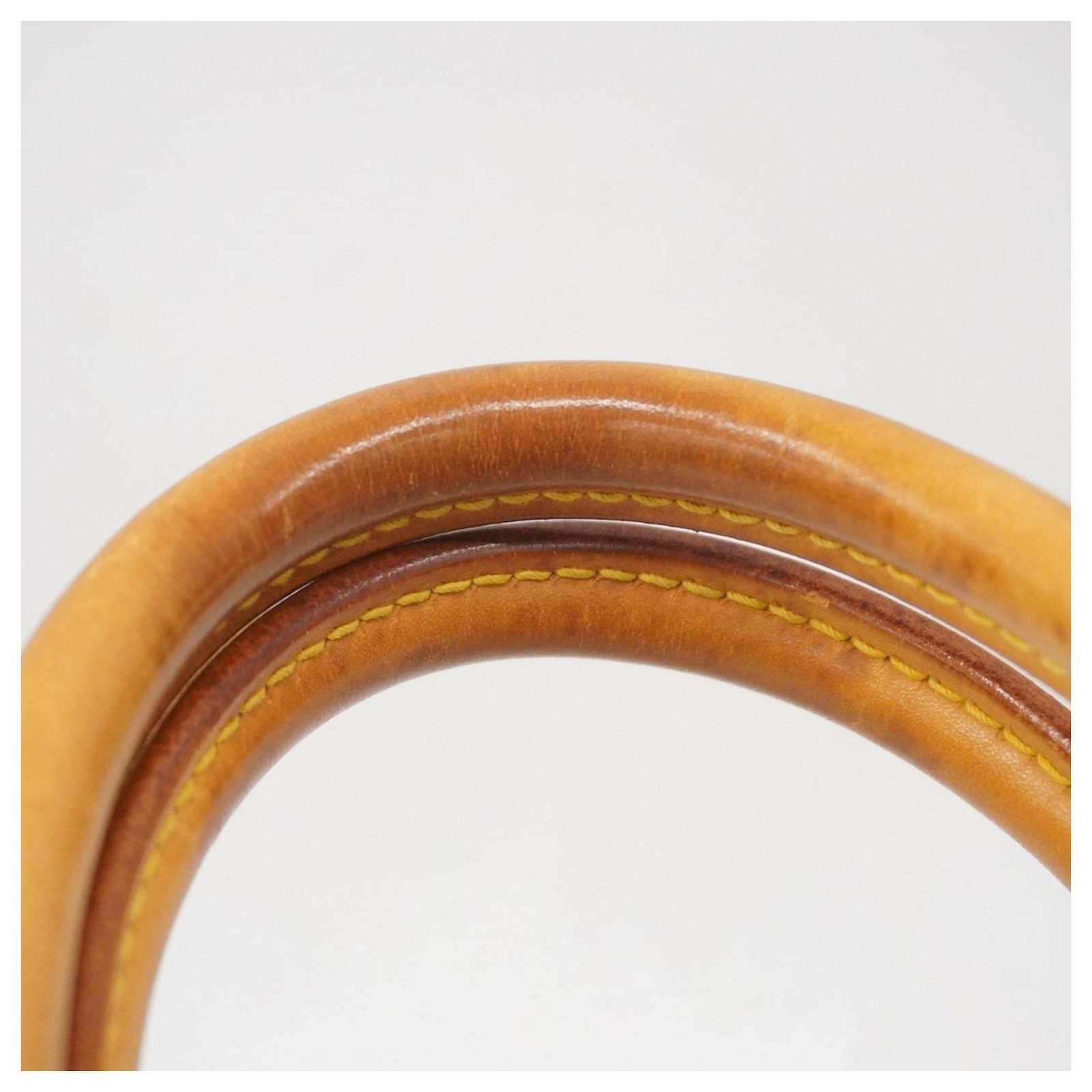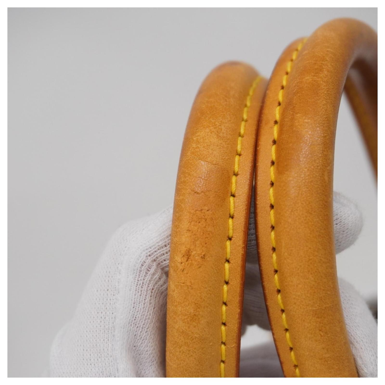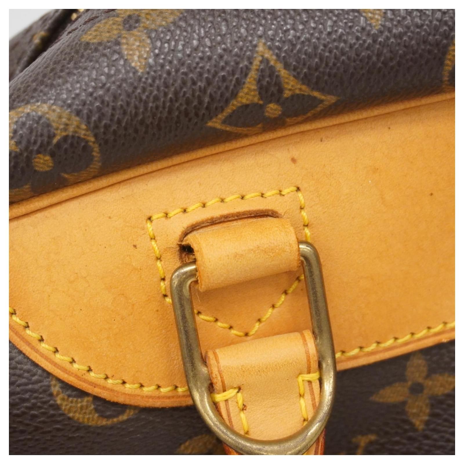 This Louis Vuitton handbag, model Monogram Deauville M47270, is designed for ladies and comes in a classic brown color. It is a used item in good condition, classified as Rank AB, indicating slight traces of usage, including minor scratches and dirt. The handbag features initials \”M.T\” inscribed on it. Included with the handbag are a name tag and a padlock. Potential buyers are encouraged to review the images for a detailed view of the item’s condition and included accessories.