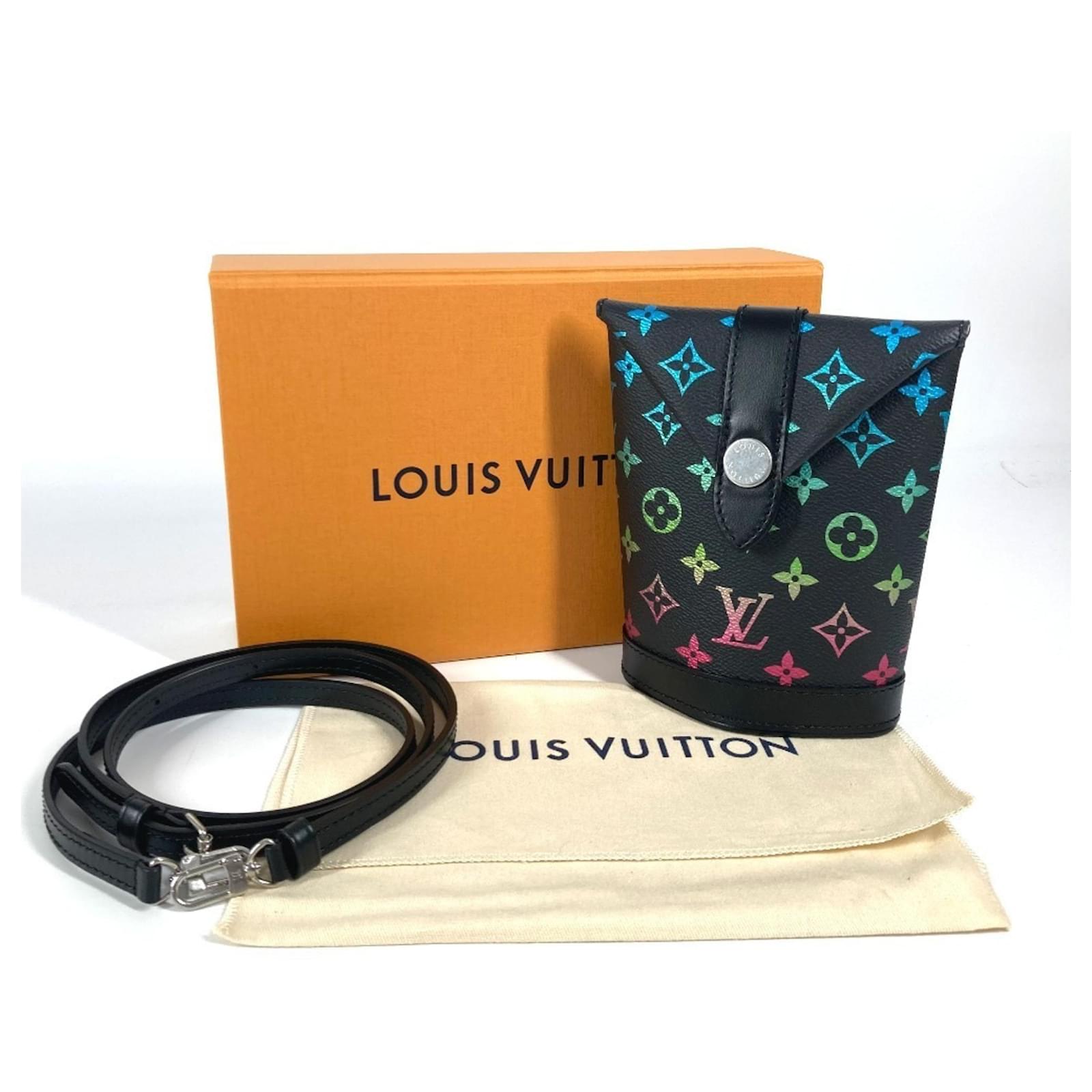 The Louis Vuitton M13906 Monogram Gradient Envelope Pouch Bag is a stylish accessory designed for the Spring/Summer 2025 collection. This pochette and shoulder bag features a magnetic closure and is crafted from leather, available in a black and multi-color design. \n\nMeasuring 17.5cm x 12cm x 7cm, it is compact yet functional. The bag is in used condition, rated as \”like new\” with a seller ranking of Rank S, indicating it is in mint condition with minimal signs of wear, specifically a hardware scratch. \n\nIncluded with the bag are a box and dust bag, and potential buyers are encouraged to review the images for a detailed view of the item’s condition and included accessories. The bag also features an RFID serial number for authenticity.