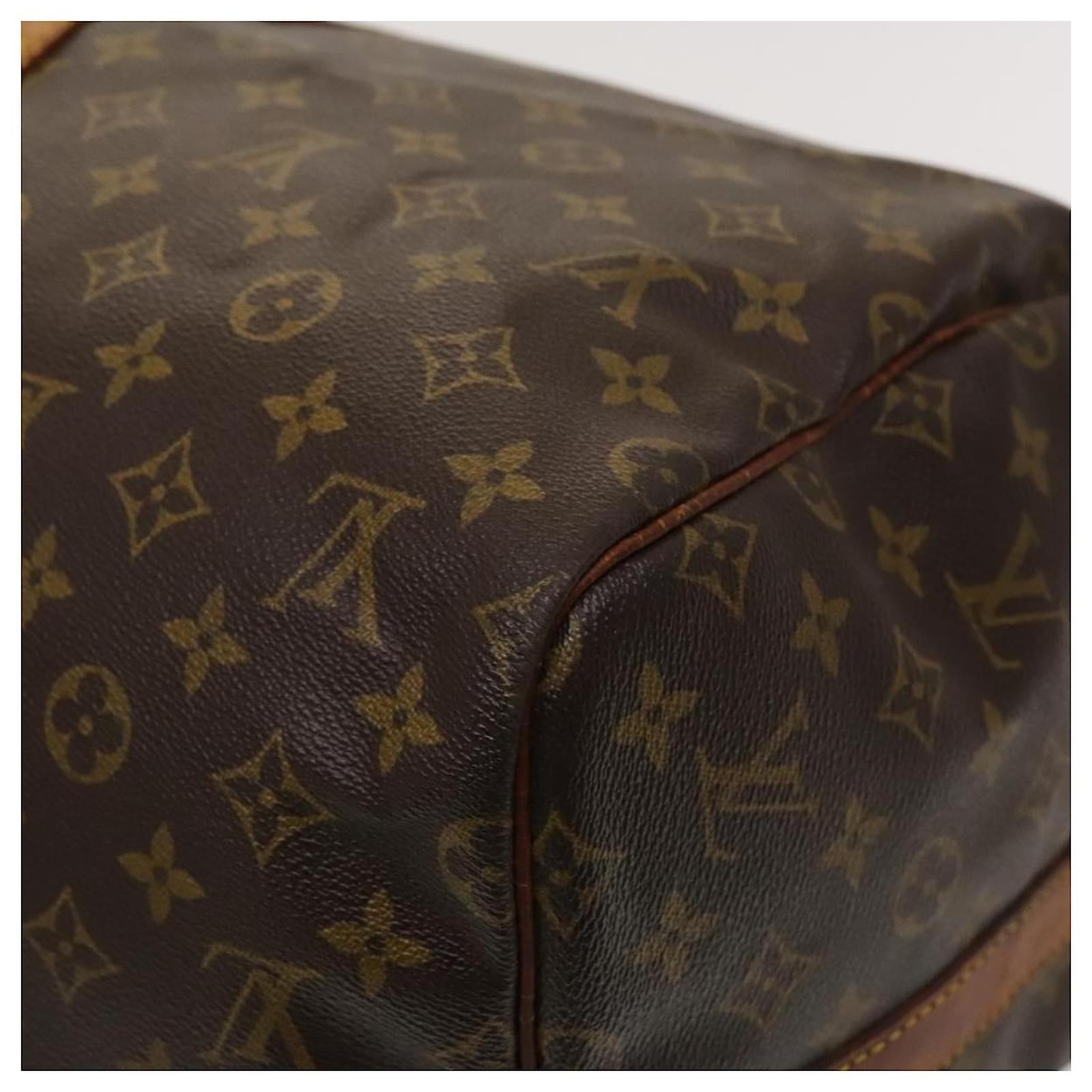 BRAND : LOUIS VUITTON\n Color : Monogram\n Material : Monogram Canvas \n Size(cm) : W55cm x H27cm x D25cm(Approx) / Shoulder 102 – 120cm(Approx)\n Size(inch) : W21.7 x H10.6 x D9.8inch(Approx) / Shoulder 40.2 – 47.2inch(Approx)\n Style : Boston Bag\n Accessory : Name Tag / Powanie / Shoulder Strap\n Product No. : M41414\n Serial No. : VI0930\n Made in : France\n RANK : CD\n SKU : 125966\n Condition : \n Outside : SurfaceFlose shape , rubbing\n Metal fittingsFscratches , painting off\n Inside : rubbing , partly stain\n Pocket : -\n Corners : rubbing\n Odor : There is keeping(storage) smell.\n Other Remarks : –