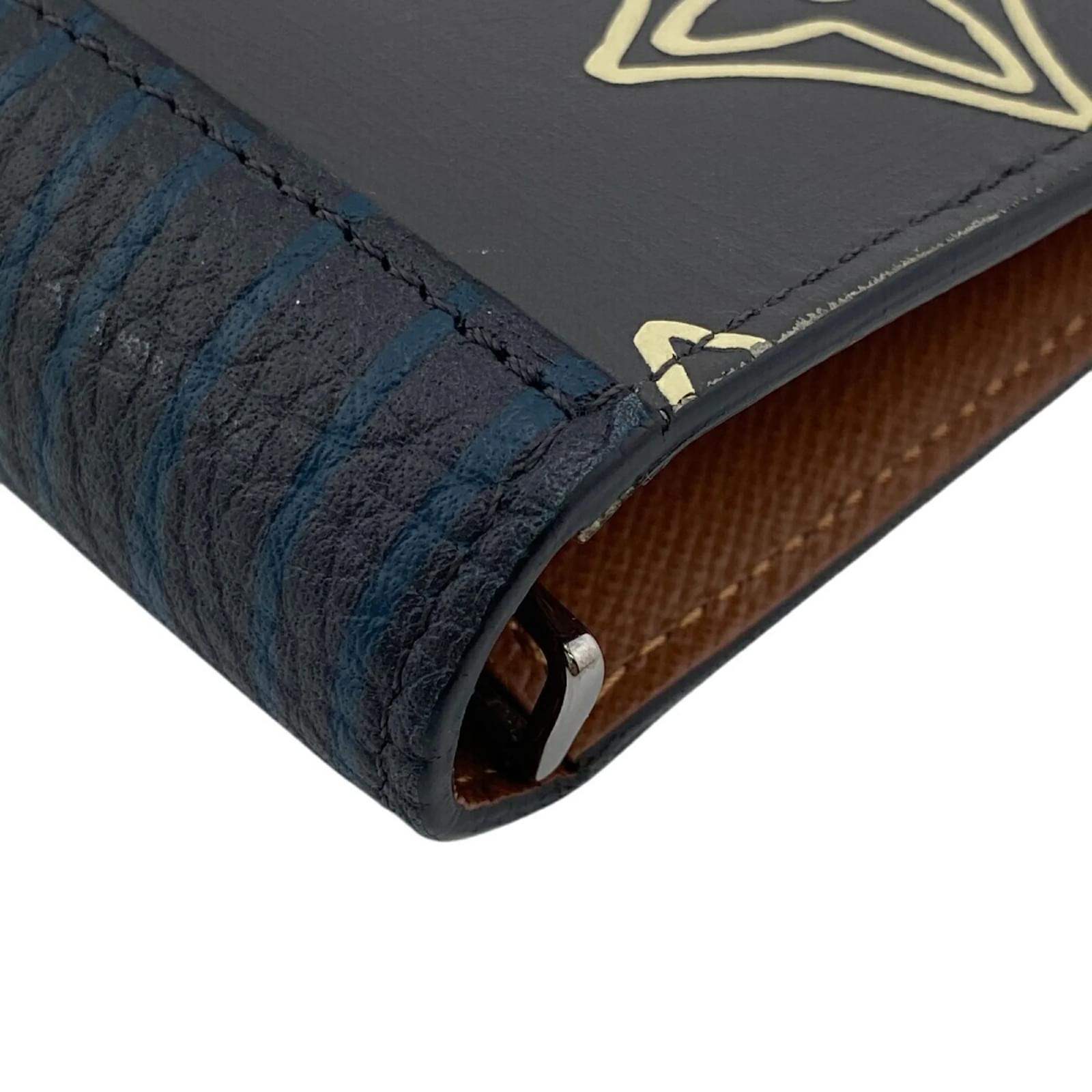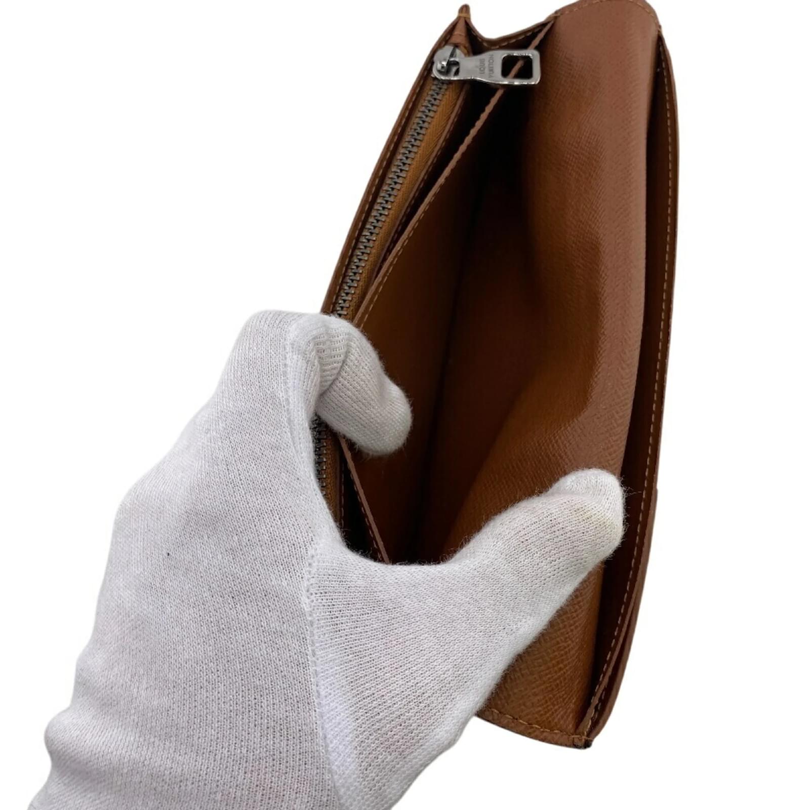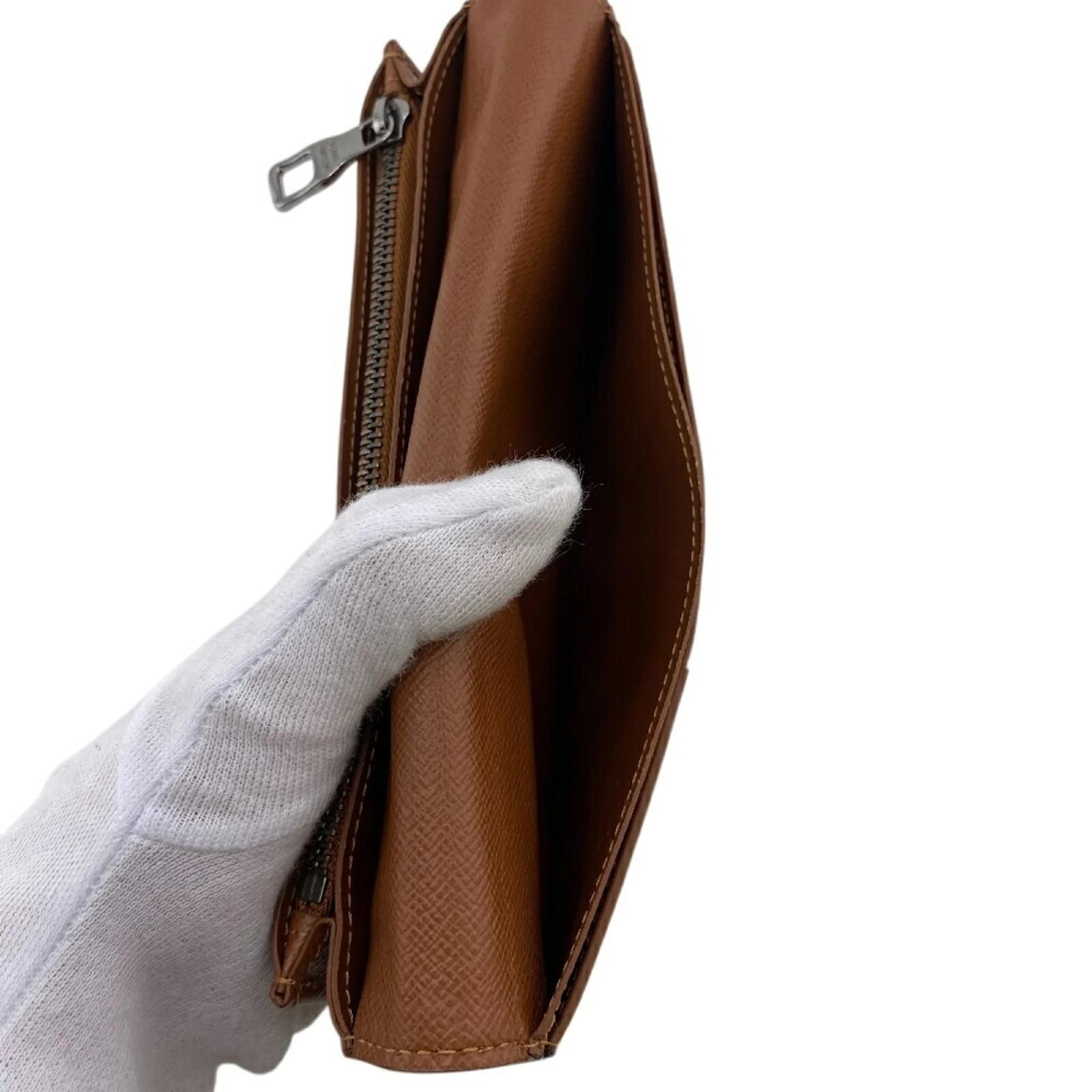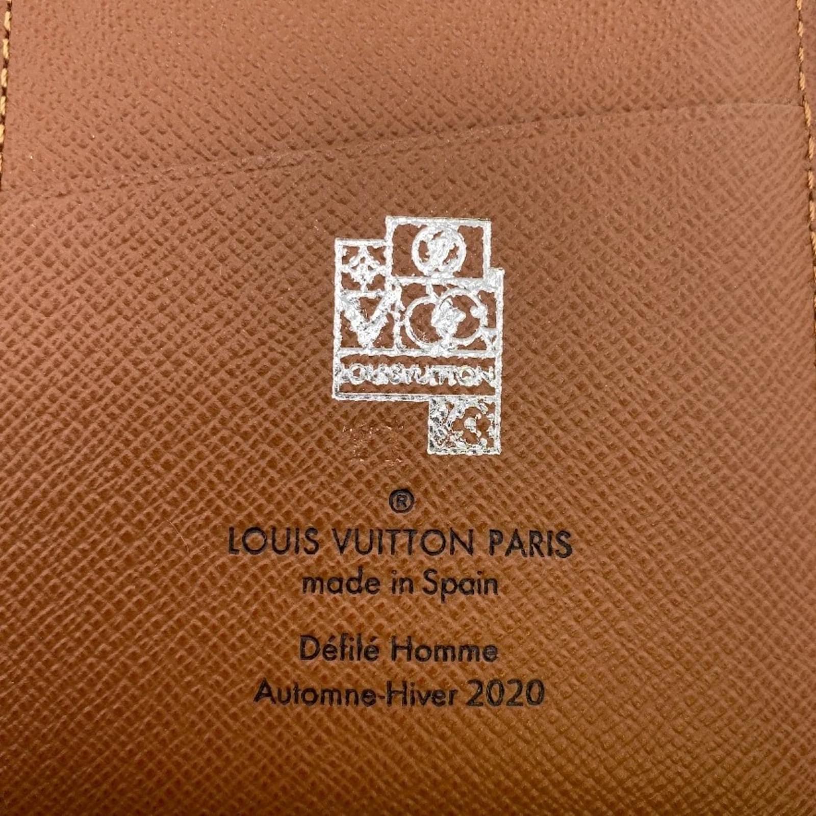 The Louis Vuitton Portefeuille Brother is a long bi-fold wallet crafted from Monogram material, featuring a flap closure. It comes in a classic black and monogram color scheme, measuring 19cm x 9.5cm (7.48” x 3.74”). This wallet includes multiple inner pockets such as a bill slot, coin purse, card slots, and an additional pocket for convenience. \n\nThis item is pre-owned and classified as used (good condition), with some visible traces of usage, including slight scratches and dirt. It is ranked as AB Used, indicating that while there are signs of wear, the wallet remains in generally good condition. The wallet is accompanied by a box and strap, and it originates from Spain. For a detailed view of its condition, potential buyers are encouraged to refer to the provided images.