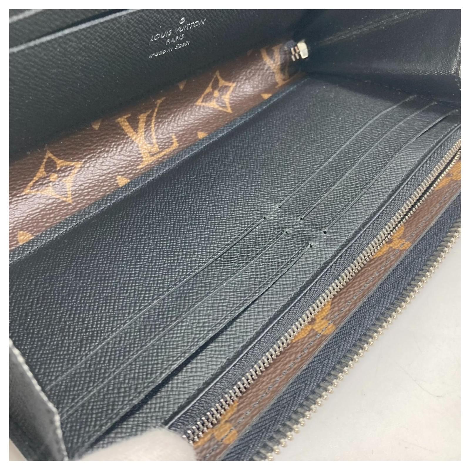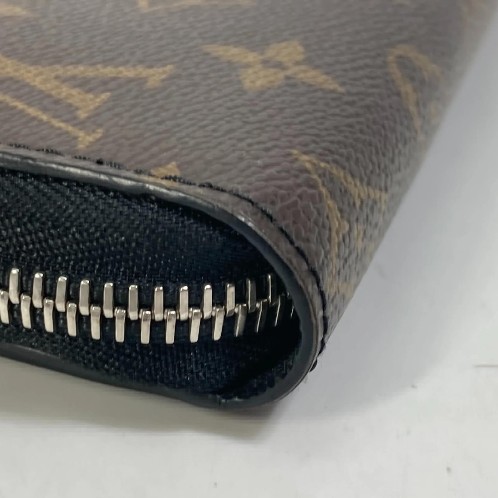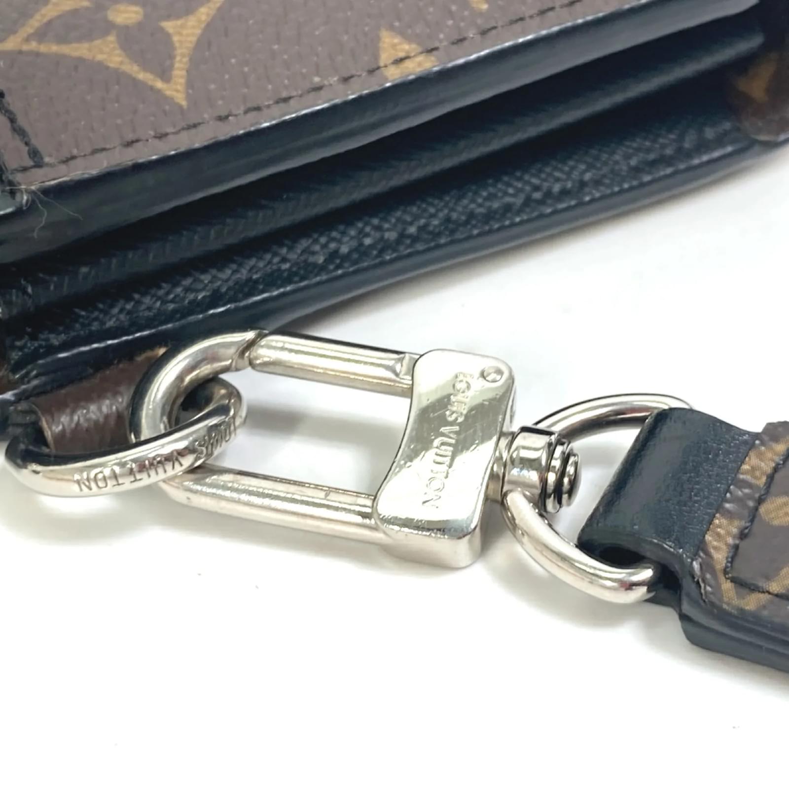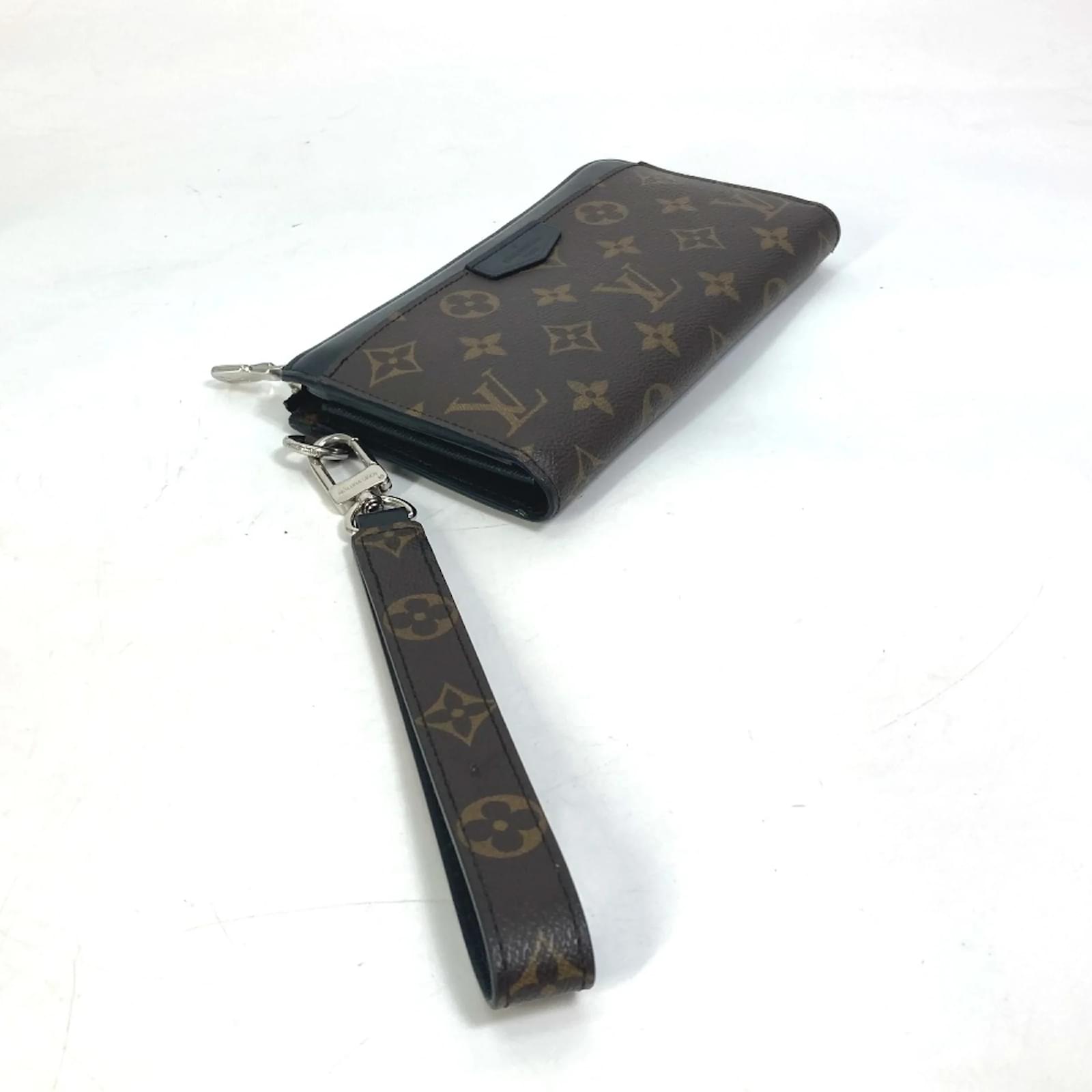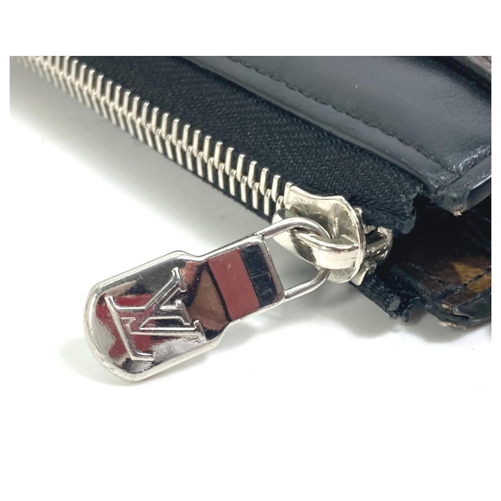 This Louis Vuitton long wallet, model M69407, features a bi-fold design in a brown and black color scheme. Made from durable materials, it measures W19.5cm x H10.5cm (W7.7 x H4.1 inches) and is lightweight. The wallet is in very good used condition, showing only a few traces of usage, with some scratches and dirt visible. It includes a strap for added convenience and comes with the serial number CA3240.