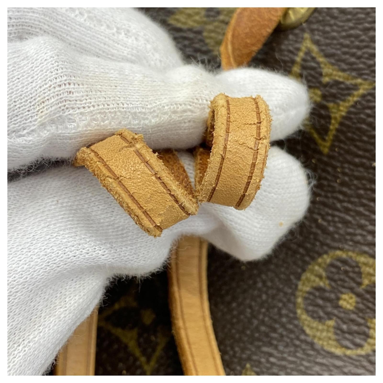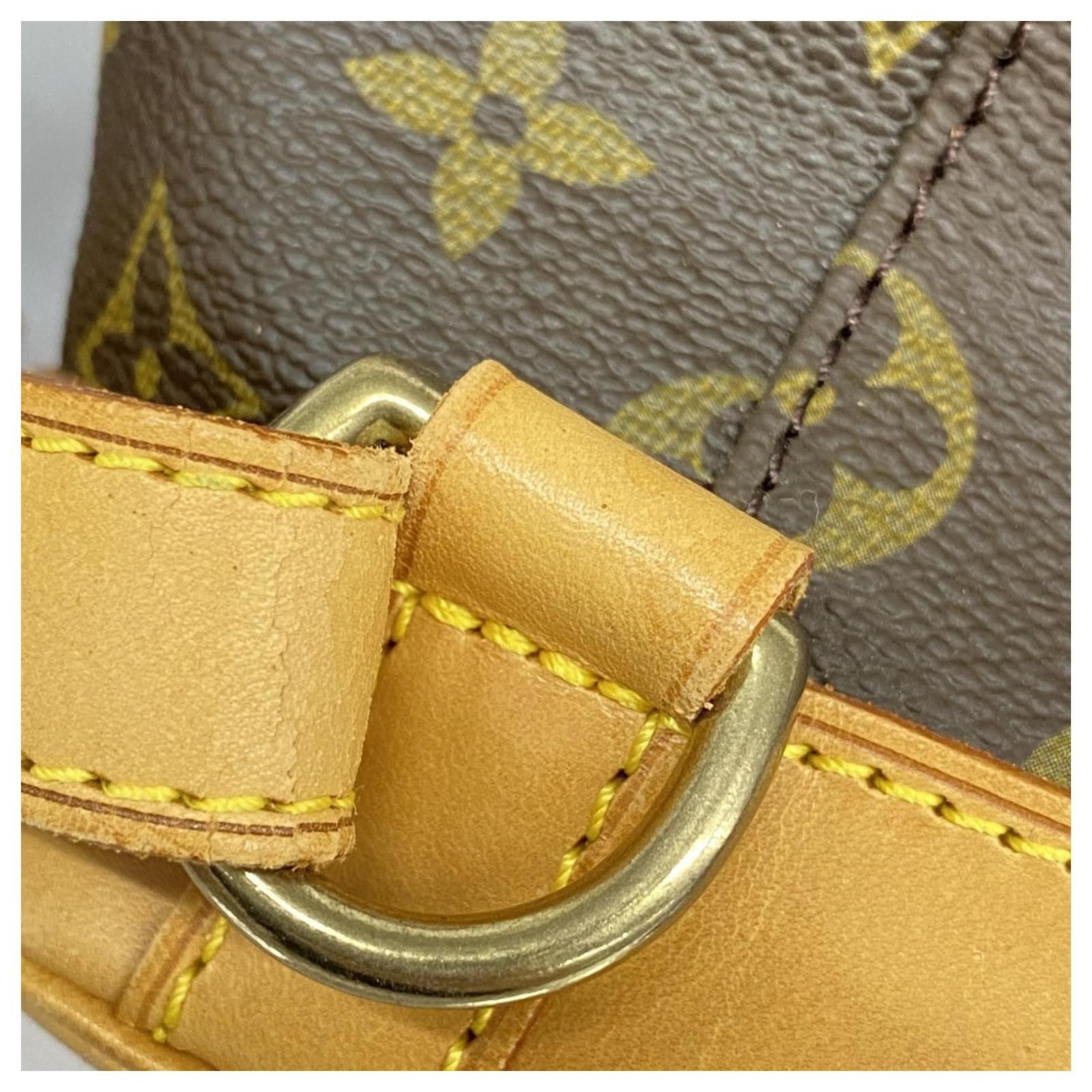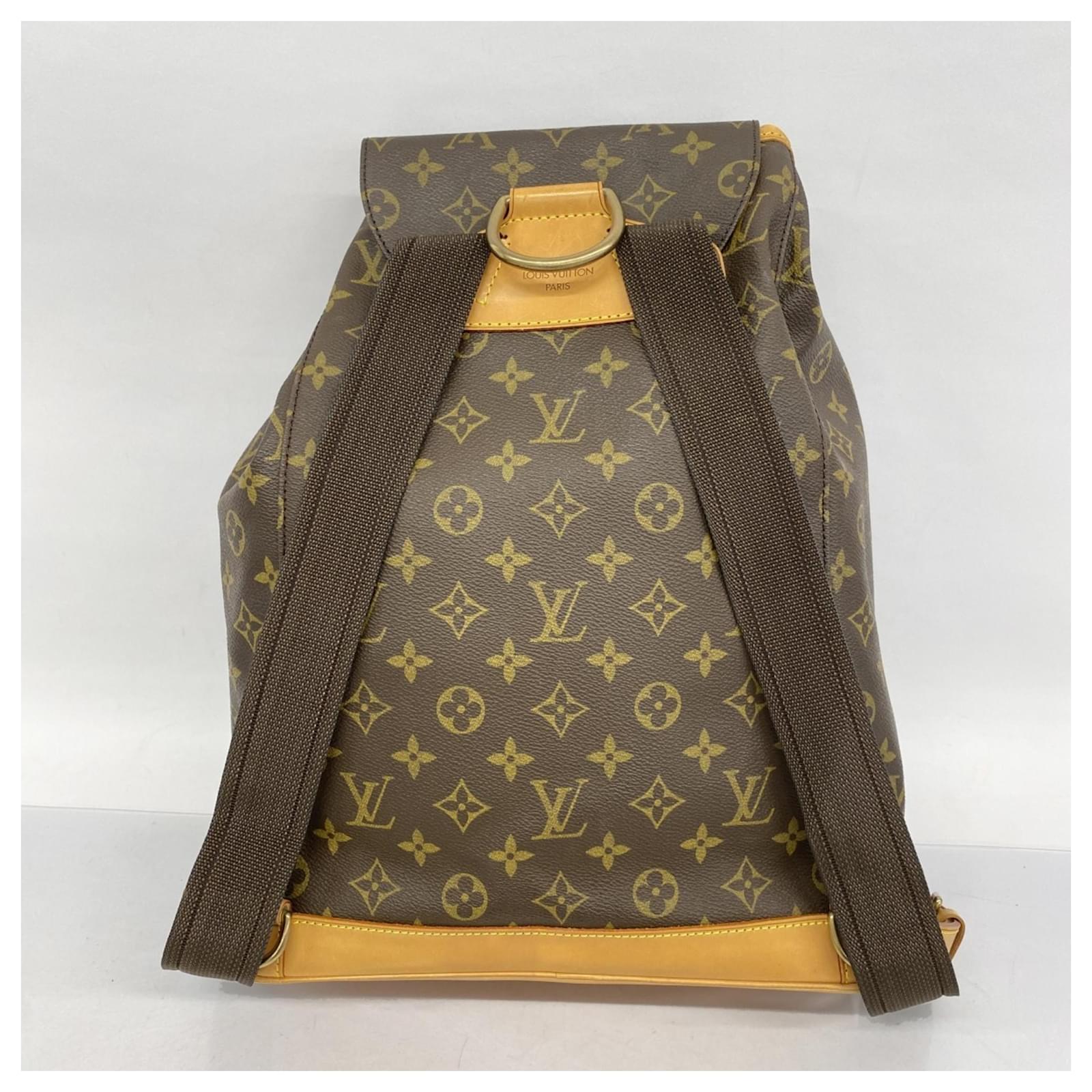 This Louis Vuitton backpack, model Monogram Montsouris M51135, is designed in a classic brown color, suitable for women. It is categorized as a daypack and is in used condition, rated as Rank AB. The backpack shows slight traces of usage, including minor scratches and dirt, but remains in generally good condition. Potential buyers are encouraged to review the provided images for a detailed view of the item’s condition. Please note that no additional accessories are included with this backpack.