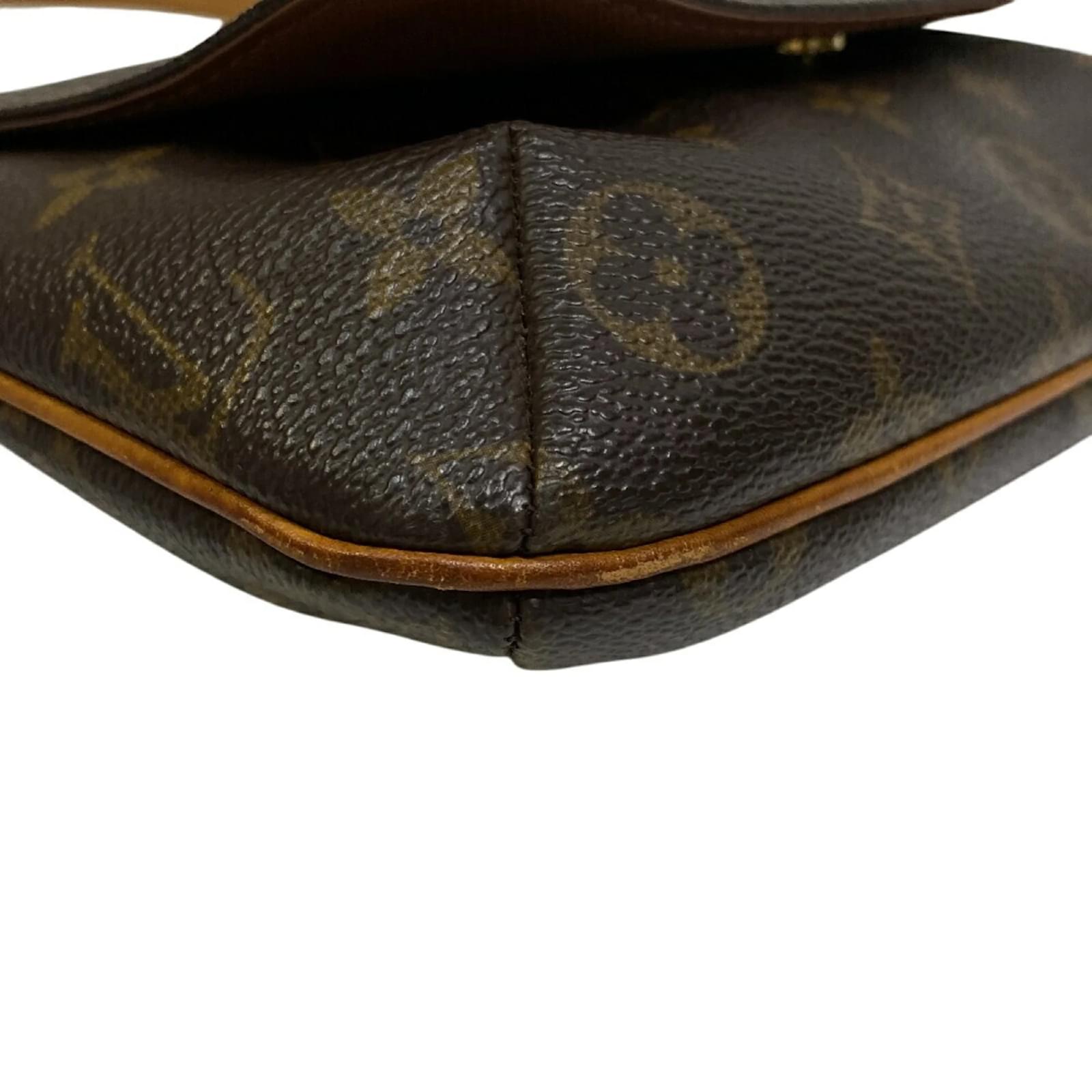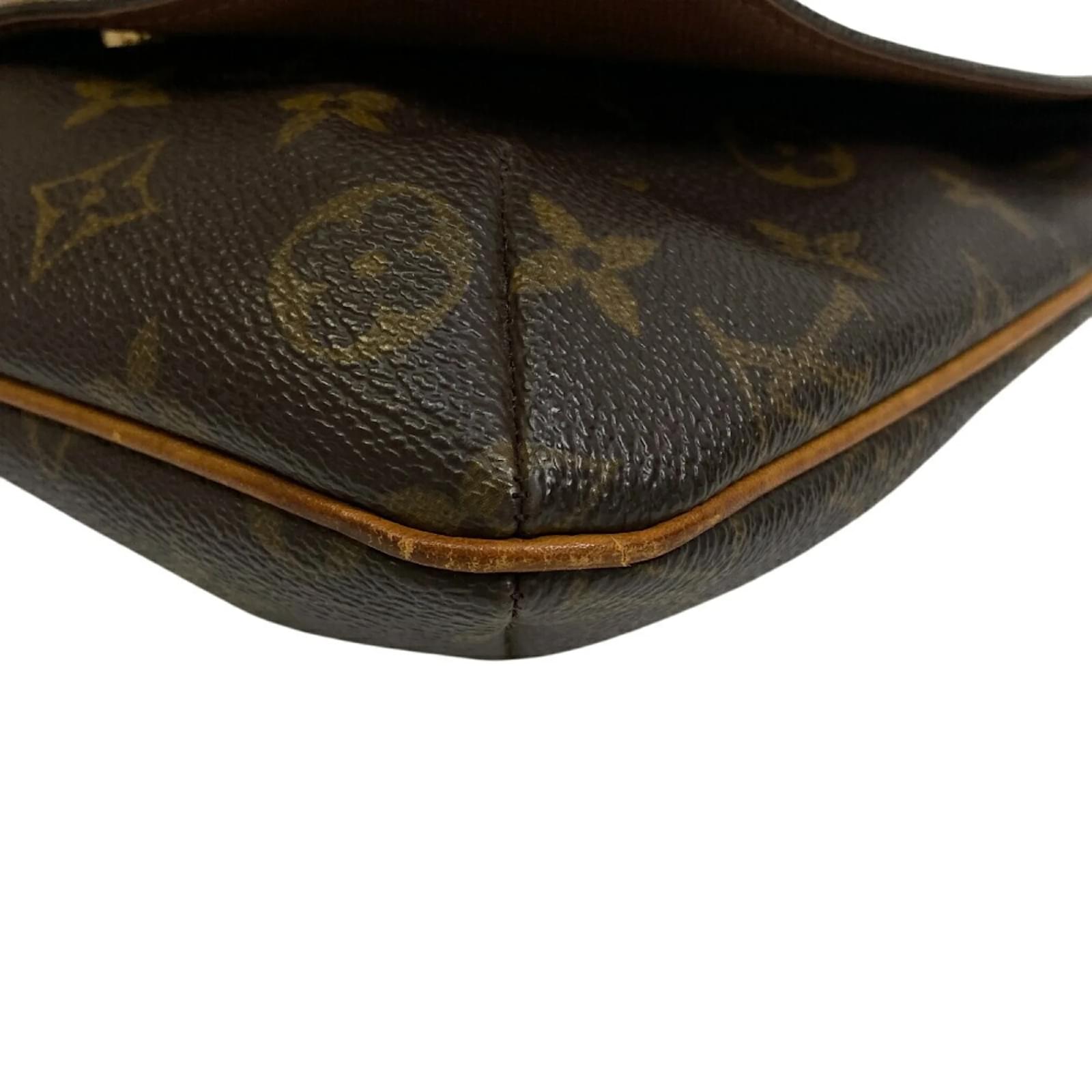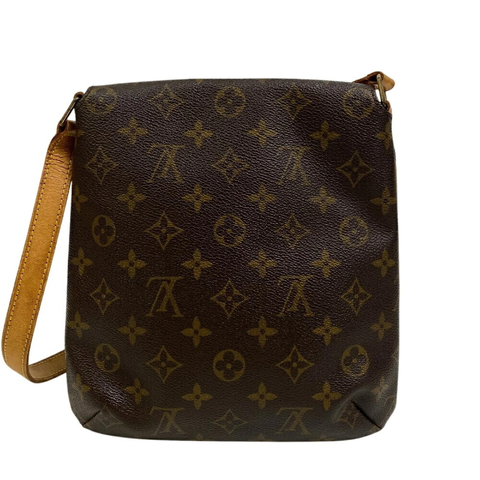 This Louis Vuitton Musette Salsa shoulder bag, model code M51258, is crafted from brown leather and features the iconic Monogram design. Measuring 24.5cm in height, 23cm in width, and 5cm in depth, it comes with a strap length of 70cm for comfortable wear. \n\nThe bag is classified as used and is in good condition, with a seller ranking of Rank B. It shows moderate traces of use, including some creases, a crack and tear on the strap, corner peelings, and hardware haze. Potential buyers are encouraged to review the images for a detailed view of the item’s condition. \n\nIncluded with the bag are accessories, the specifics of which can also be seen in the provided images. The serial number for this item is CA1928.