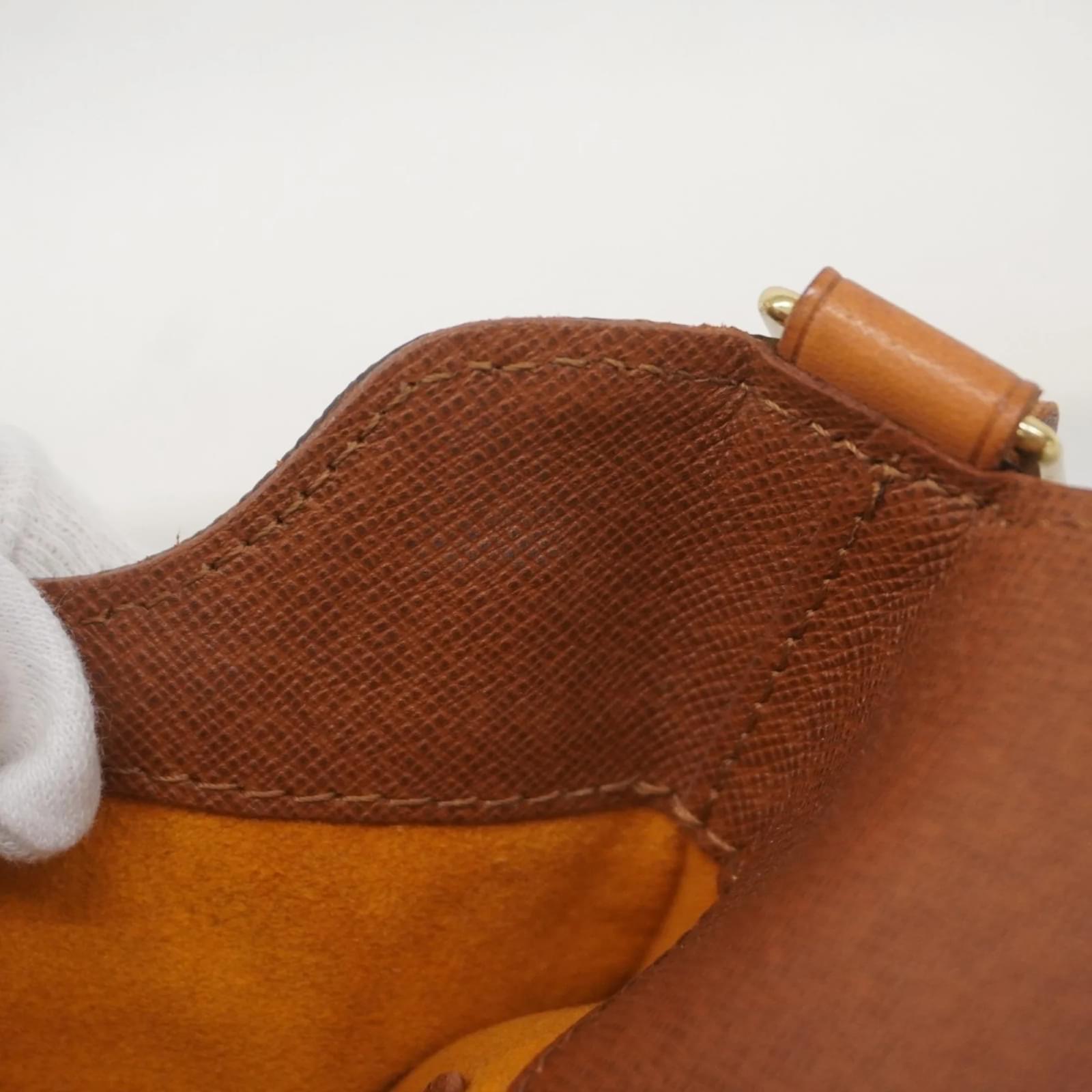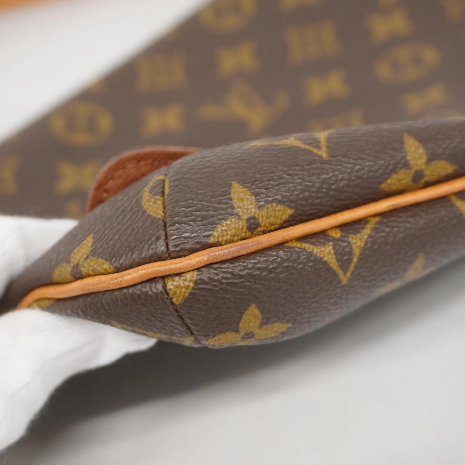 This Louis Vuitton shoulder bag, model Monogram Musette Tango M51257, features a classic brown design suitable for women. The bag is in used condition, classified as Rank AB, indicating it shows slight traces of usage, including minor scratches and dirt, but is generally well-maintained. It comes with a dust bag for protection. Potential buyers are encouraged to review the provided images for a detailed view of the item’s condition and included accessories.