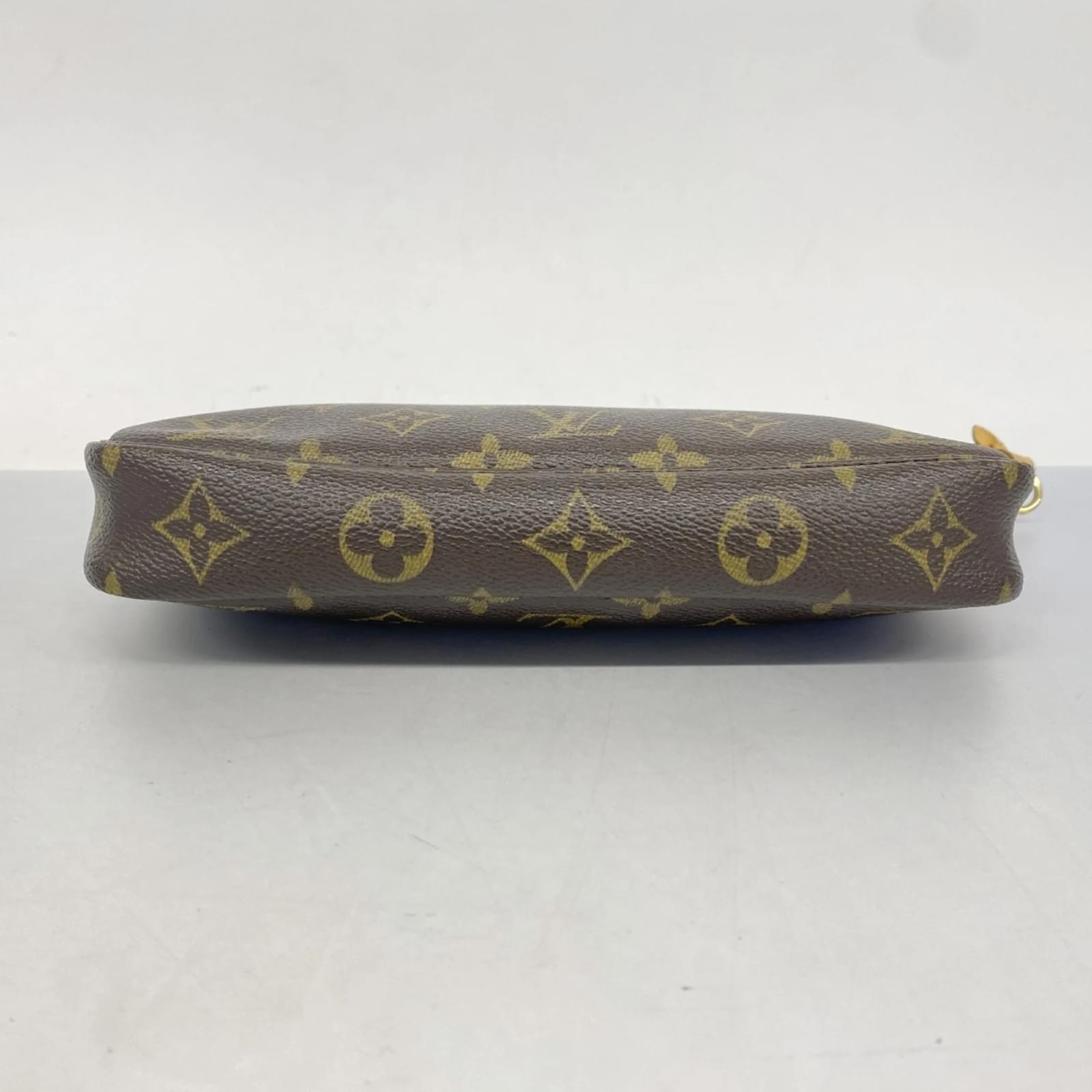 This Louis Vuitton pouch, known as the Monogram Pochette Accessoires M51980, features a classic brown design. It is categorized as a women’s accessory and is in used but good condition, with slight traces of usage, scratches, and dirt. The seller ranks it as Rank AB, indicating it has visible signs of wear but remains generally in good shape. Potential buyers are encouraged to review the provided images for a clear understanding of the item’s condition. No additional accessories are included with this pouch.