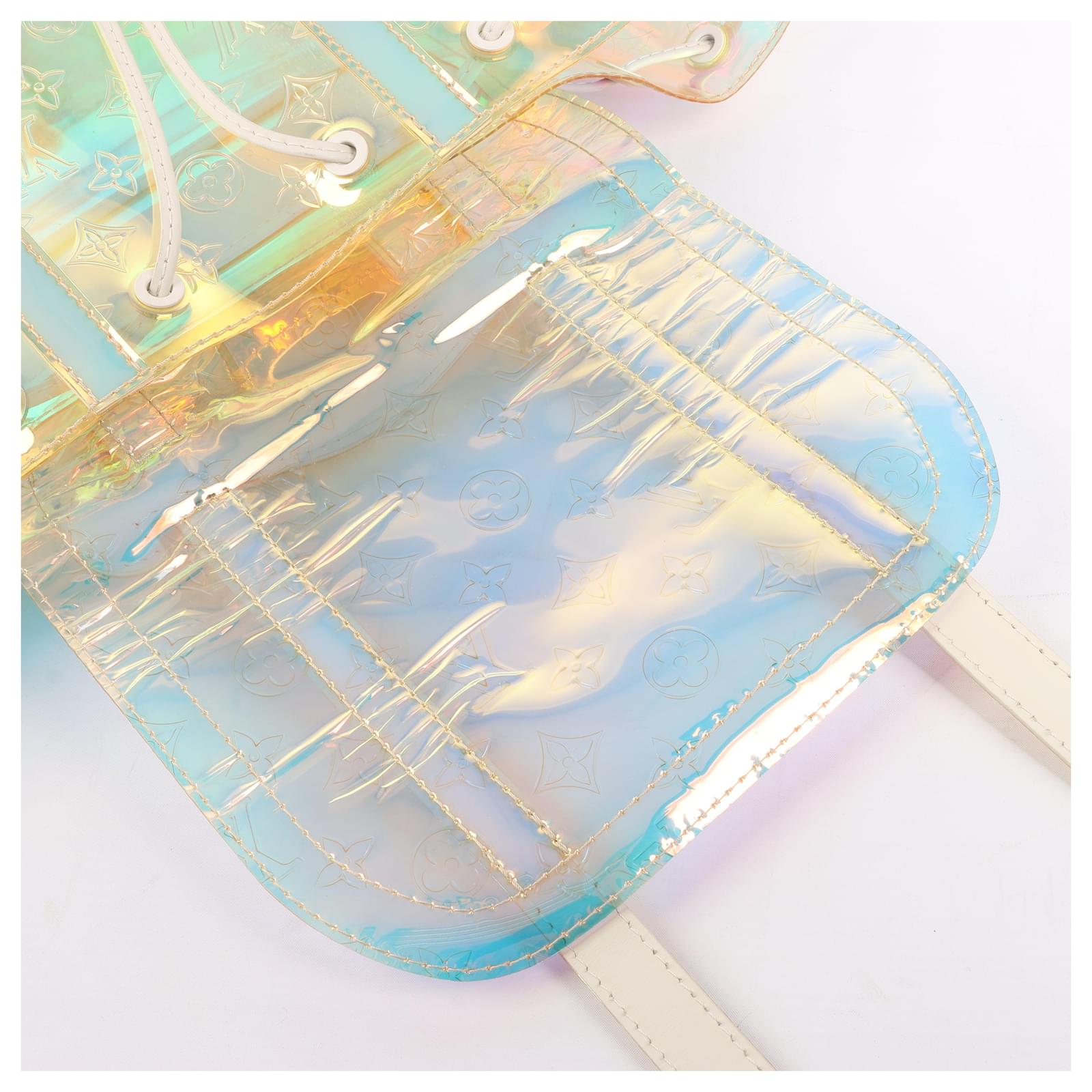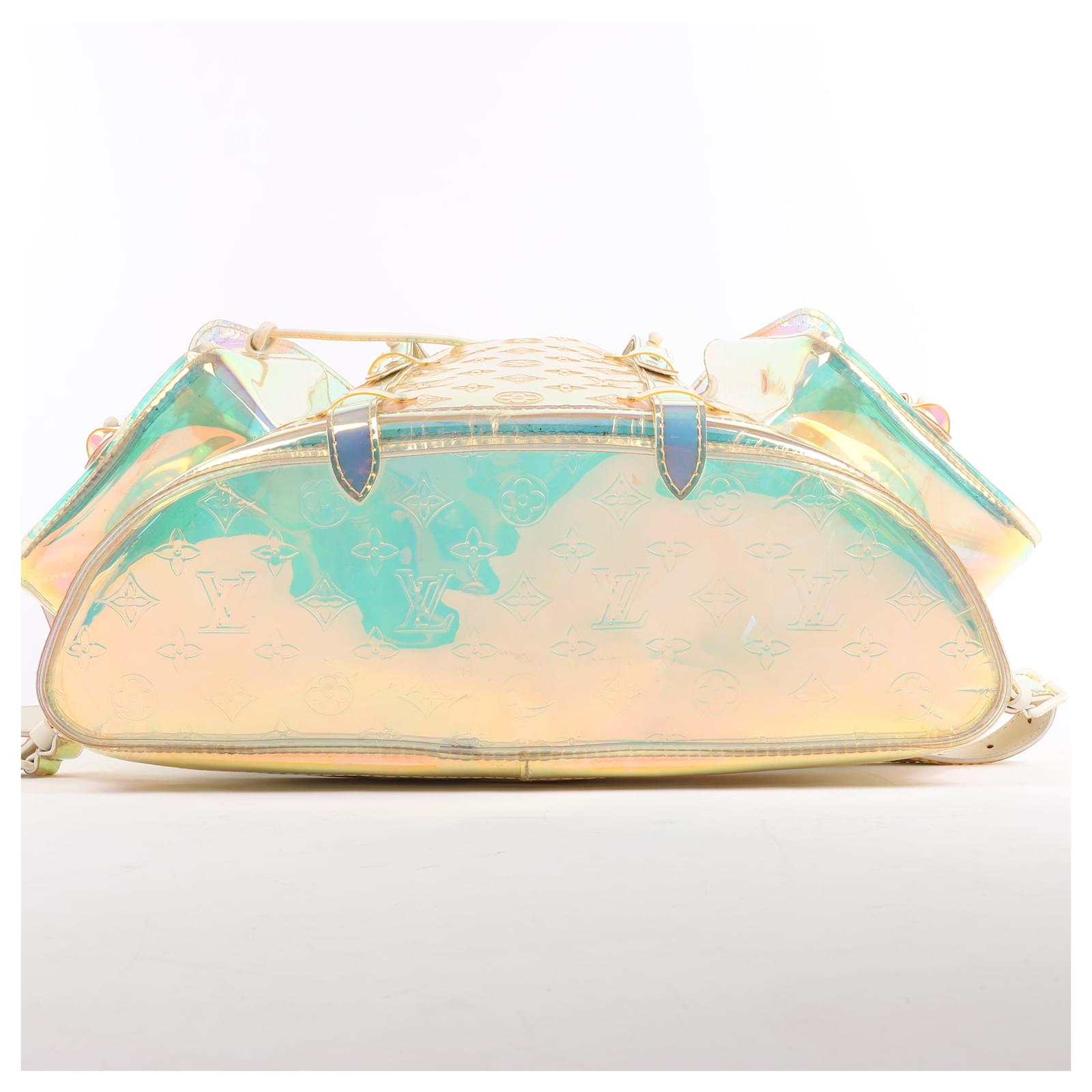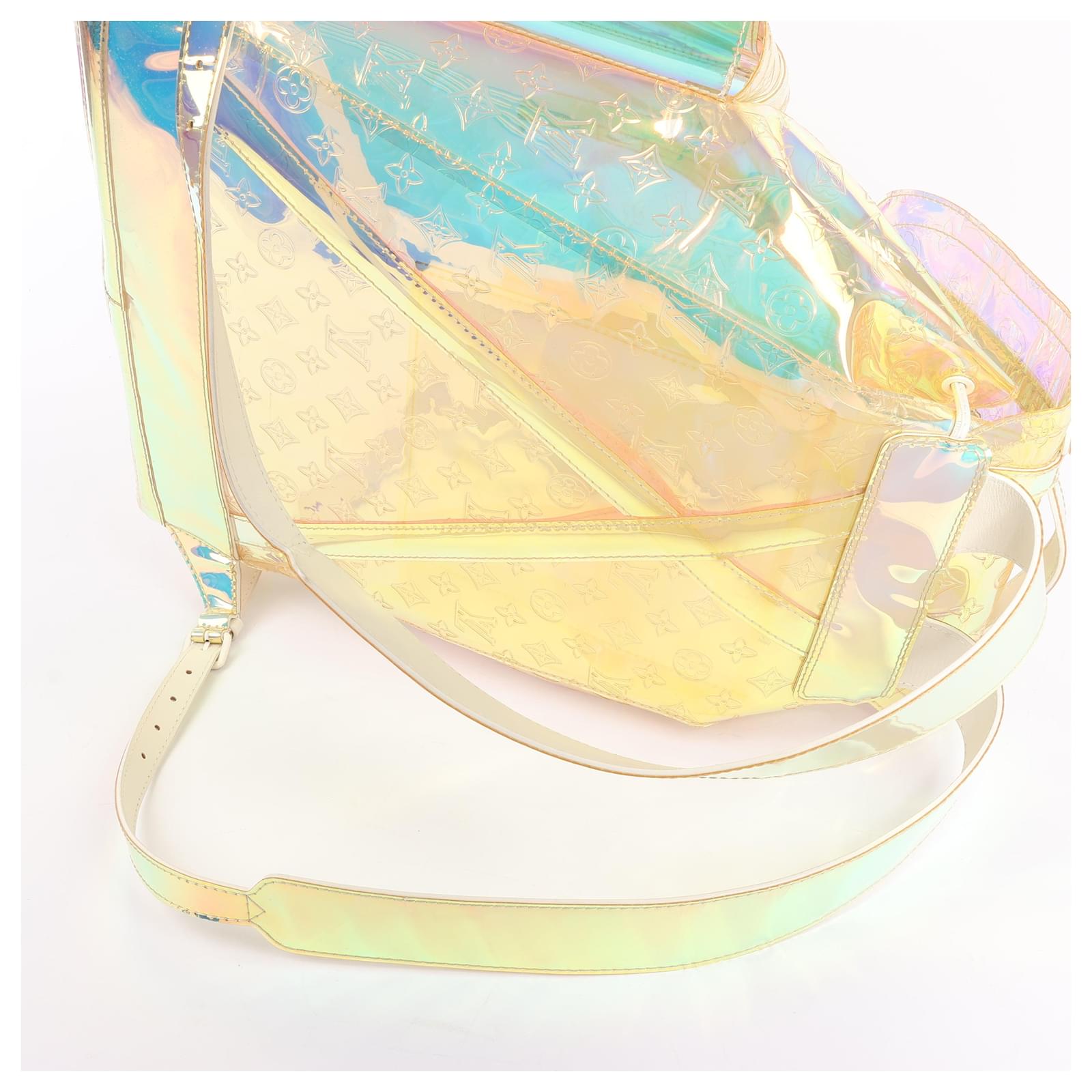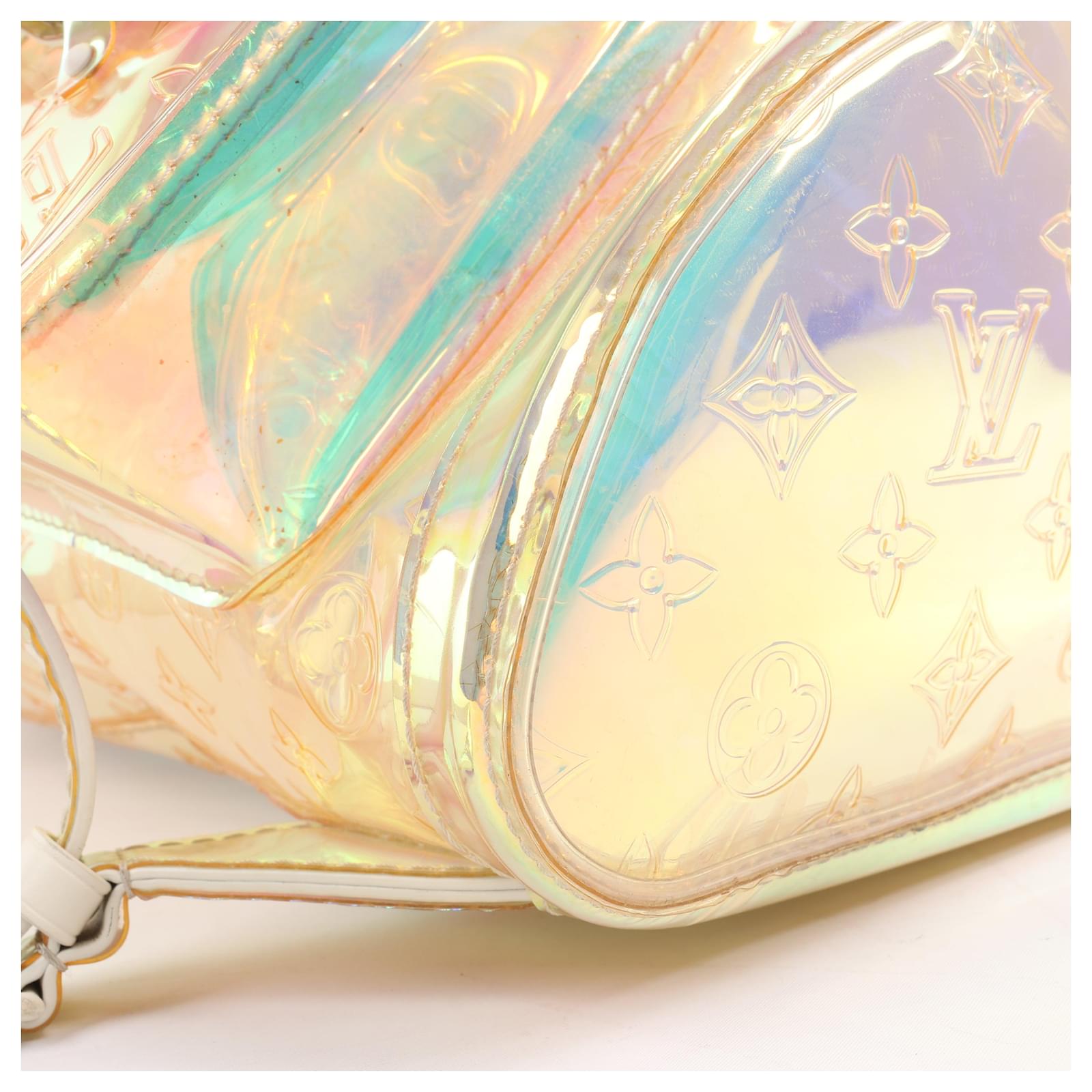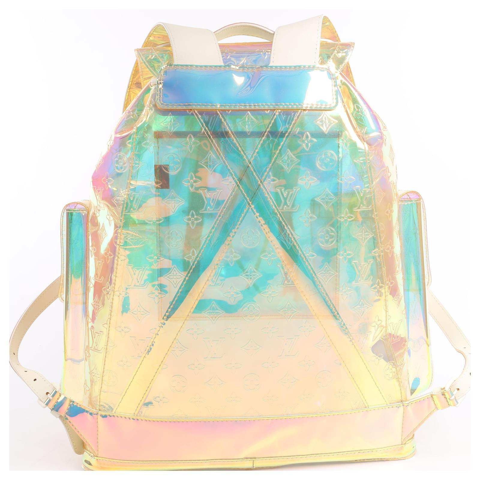 Louis Vuitton Monogram Prism Christopher GM Backpack in iridescent PVC with\niconic monogram embossing. A futuristic, statement-making design combining\nluxury and innovation with spacious, functional style. Model M44766.\nBrand: Louis Vuitton\nModel: Christopher\nSize: GM \nWidth: 39 cm\nHeight: 48.5 cm\nExterior Condition: Excellent\nInterior Condition: Excellent\nCondition Details: The exterior is beautiful in excellent condition except some\ndust, creases and scratches. The straps are clean and firm with light crease.\nThe hardware remains great condition. The interior in excellent condition. Date\ncode: RI2189, there was an RFID response.\nColour: Multicolor\nInterior Colour: Multicolor\nHardware Colour: White\nMaterial: Plastic\nComes With: Entrupy authentication certificate