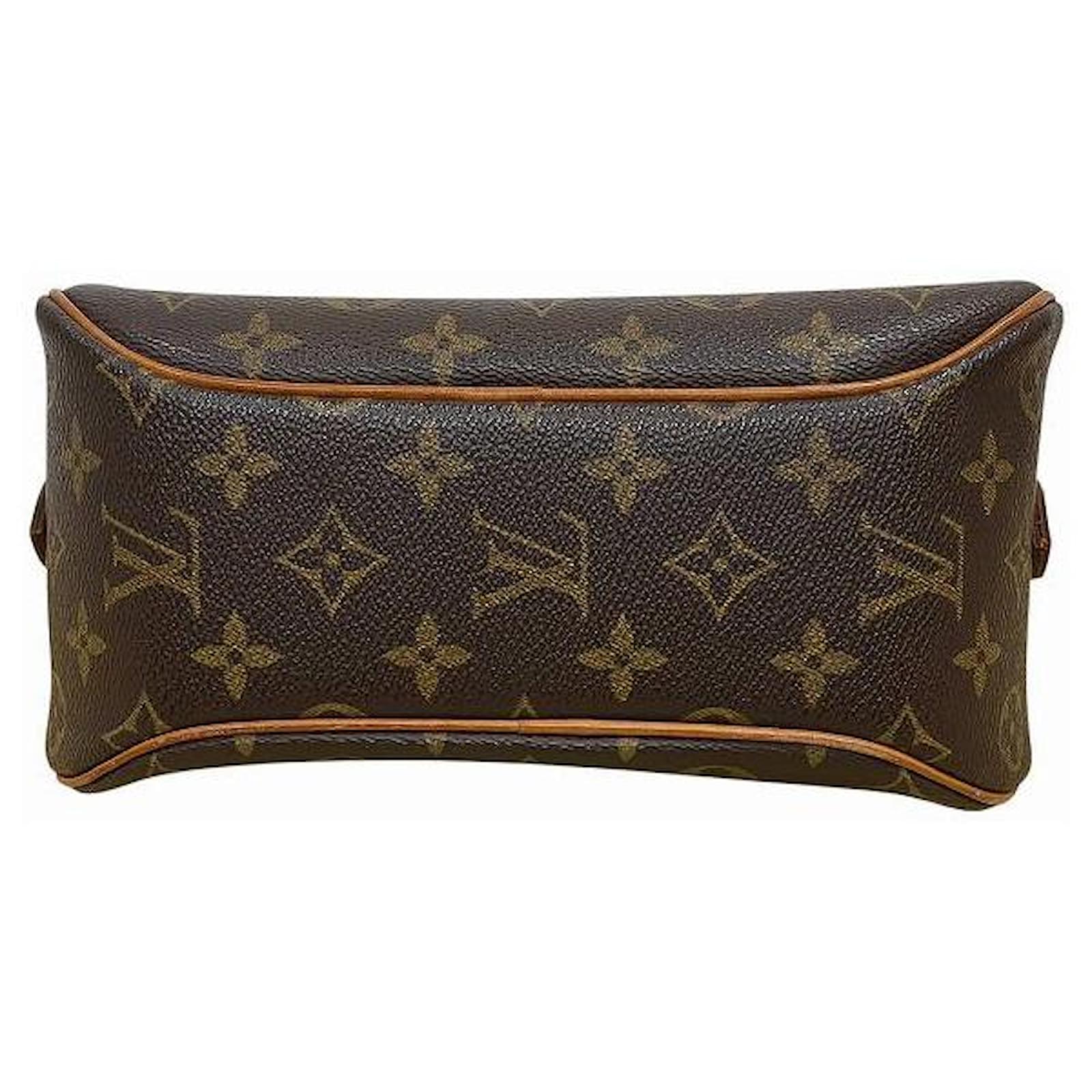– General information -\nBrand : Louis VuittonItem name : Louis Vuitton Monogram Shoulder BagModel number : M51221 – Design -Type : Shoulder BagMaterial : CanvasColor : BrownGender : Female- Size -Size : Length : 23Depth : 10Height : 17Shoulder strap : 120Item Material : Monogram CanvasItem Series : MonogramItem Color : BrownClosure Type : ZipperInterior : Main compartment x 1, Inner pocket x 1Exterior : Pocket x 1, Zip closure x 1- Inventory -Serial Number : SKU : 120210016146000A0025838561- Included Items -Accessories : null*Before purchasing, please refer to the images of the accessories included with the item.- Condition -Condition : Very Good ConditionRank : Used A Used condition with some scratches and stains.Condition Notice : Before purchasing, please refer to the images for the exact condition of the item. Measurments: width: 100 mm length: 230 mm height: 170 mm strap length: 1200 mm \n Product Id: 524477 \n