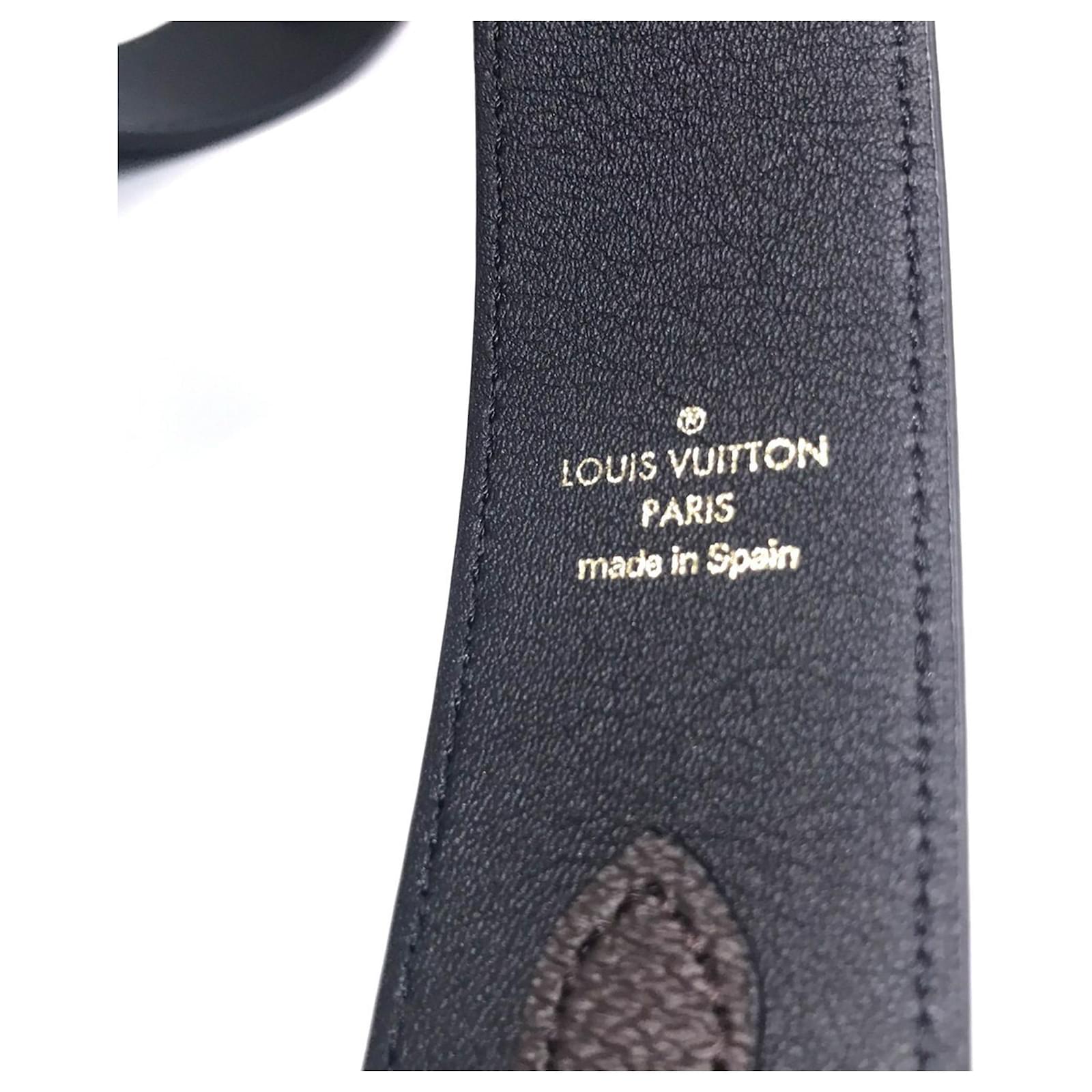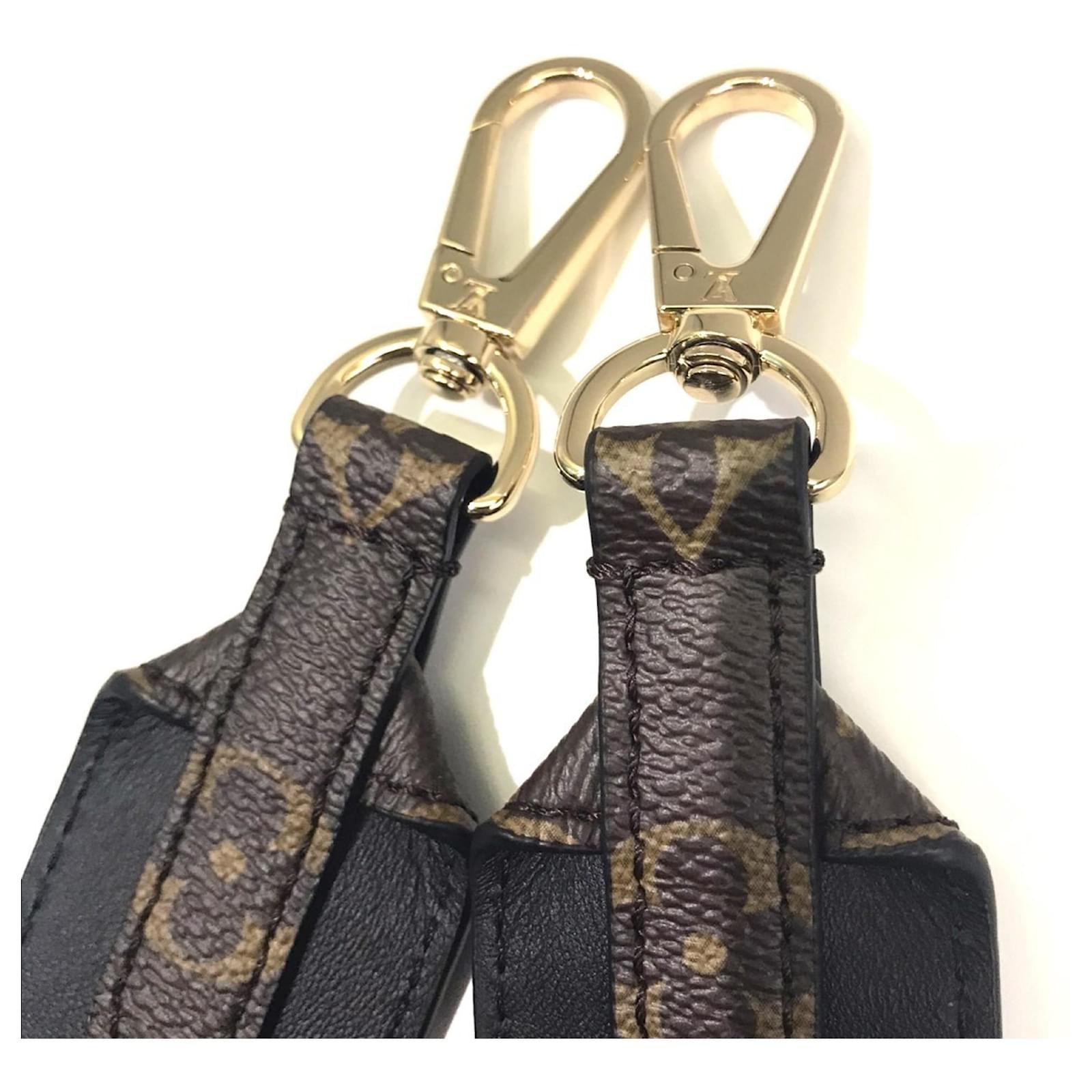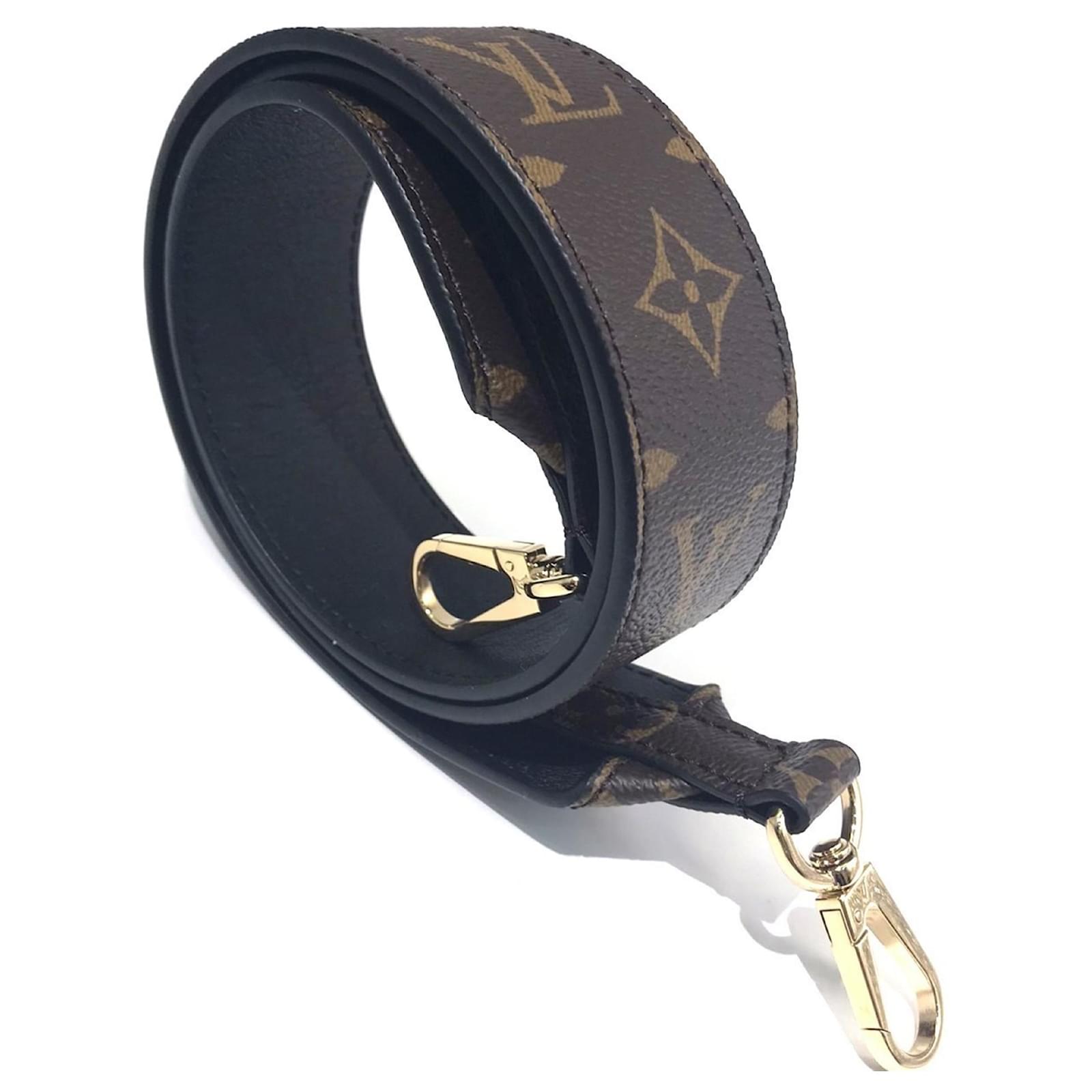 This Louis Vuitton shoulder strap features a classic monogram design crafted from leather. With a handle/strap length of 98cm (38.58 inches), it is designed for versatility and style. The item is part of the Monogram line and is identified by the model code J02465. \n\nIn terms of condition, this strap is classified as used but in very good condition, with a seller ranking of Rank A. There are a few traces of usage, including some scratches and dirt, but overall it remains in good shape. \n\nIncluded with the strap are a box and a dust bag, providing additional value. Potential buyers are encouraged to review the images for a clear understanding of the item’s condition and included accessories.