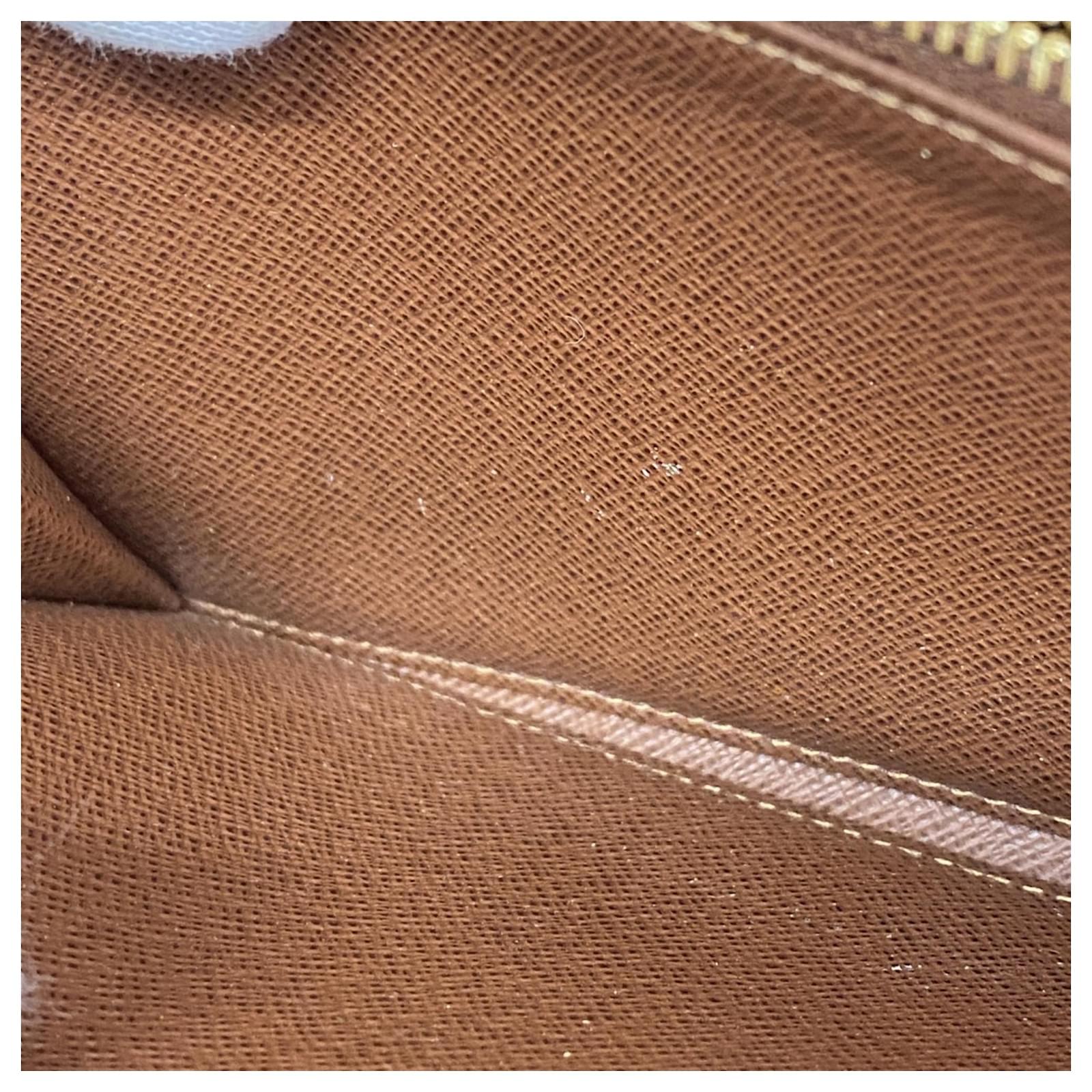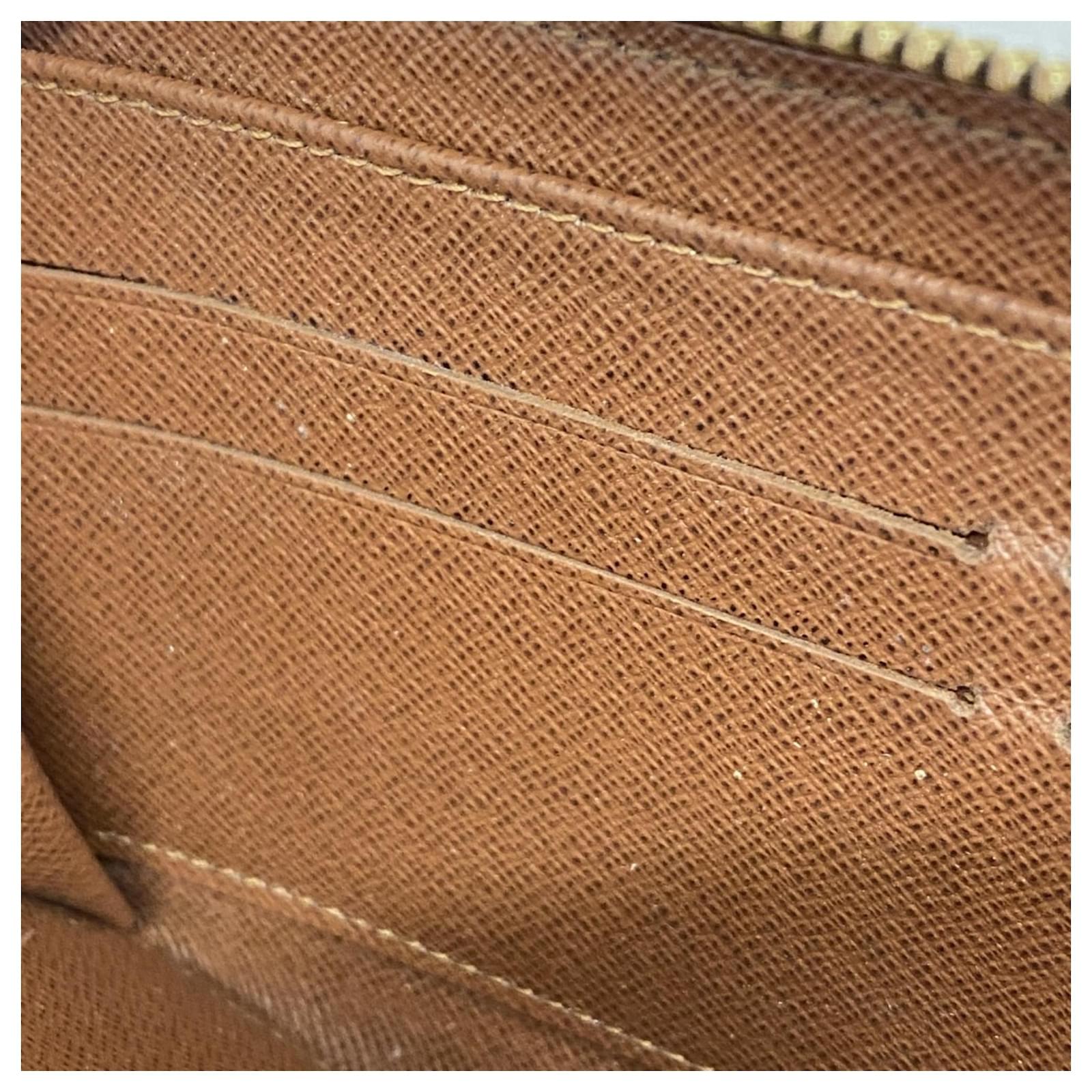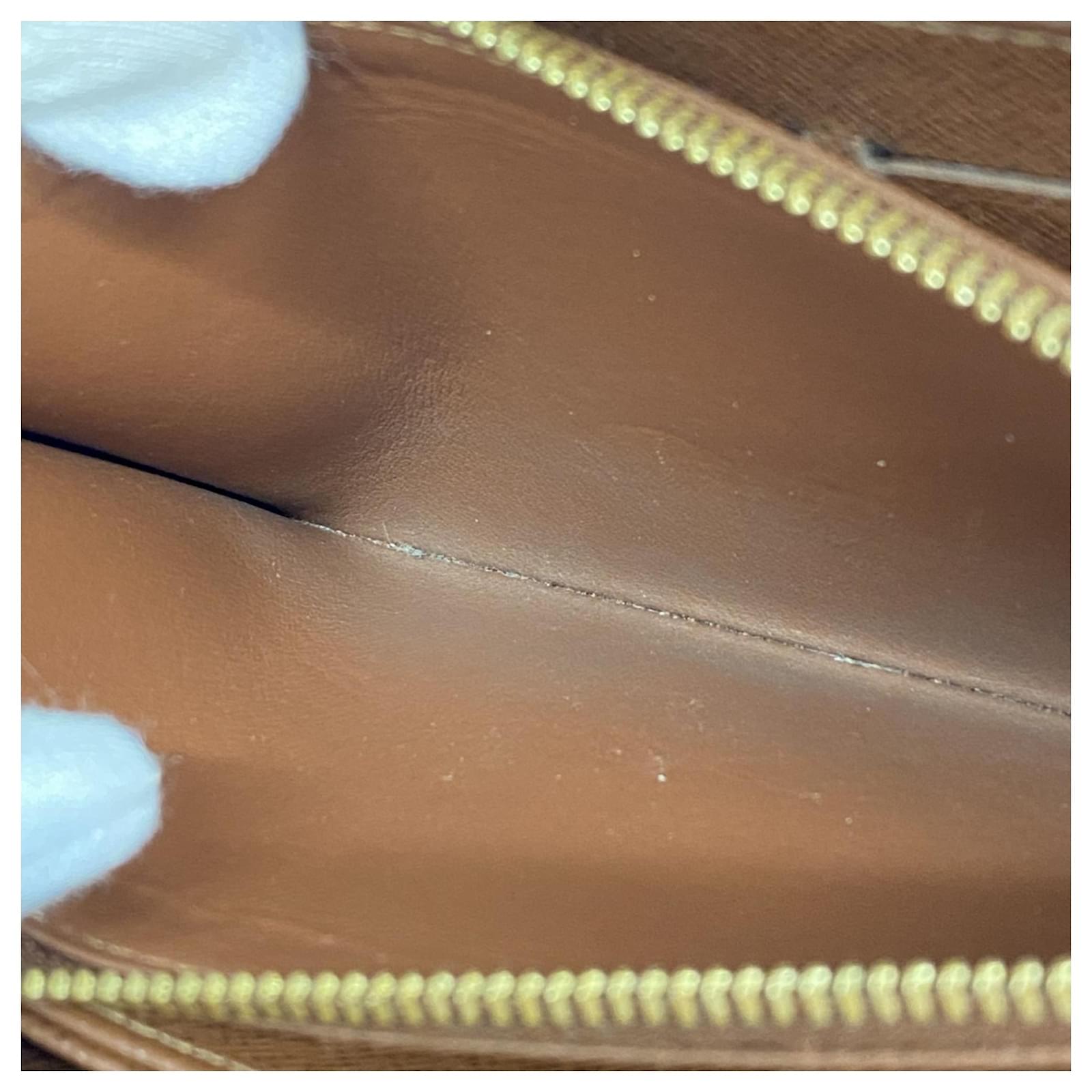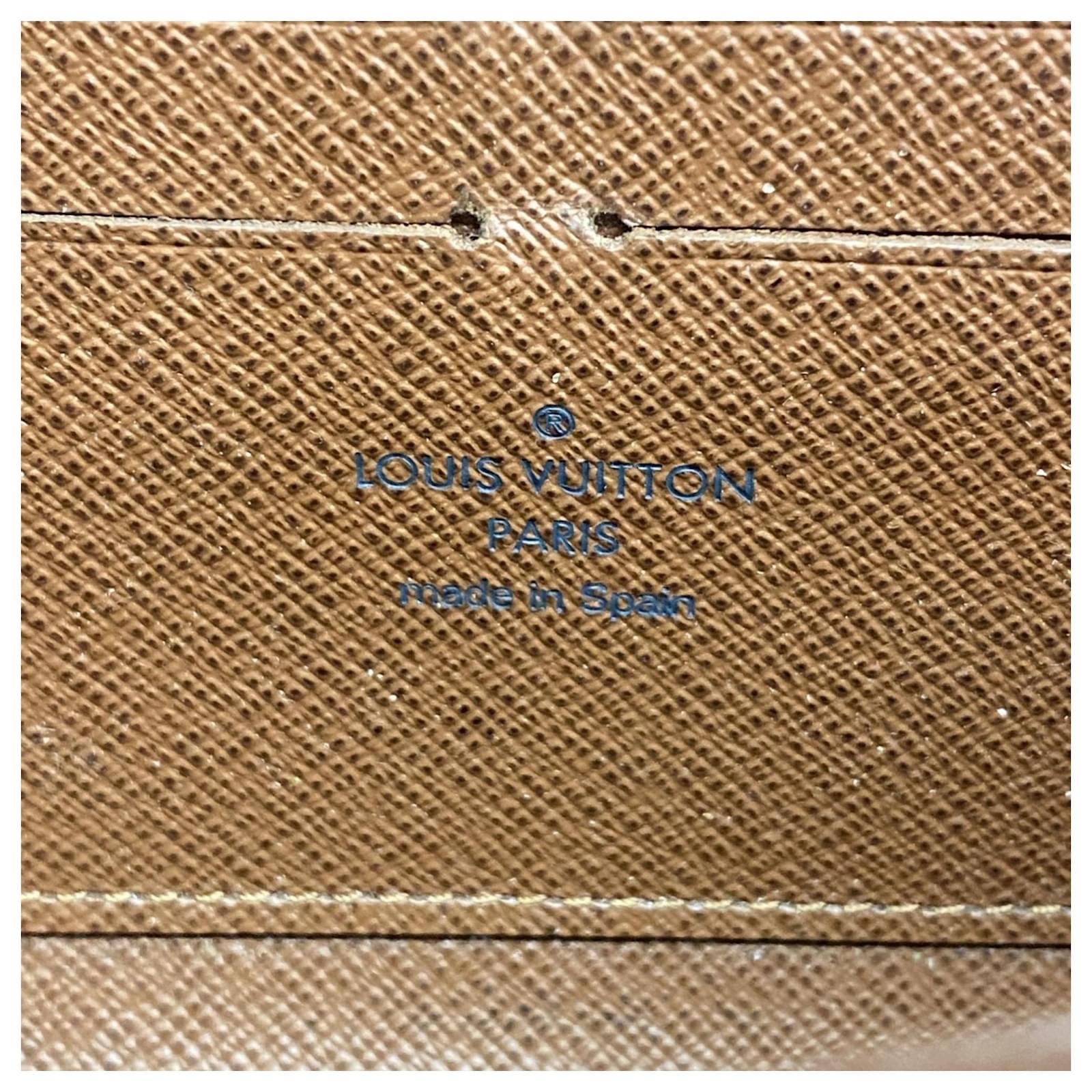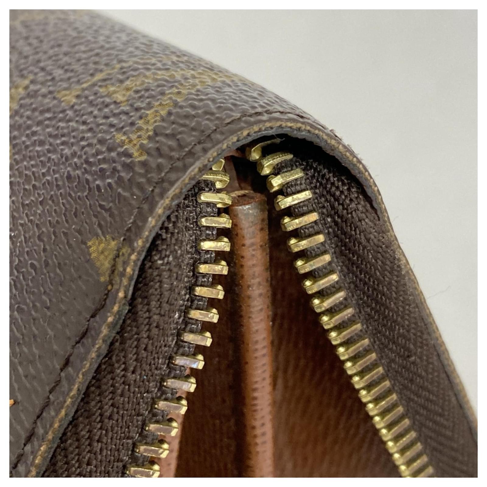 This Louis Vuitton long wallet, model M60017, features a classic bi-fold design in a rich brown color. It is suitable for both men and women, showcasing the iconic monogram pattern. The wallet is in good used condition, classified as Rank AB, with slight traces of usage, including minor scratches and dirt. Potential buyers are encouraged to review the provided images for a detailed view of the item’s condition. Please note that no additional accessories are included with this wallet.