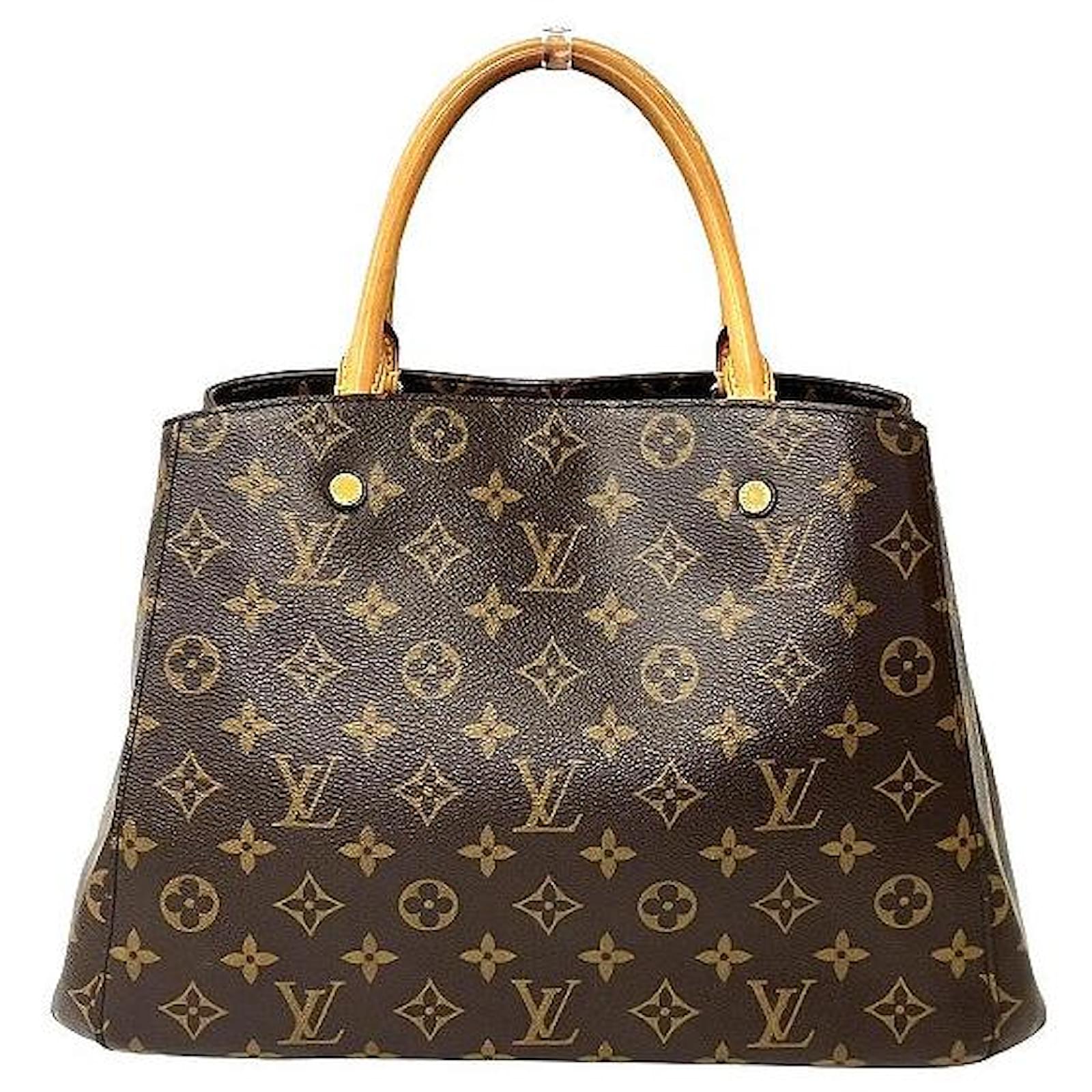 – General information -\nBrand : Louis VuittonItem name : Louis Vuitton Montaigne Monogram 2way bagModel number : M41056 – Design -Type : HandbagMaterial : CanvasColor : BrownGender : Female- Size -Size : Length : 33Depth : 23Height : 20Handle Drop : 12Shoulder strap : 80Item Material : Monogram CanvasItem Series : Montagne MMItem Color : BrownClosure Type : ClaspInterior : Main compartment x 1, Zipper pocket x 1, Slip pocket x 2- Inventory -Serial Number : SKU : 120210037962000A0025838168- Included Items -Accessories : null*Before purchasing, please refer to the images of the accessories included with the item.- Condition -Condition : Very Good ConditionRank : Used A Used condition with some scratches and stains.Condition Notice : Before purchasing, please refer to the images for the exact condition of the item. Measurments: width: 230 mm length: 330 mm height: 200 mm strap length: 800 mm handle drop: 120 mm \n Product Id: 524486 \n