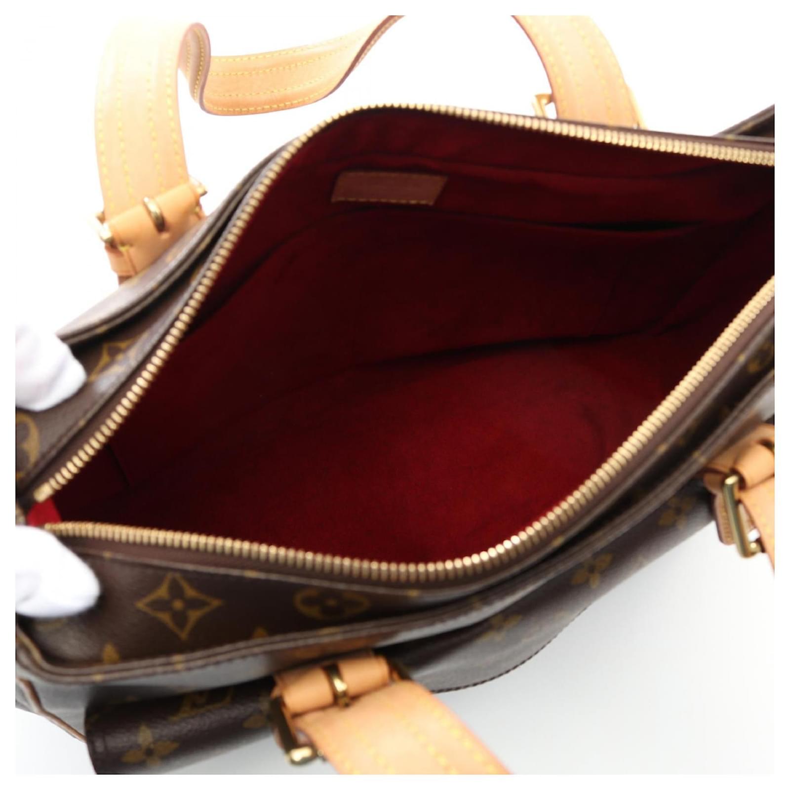 – General information -\nBrand : Louis VuittonItem name : Louis Vuitton Multiplicite Monogram HandbagModel number : M51162 – Design -Type : HandbagMaterial : CanvasColor : BrownGender : Female- Size -Size : Length : 32Depth : 15Height : 23Handle Drop : 17Item Material : PVC coated canvas, leatherItem Series : MonogramItem Color : BrownClosure Type : Open top with magnetic snapInterior : Main compartment x 1, Inner pocket x 2Exterior : Front pocket x 2, Side pocket x 2- Inventory -Serial Number : MB0025SKU : 120210037485000A0025849570- Included Items -Accessories : null*Before purchasing, please refer to the images of the accessories included with the item.- Condition -Condition : Good ConditionRank : Used A Used condition with obviously scratches and stains.Condition Notice : Before purchasing, please refer to the images for the exact condition of the item. Measurments: width: 150 mm length: 320 mm height: 230 mm handle drop: 170 mm \n Product Id: 526284 \n