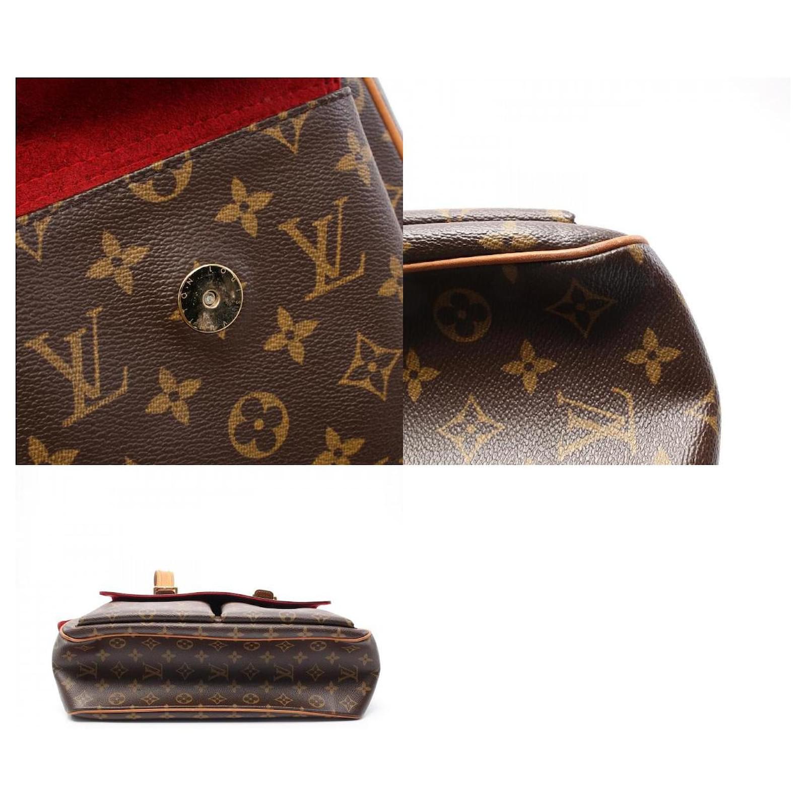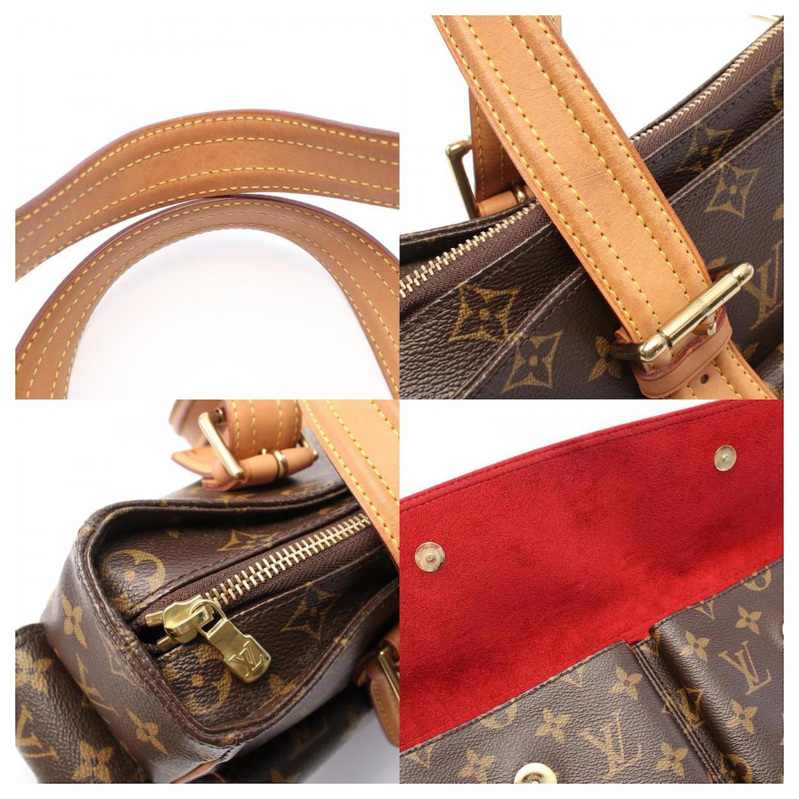 – General information -\nBrand : Louis VuittonItem name : Louis Vuitton Multiplicite Monogram HandbagModel number : M51162 – Design -Type : HandbagMaterial : CanvasColor : BrownGender : Female- Size -Size : Length : 36.5Depth : 11.5Height : 27Shoulder strap : 57Item Material : PVC coated canvas, leatherItem Series : MonogramItem Color : BrownInterior : Main compartment x 1, Inner pocket x 2Exterior : Exterior pocket x 2- Inventory -Serial Number : MB1024SKU : 120210026775000A0025849592- Included Items -Accessories : null*Before purchasing, please refer to the images of the accessories included with the item.- Condition -Condition : Good ConditionRank : Used A Used condition with obviously scratches and stains.Condition Notice : Before purchasing, please refer to the images for the exact condition of the item. Measurments: width: 115 mm length: 365 mm height: 270 mm strap length: 570 mm \n Product Id: 526275 \n