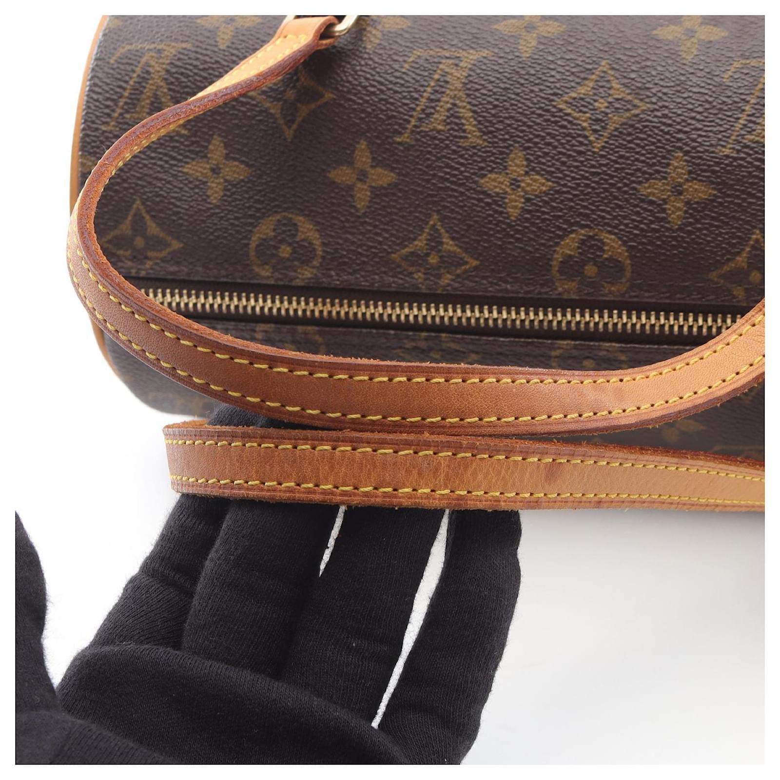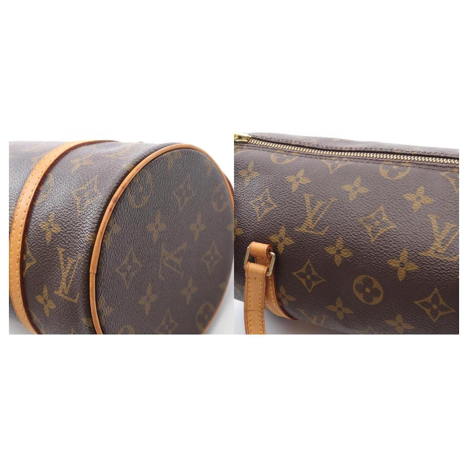 Brand Name: Louis Vuitton; Condition: Good; Category: Bag; SubCategory: Handbag; Product Name: Louis Vuitton Papillon 26 Handbag Monogram Brown; Model Number: M51386; Style: Ladies; Height (cm): 13; Width (cm): 13; Length (cm): 26; Color: Brown; Material: PVC coated canvas, leather; Origin: France; Measurments: width: 130 mm length: 260 mm height: 130 mm \n Product Id: 524910 \n