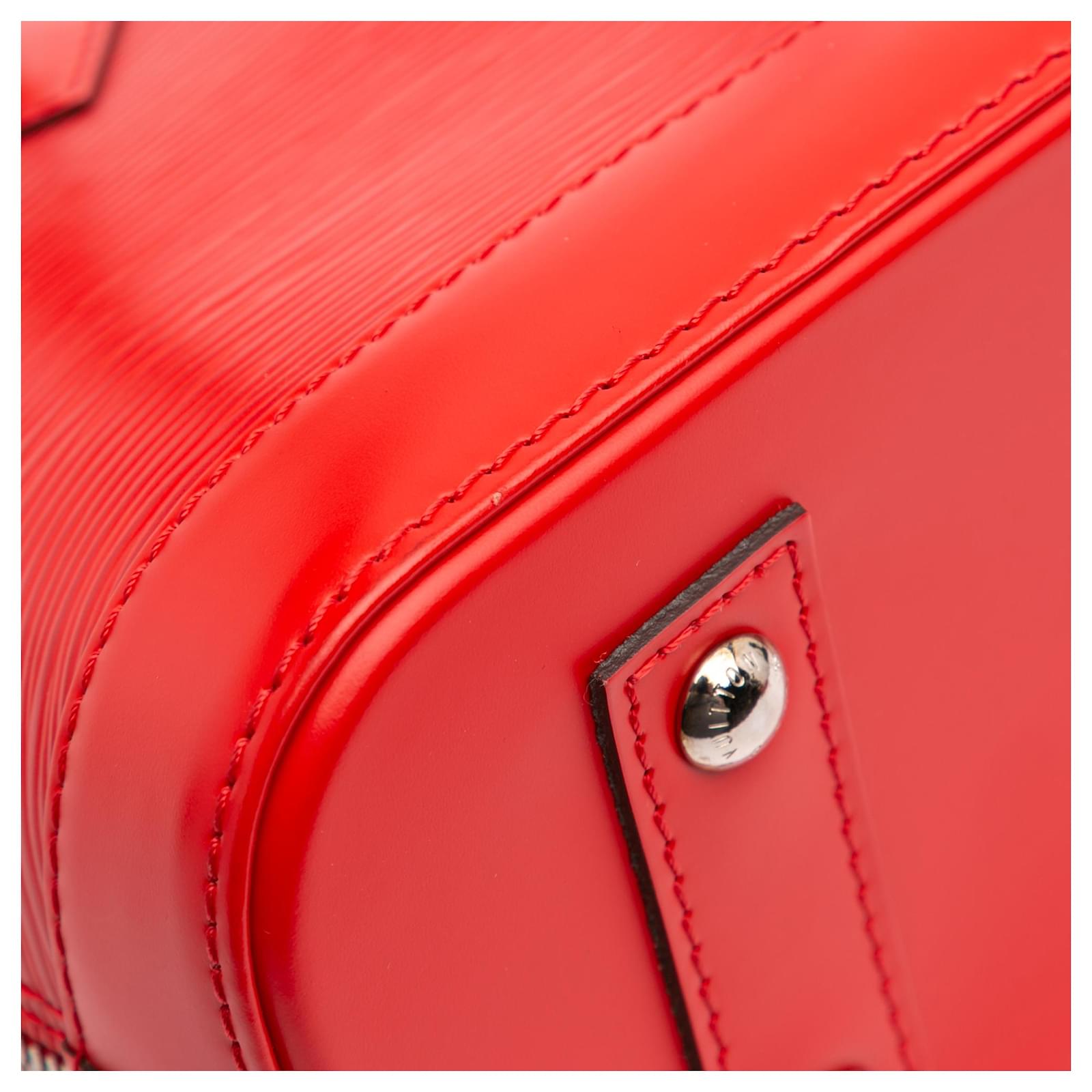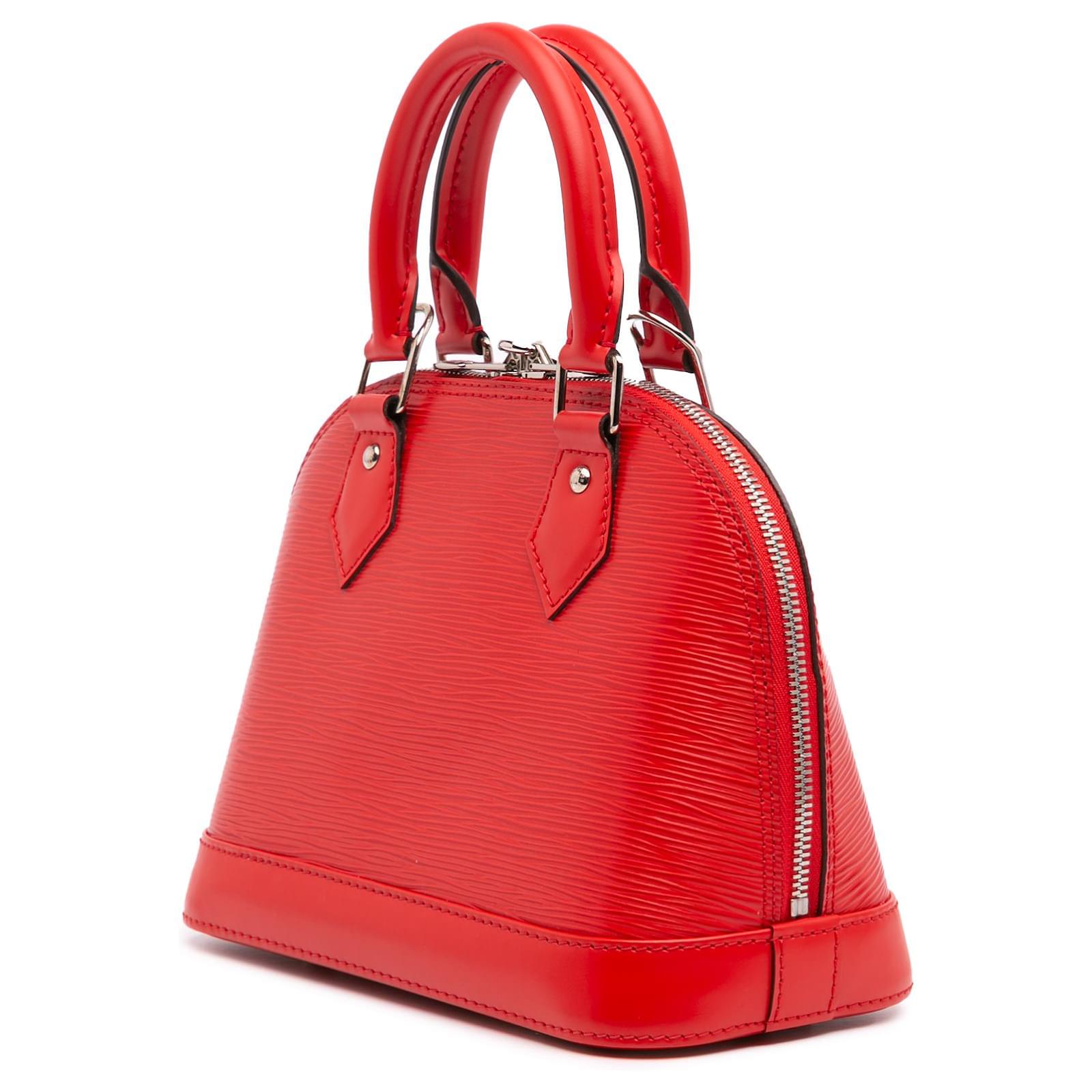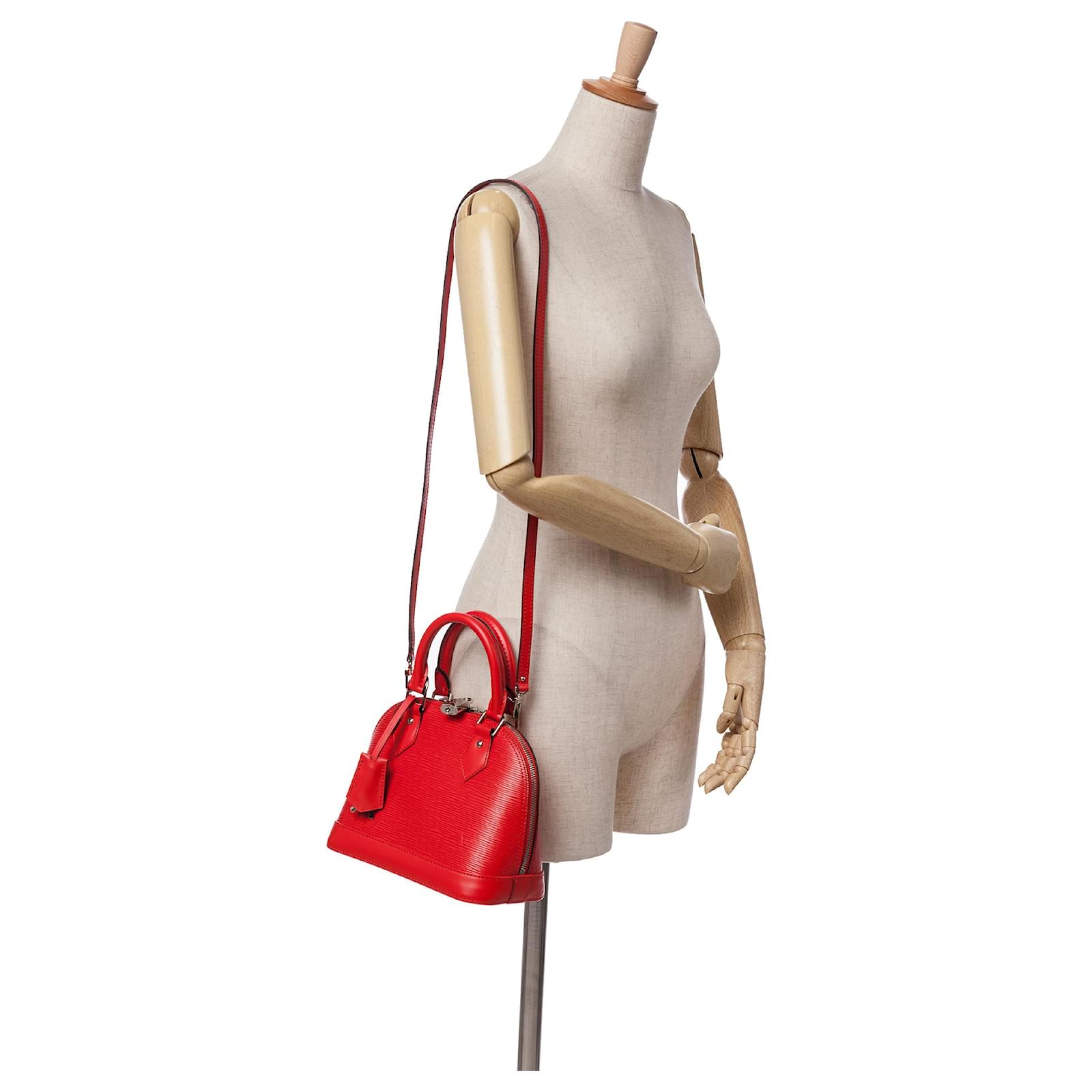 The Alma BB features an epi leather body, rolled leather top handles, a detachable flat leather strap, a top zip closure, and an interior slip pocket. It carries an AB condition rating.\r\n\r\nExterior Front Scratched. Practical Attachment Scratched. Exterior Side stained with Other. Zipper Scratched. \r\n\r\nDimensions: \r\nLength: 18 cm\r\nWidth: 24 cm\r\nDepth: 12 cm\r\nHand Drop: 10\r\nShoulder Drop: 55\r\n\r\nInclusions: No longer comes with original accessories.\r\n\r\nColor: Red\r\n\r\nMaterial: Leather x Epi Leather\r\n\r\nCountry of Origin: France\r\n\r\nSerial: SN4135\r\n\r\nBoutique Reference: PJC306660F956 \r\n