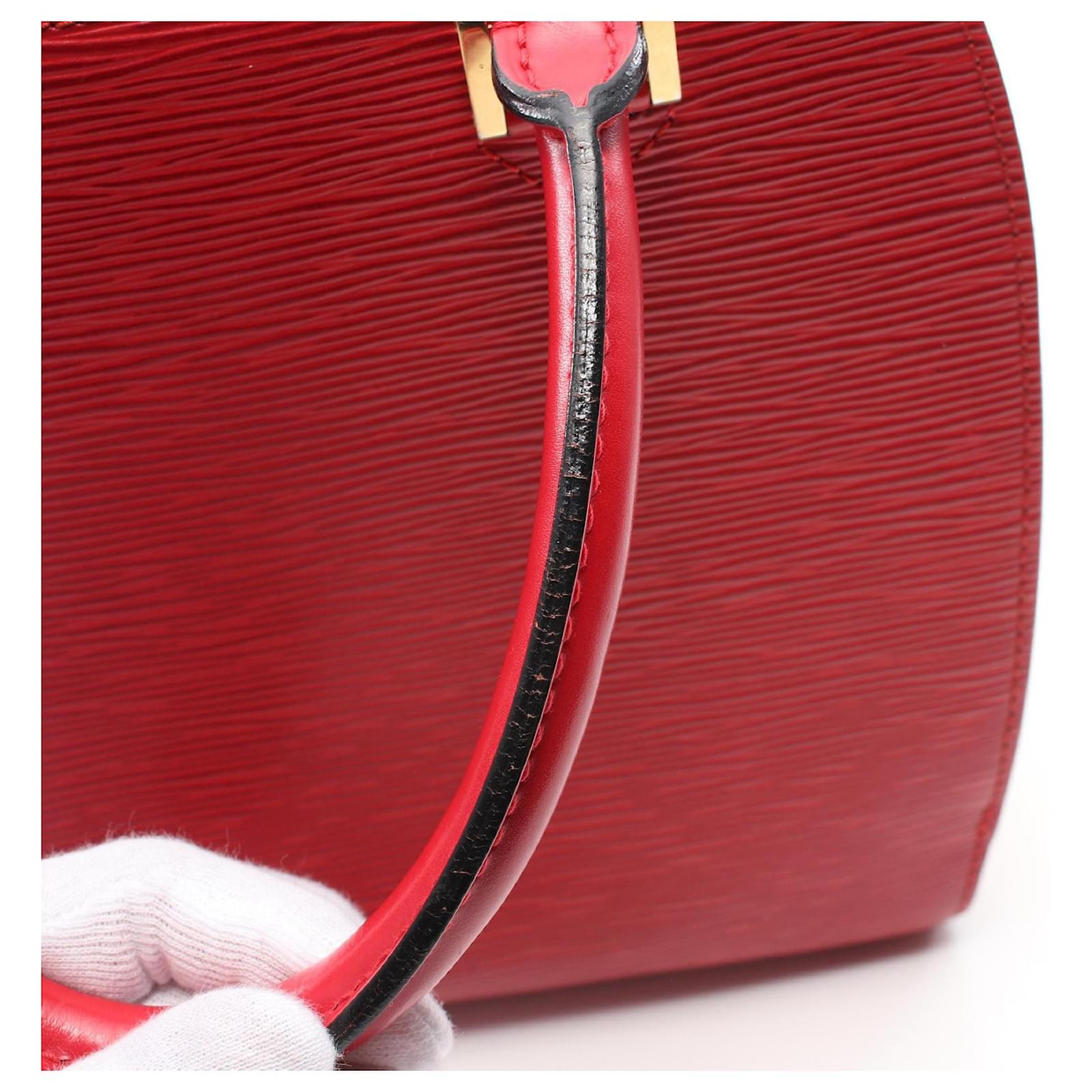 Brand Name: Louis Vuitton; Condition: Good; Category: Bag; SubCategory: Handbag; Product Name: Louis Vuitton Red Epi Leather Handbag M52057; Model Number: M52057; Style: Ladies; Height (cm): 23; Width (cm): 10; Length (cm): 24.5; Color: Red; Material: Leather; Origin: France; Measurments: width: 100 mm length: 245 mm height: 230 mm \n Product Id: 522956 \n