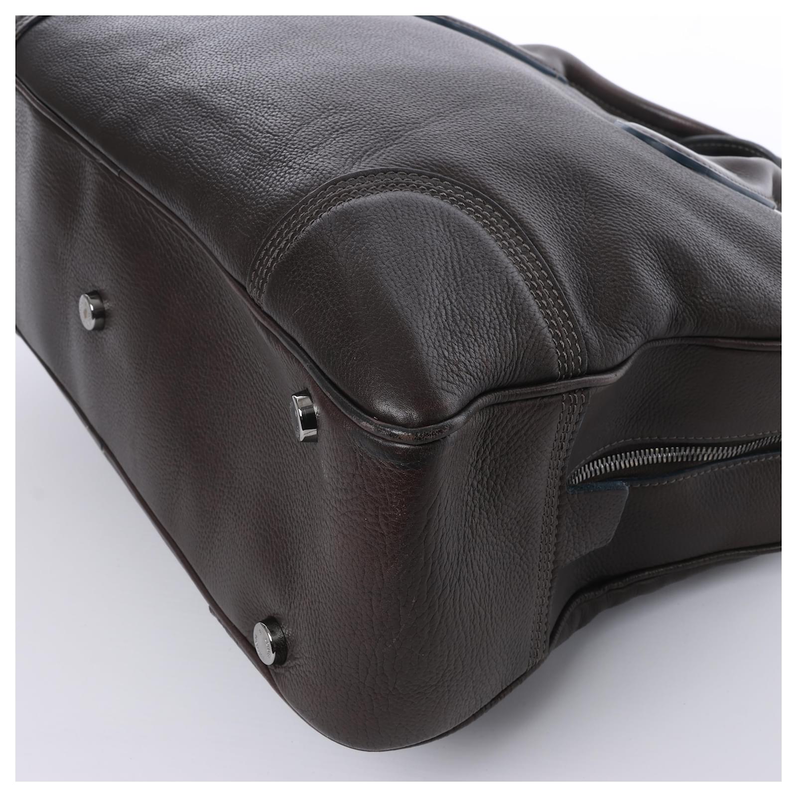 Crafted in supple dark brown leather, the Louis Vuitton Siwa Soft Briefcase\nM95778 blends understated luxury with function. Discreetly embossed and\nelegantly curved, it’s the refined choice for business or travel with timeless\nsophistication.\nBrand: Louis Vuitton \nModel: Siwa \nSize: -\nWidth: 40 cm \nHeight: 28 cm\nExterior Condition: Excellent\nInterior Condition: Excellent\nCondition Details: The exterior leather is clean and in excellent condition,\nwith creases and scratches. The handles are clean, firm and in very good\ncondition. The hardware is bright and crisp with hairline scratches. The\ninterior is in good condition except some stains. Date code: FO0068\nColour: Brown\nInterior Colour: Taupe\nHardware Colour: Silver\nMaterial: Leather\nComes With: –