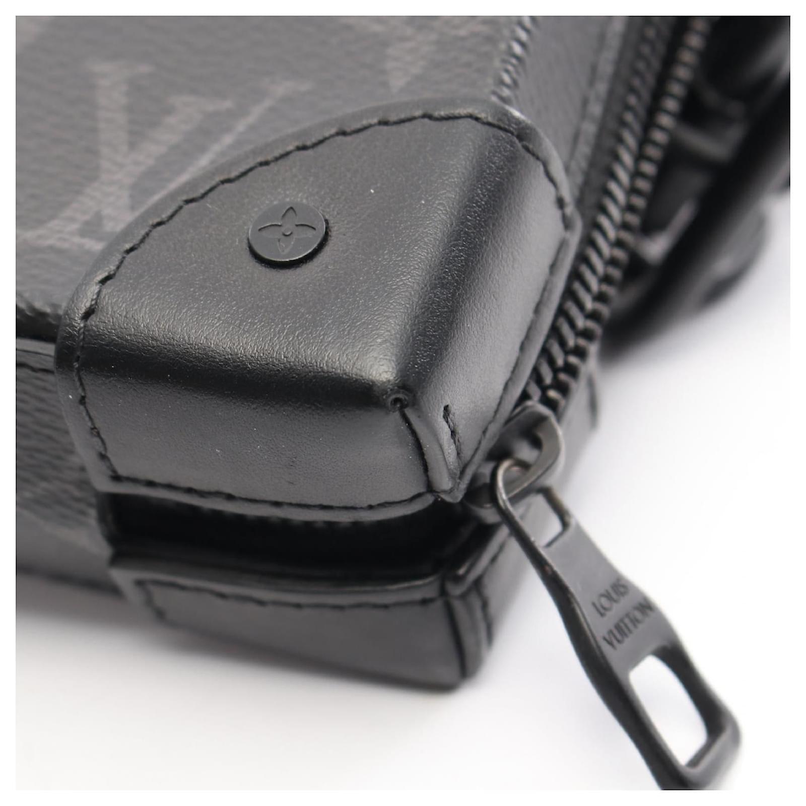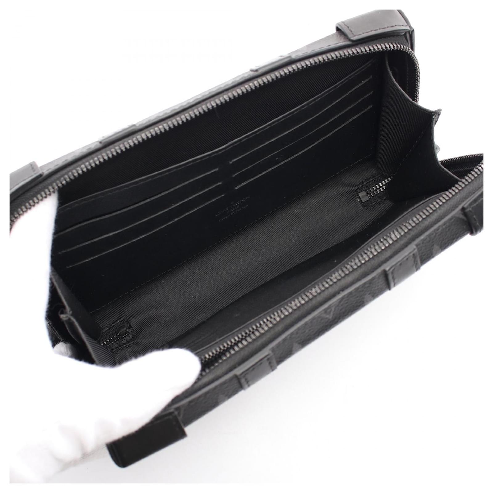 – General information -\nBrand : Louis VuittonItem name : Louis Vuitton Soft Trunk Wallet Shoulder Bag BlackModel number : M69838 – Design -Type : Crossbody BagMaterial : CanvasColor : BlackGender : Male- Size -Size : Shoulder strap : 95-116Depth : 5Height : 12.5Length : 22Item Material : PVC coated canvas × leatherItem Color : Black- Inventory -Serial Number : nullSKU : 120210003748500A0025597074- Included Items -Accessories : null*Before purchasing, please refer to the images of the accessories included with the item.- Condition -Condition : Very Good ConditionRank : Used A Used condition with some scratches and stains.Condition Notice : Before purchasing, please refer to the images for the exact condition of the item. Measurments: width: 50 mm length: 220 mm height: 125 mm strap length: 950-1160 mm \n Product Id: 474160 \n