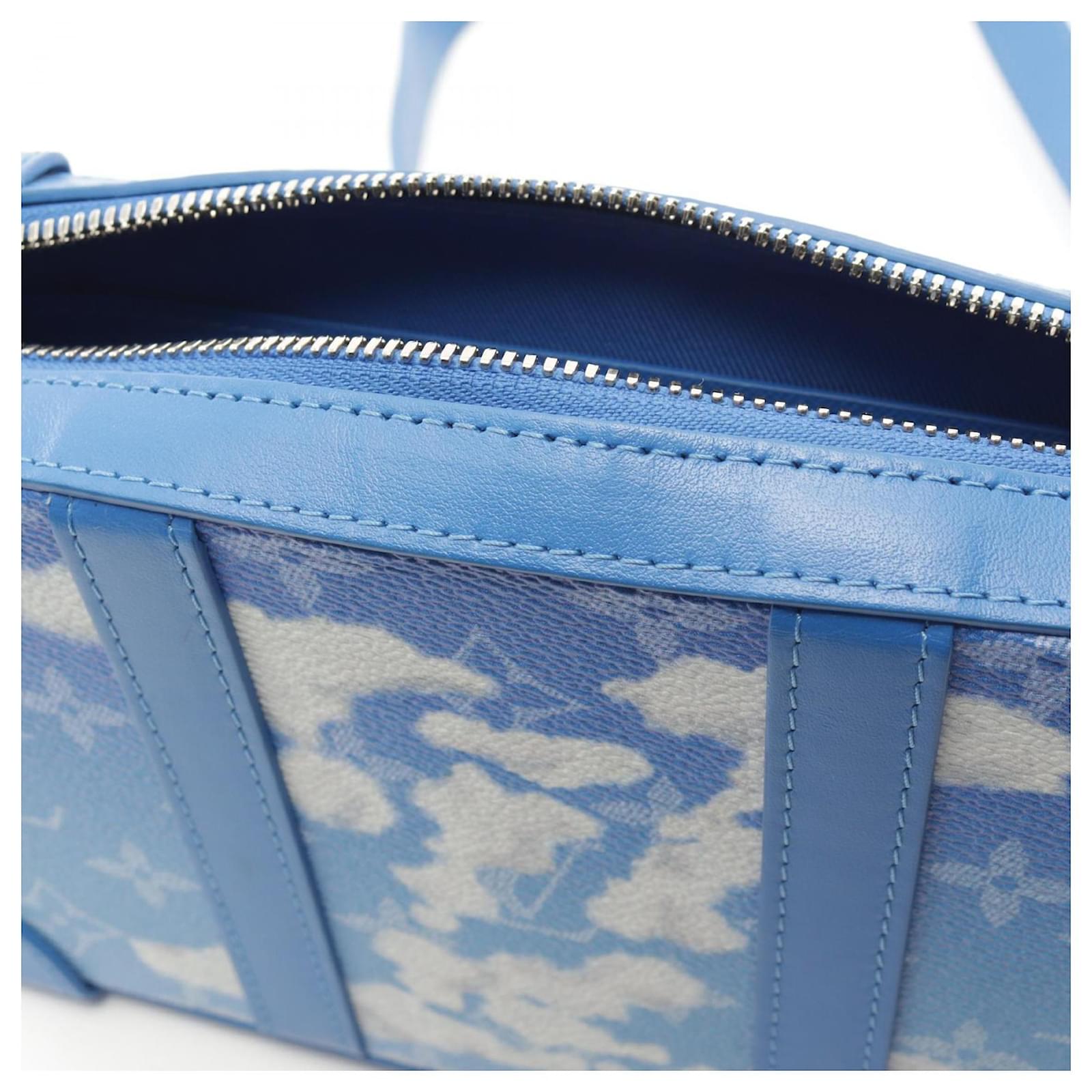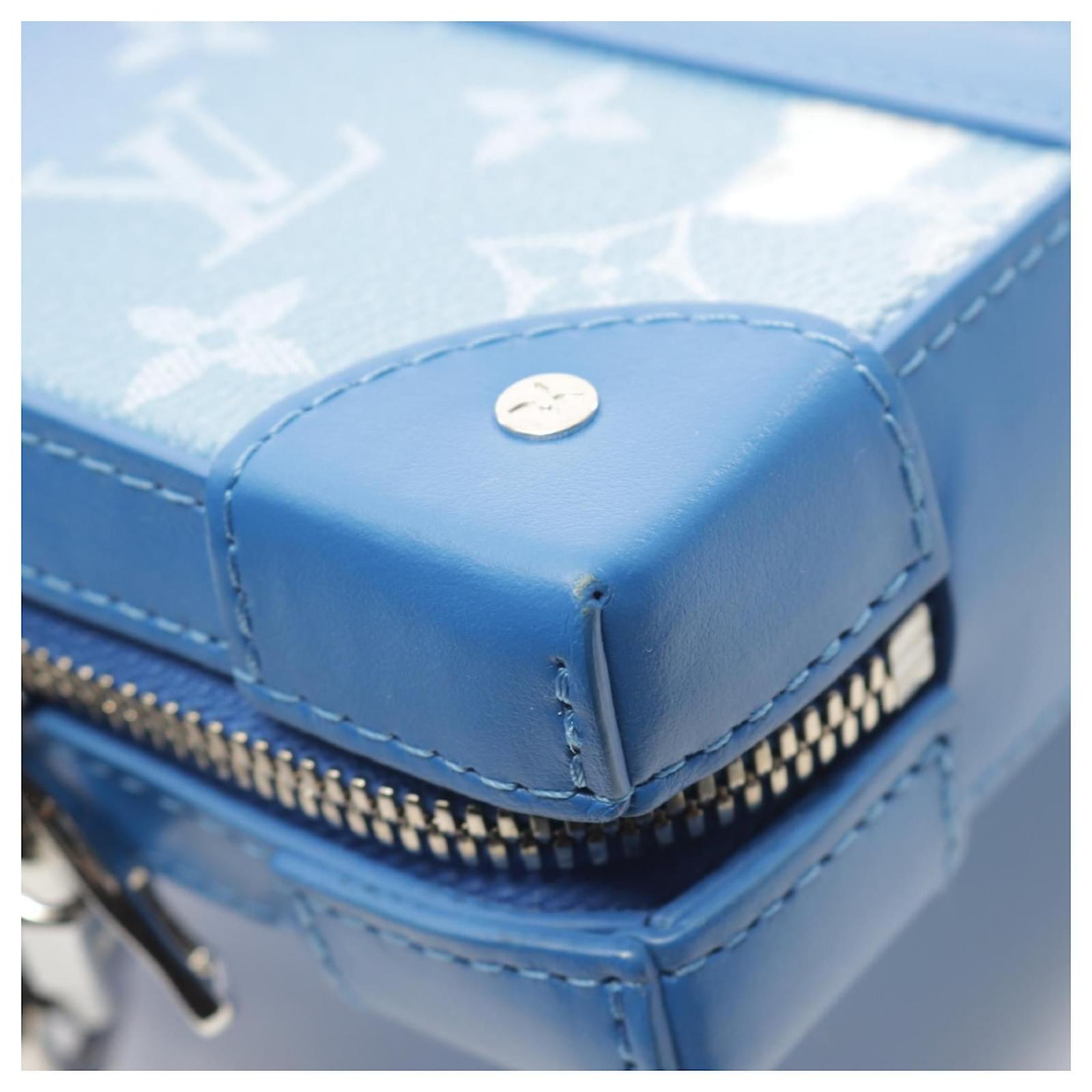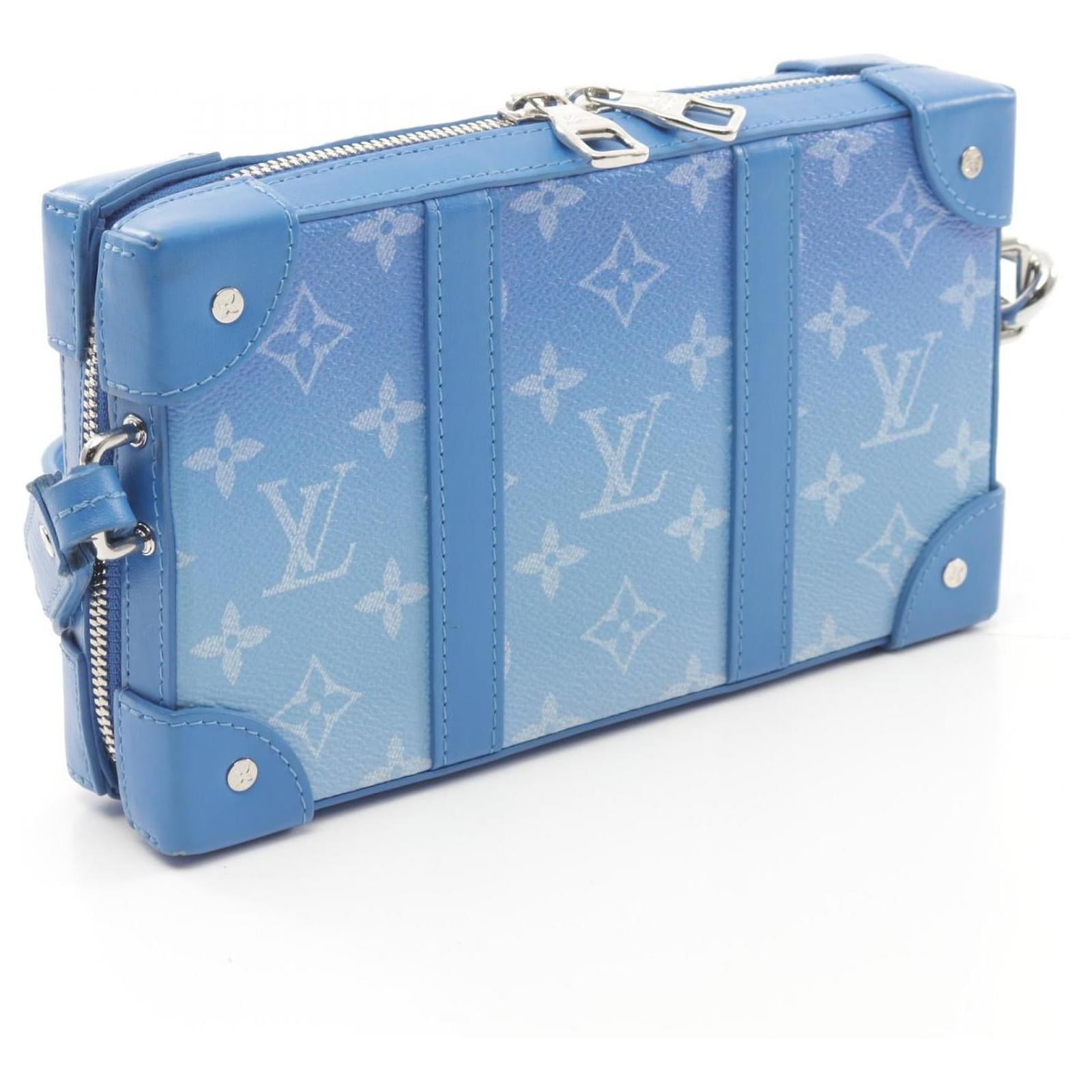 Brand Name: Louis Vuitton; Condition: Very Good; Category: Bag; SubCategory: Crossbody Bag; Product Name: Louis Vuitton Soft Trunk Wallet Shoulder Bag M45432; Model Number: M45432; Style: Gentleman; Accessories: Dust Bag; Height (cm): 12.5; Width (cm): 5; Length (cm): 22; Color: Blue; Material: PVC coated canvas × leather; Origin: France; Measurments: width: 50 mm length: 220 mm height: 125 mm \n Product Id: 522432 \n