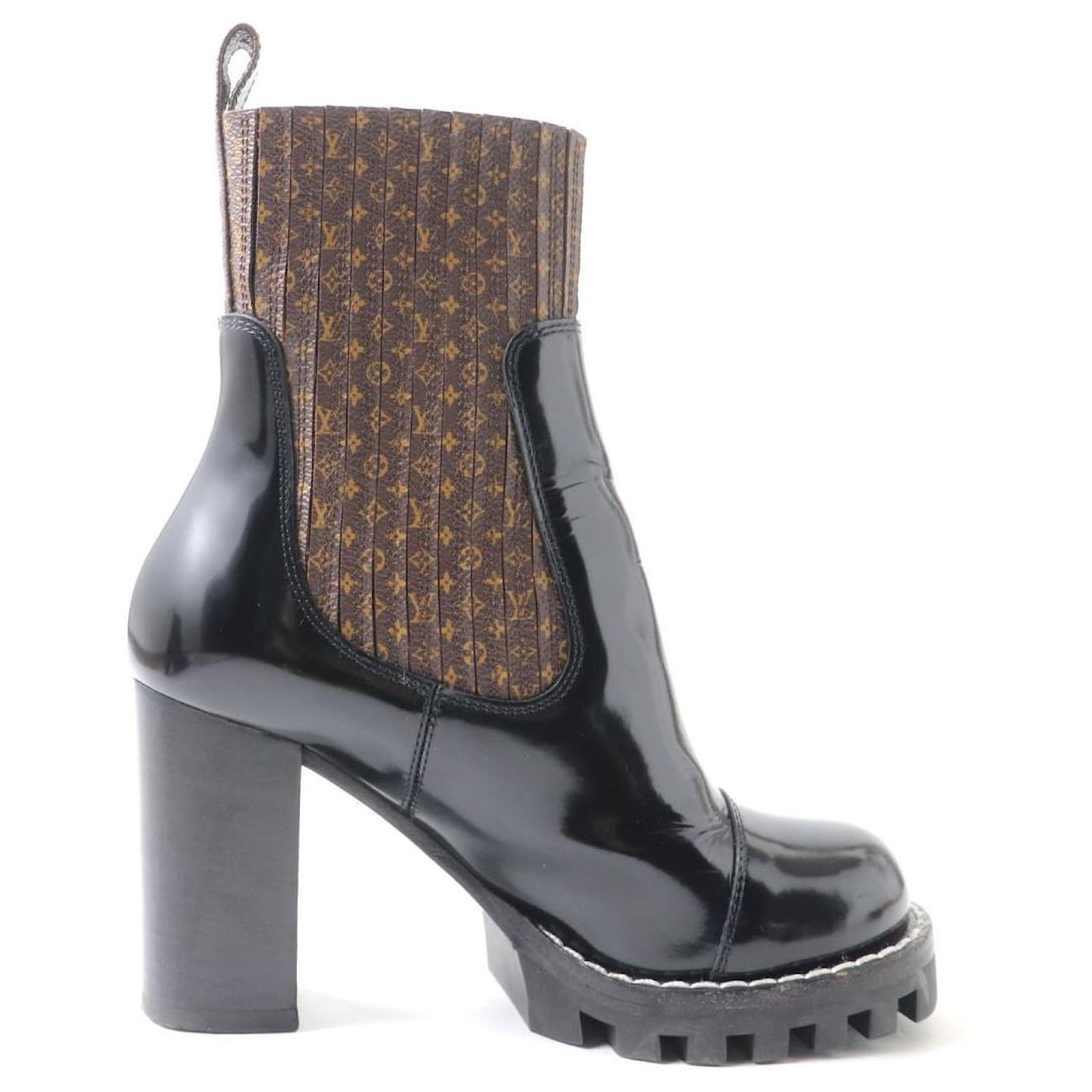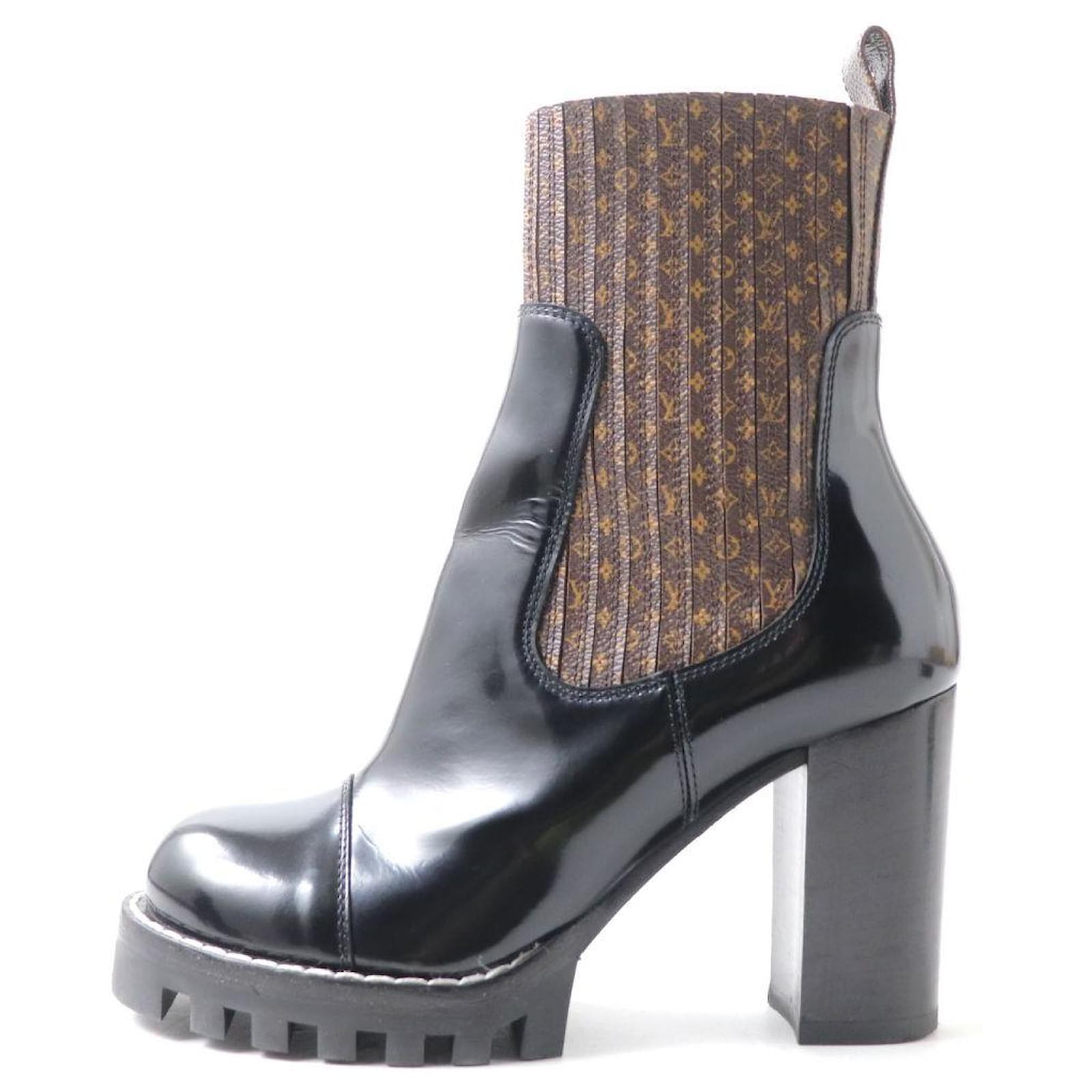– General information – Brand : Louis Vuitton Item name : Louis Vuitton Star Trail Nano Monogram Leather Ankle Boots Model number : MA0179 – Design – Type : Shoes Material : Leather Color : Brown Gender : Female – Size – Size : Shaft height : 23 Opening circumference : 23 Instep width : 9 Heel : 9 Shoe size(JP) : 35 1/2 Color : Brown x Black Material : Leather – Inventory – Serial Number : null SKU : 120250001174800A0025466614 – Included Items – Accessories : null *Before purchasing, please refer to the images of the accessories included with the item. – Condition – Condition : Great Condition Rank : Used A Good used condition with slight scratches and stains. Condition Notice : Before purchasing, please refer to the images for the exact condition of the item.