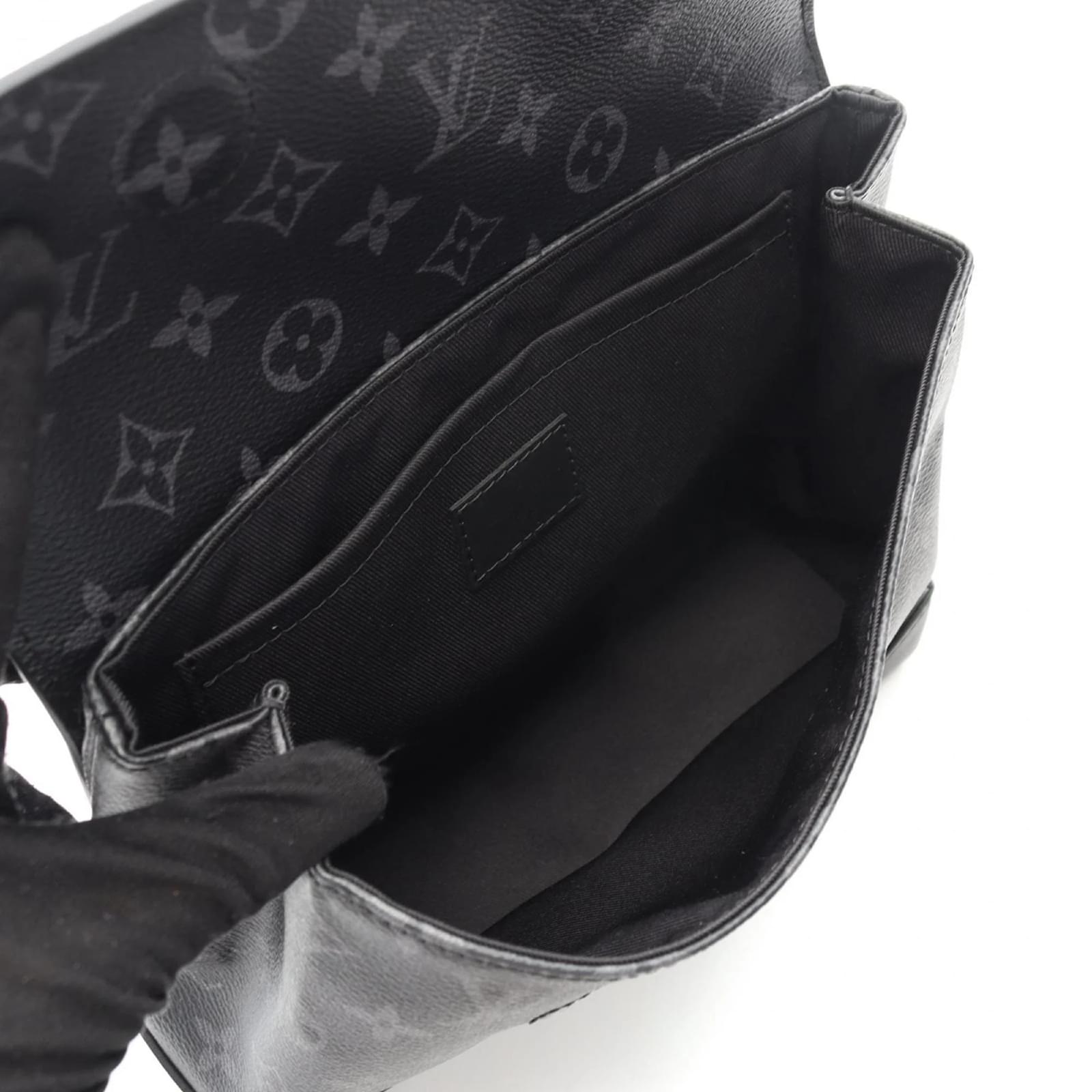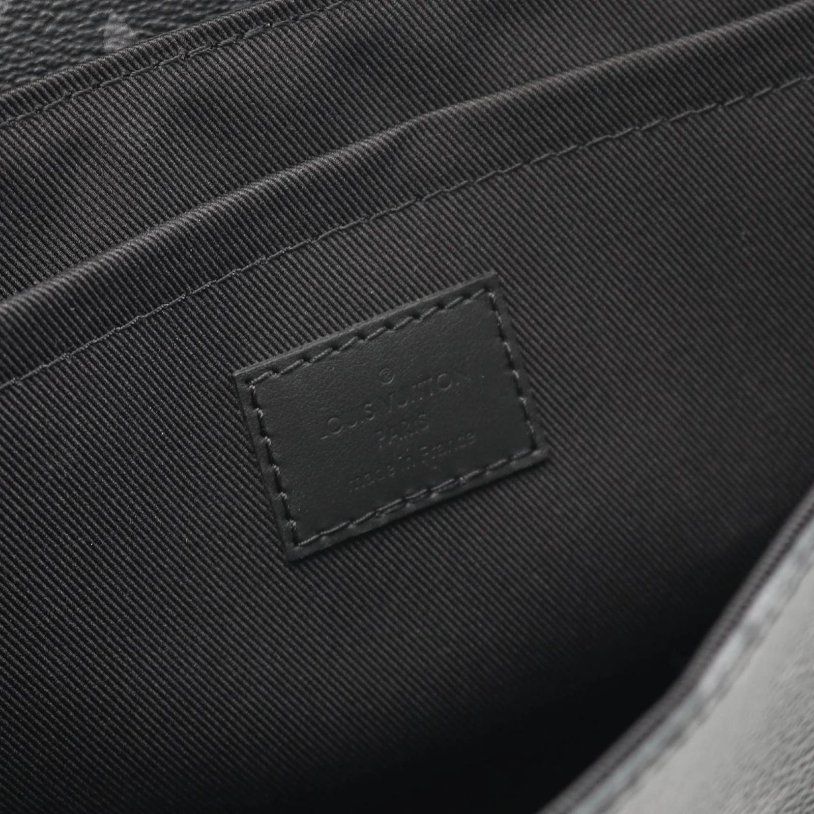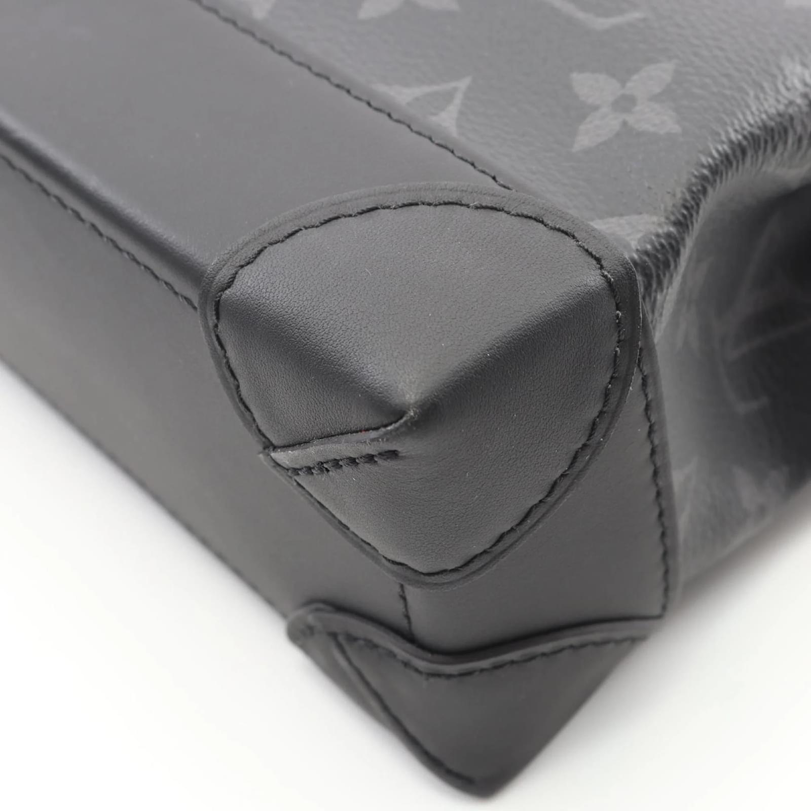 The Louis Vuitton Steamer PM Monogram Eclipse Handbag is a stylish accessory designed for men. Crafted from Monogram Eclipse coated canvas, this handbag features a sleek black color that complements various outfits. \n\nMeasuring 18cm in height, 24.5cm in width, and 7.5cm in depth, it offers a practical size for everyday use. The handbag comes with a shoulder strap for added convenience. \n\nThis item is in very good used condition, classified as Rank A, with only slight traces of use, including minor scratches and dirt. Potential buyers are encouraged to review the images for a detailed view of the handbag’s condition and included accessories.