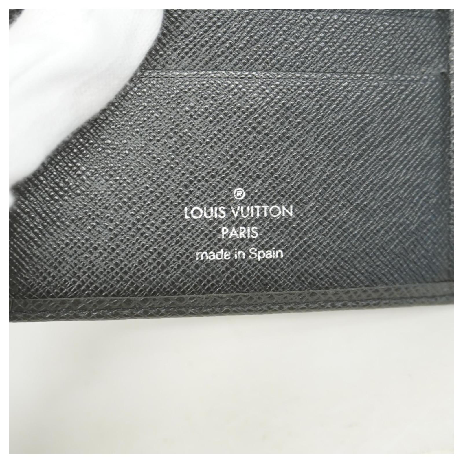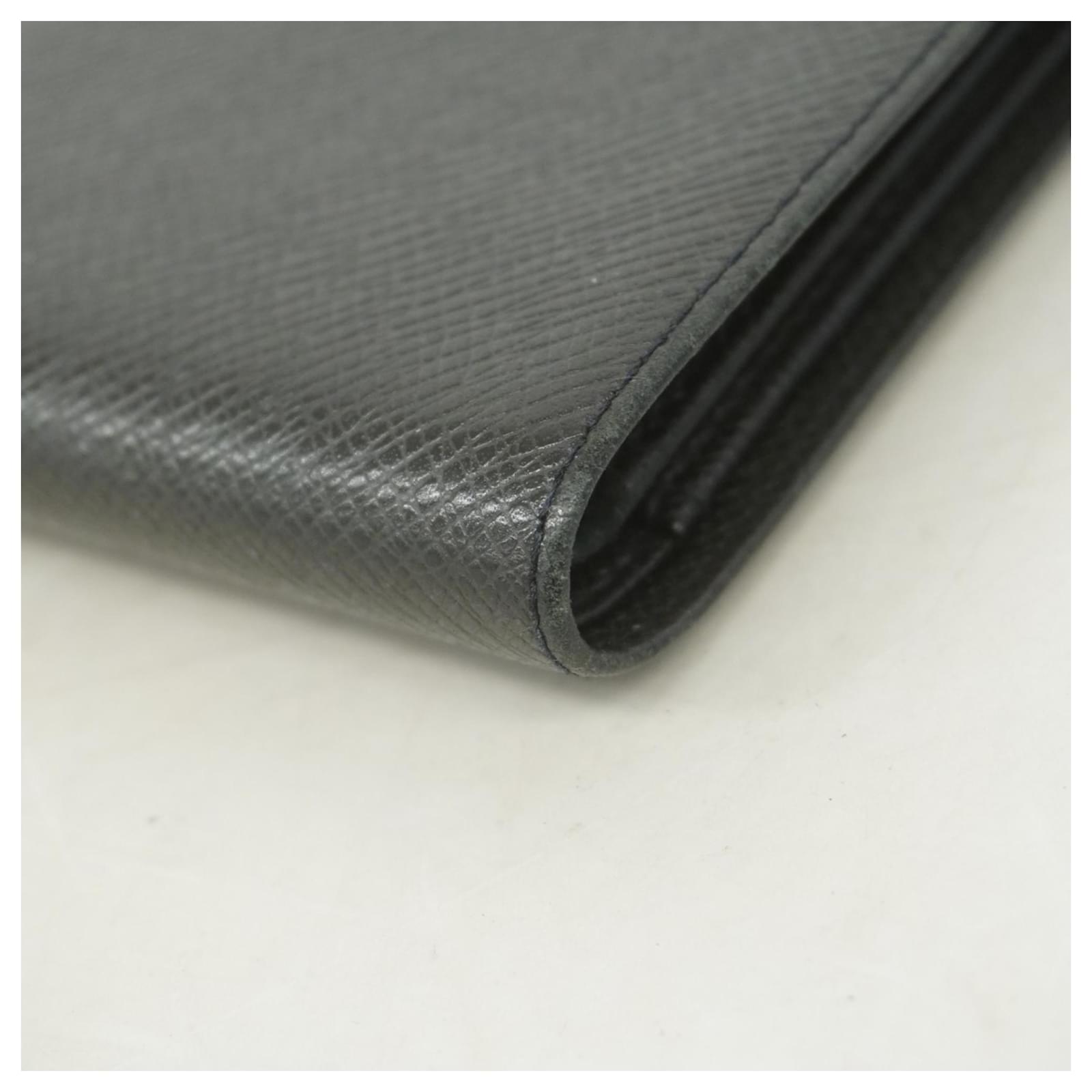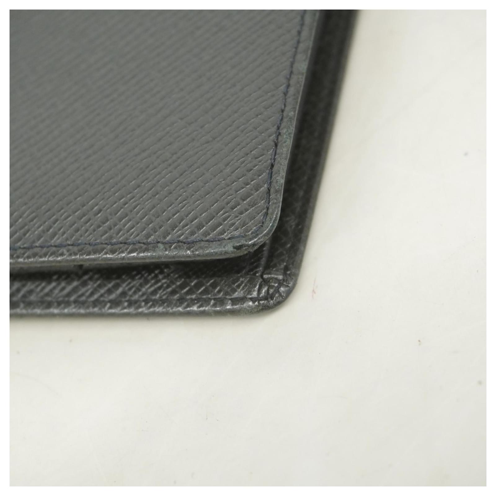The Louis Vuitton Taiga Portobier 3 Vole M30422 wallet is a bi-fold design in an Ardoise color, tailored for men. This wallet is pre-owned and classified as being in good condition, with slight traces of use, including minor scratches and dirt. It comes with its original box, and potential buyers are encouraged to review the images for a detailed view of the item’s condition and included accessories.