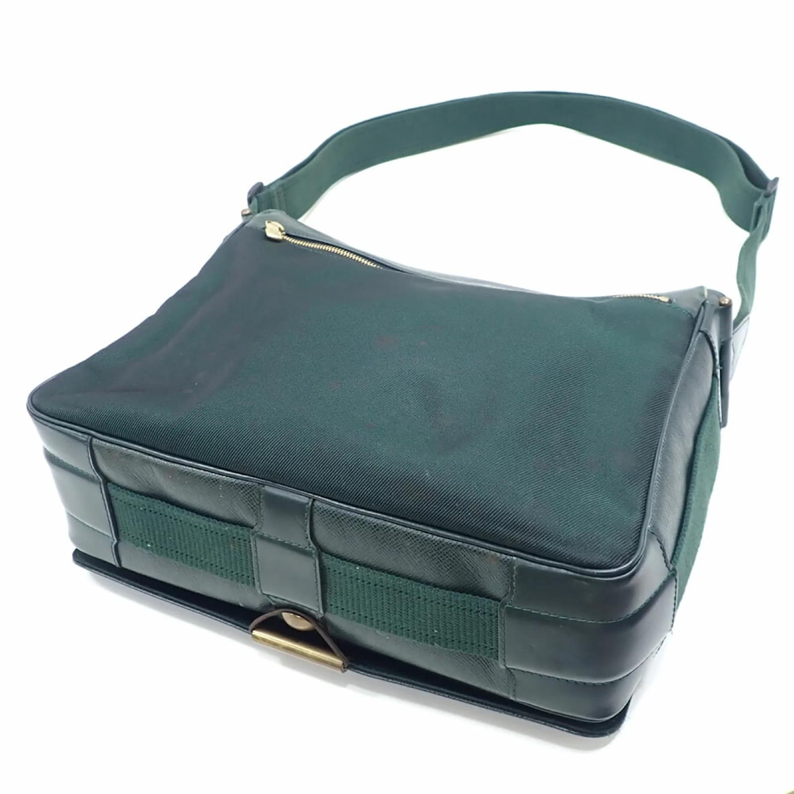 This Louis Vuitton shoulder bag, model Taiga Victor, is crafted from durable Taiga leather in an Episea color. The bag measures 29.5cm in height, 31.4cm in width, and 10.4cm in depth, making it a practical choice for daily use. \n\nThe item is classified as used and is in good condition, with slight traces of use, including minor scratches and dirt. It is important to review the provided images for a clear understanding of the bag’s condition before purchasing. No additional accessories are included with this item.